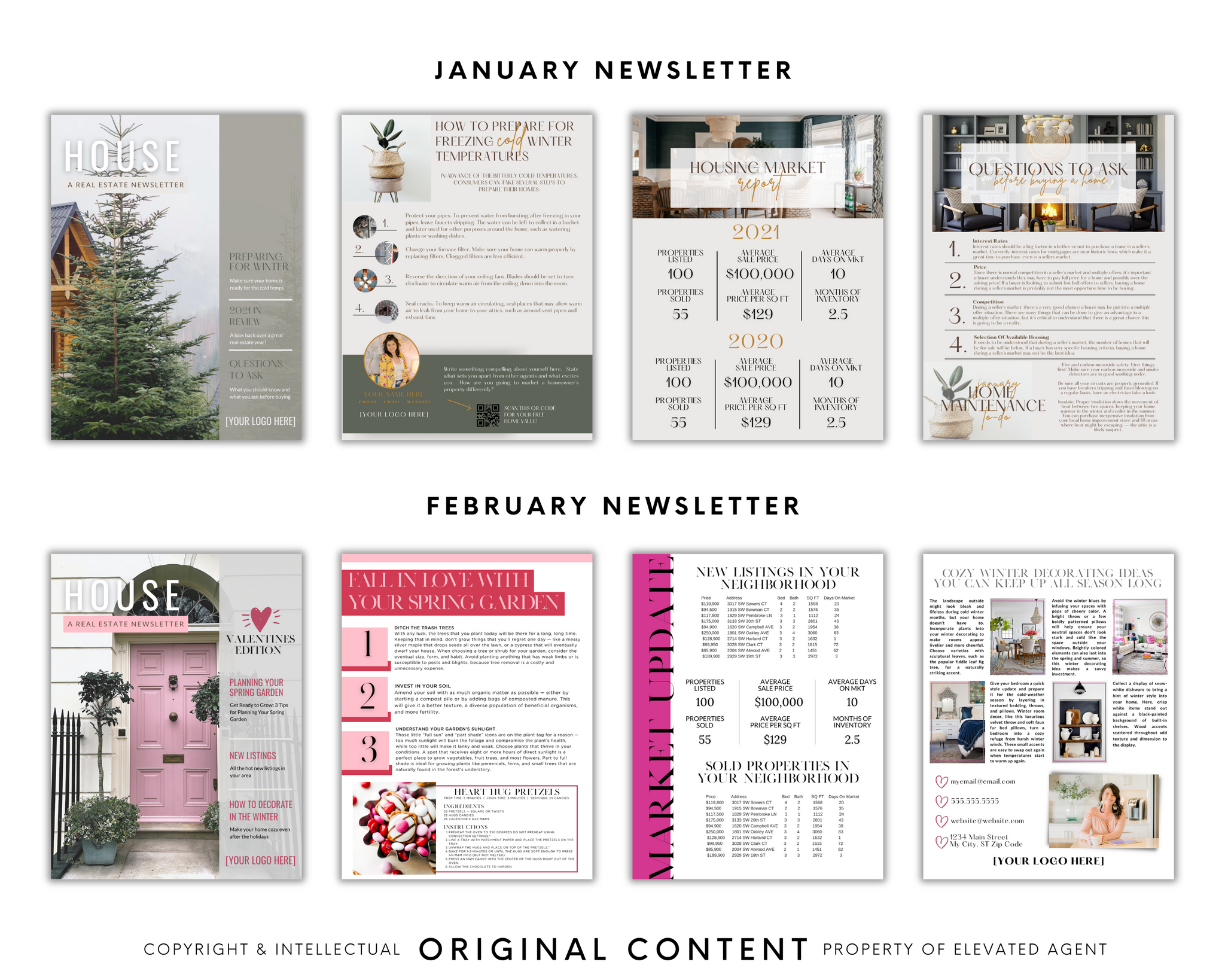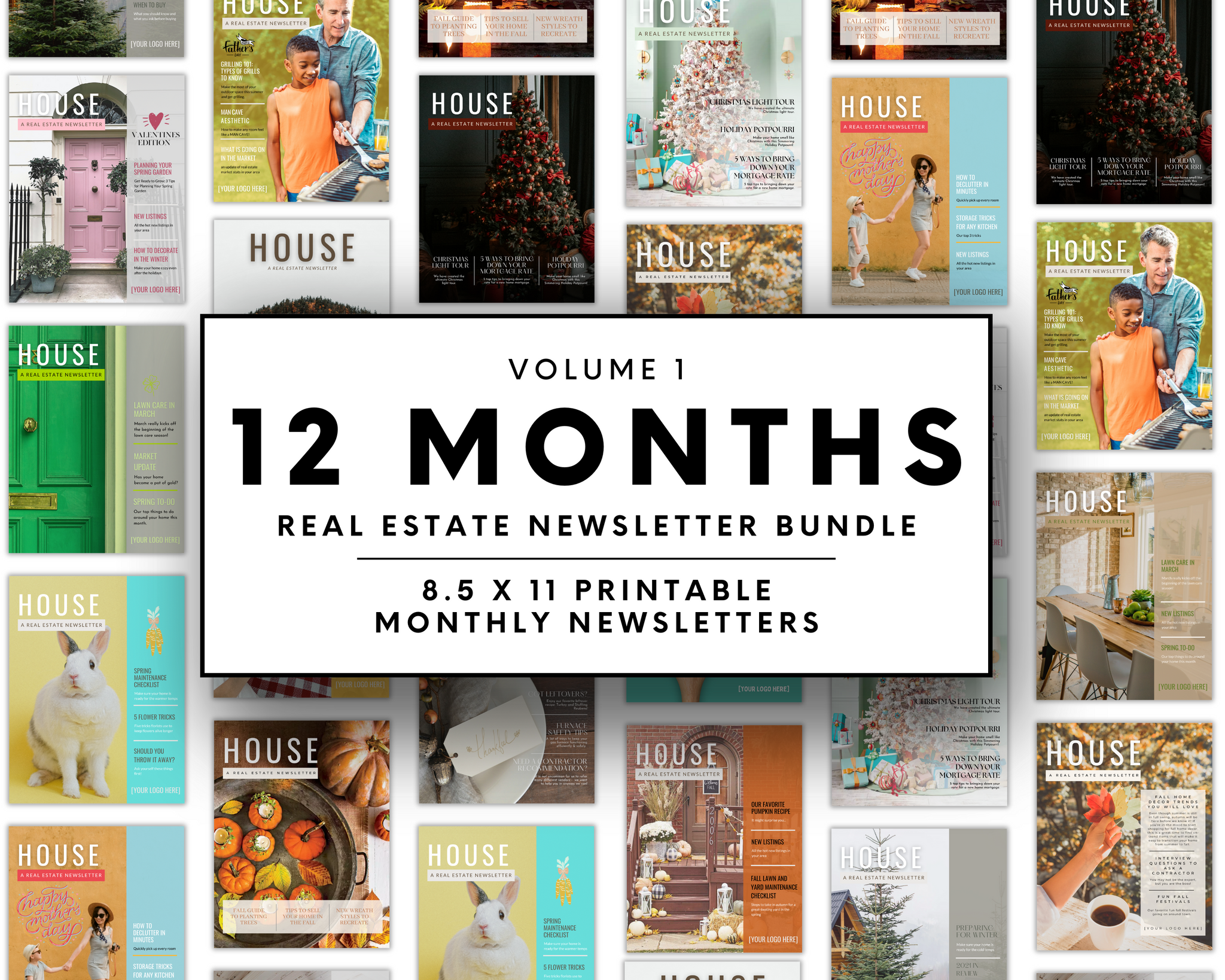 12 Month Newsletter Bundle - 8.5 x 11 Real Estate Template