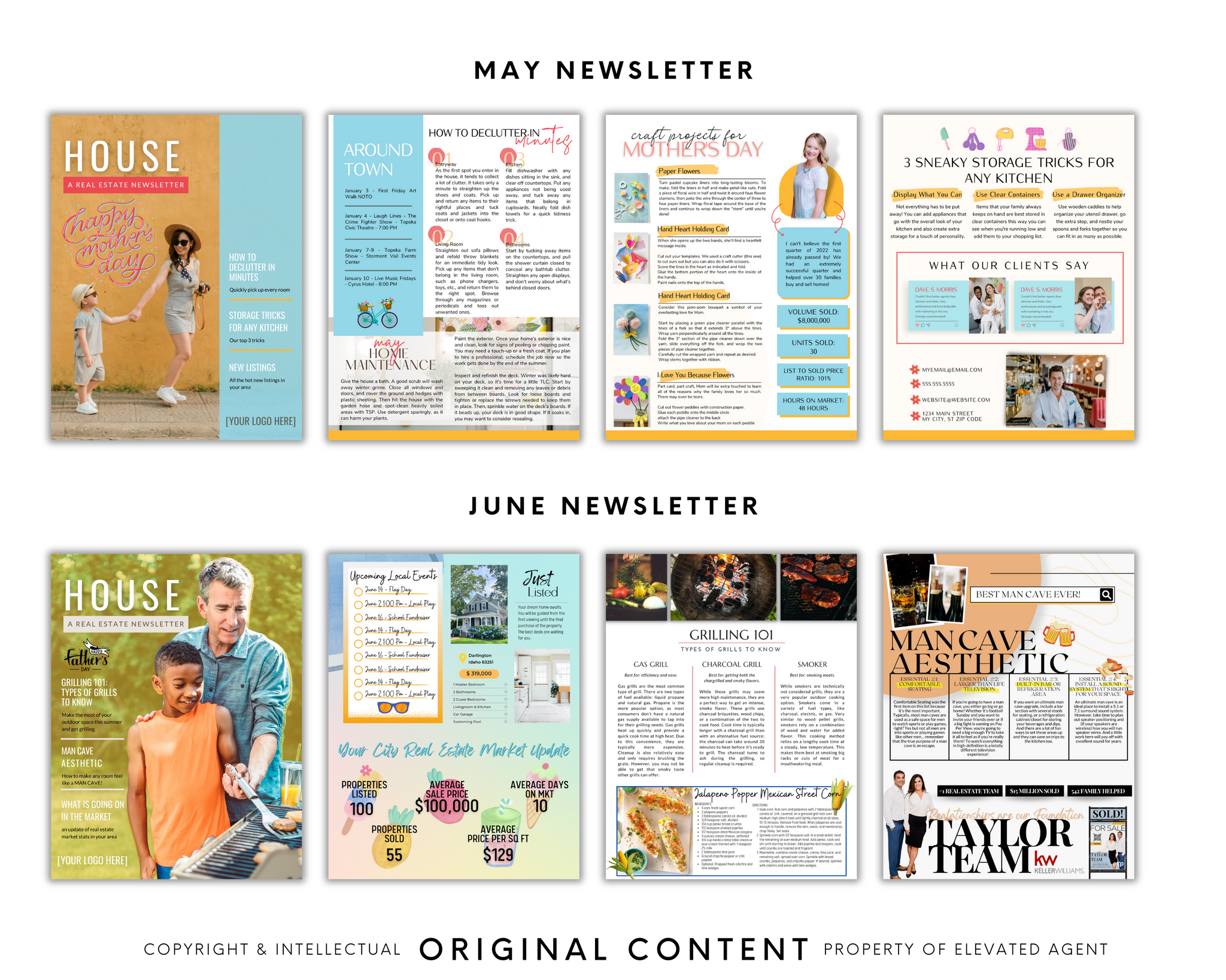 Start making the most of your Real Estate Newsletter with this Monthly Bundle. With a year's worth of content at your fingertips, maintaining regular contact with your leads has never been easier or more effective. Elevate your real estate marketing strategy today and watch your business flourish!