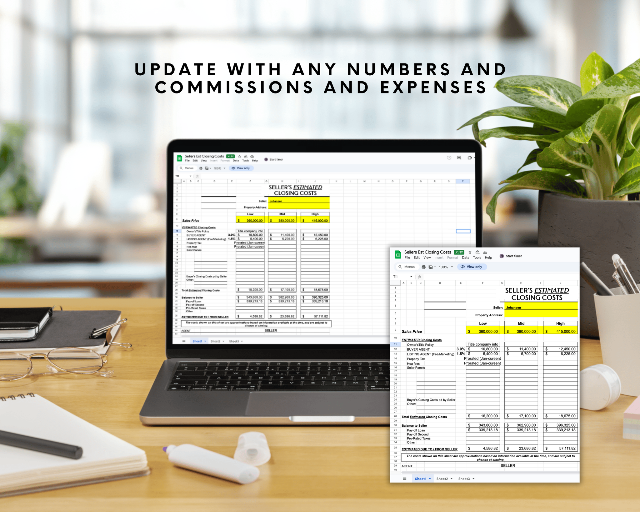 Sellers Estimated Closing Cost - Realtor Cost Spreadsheet