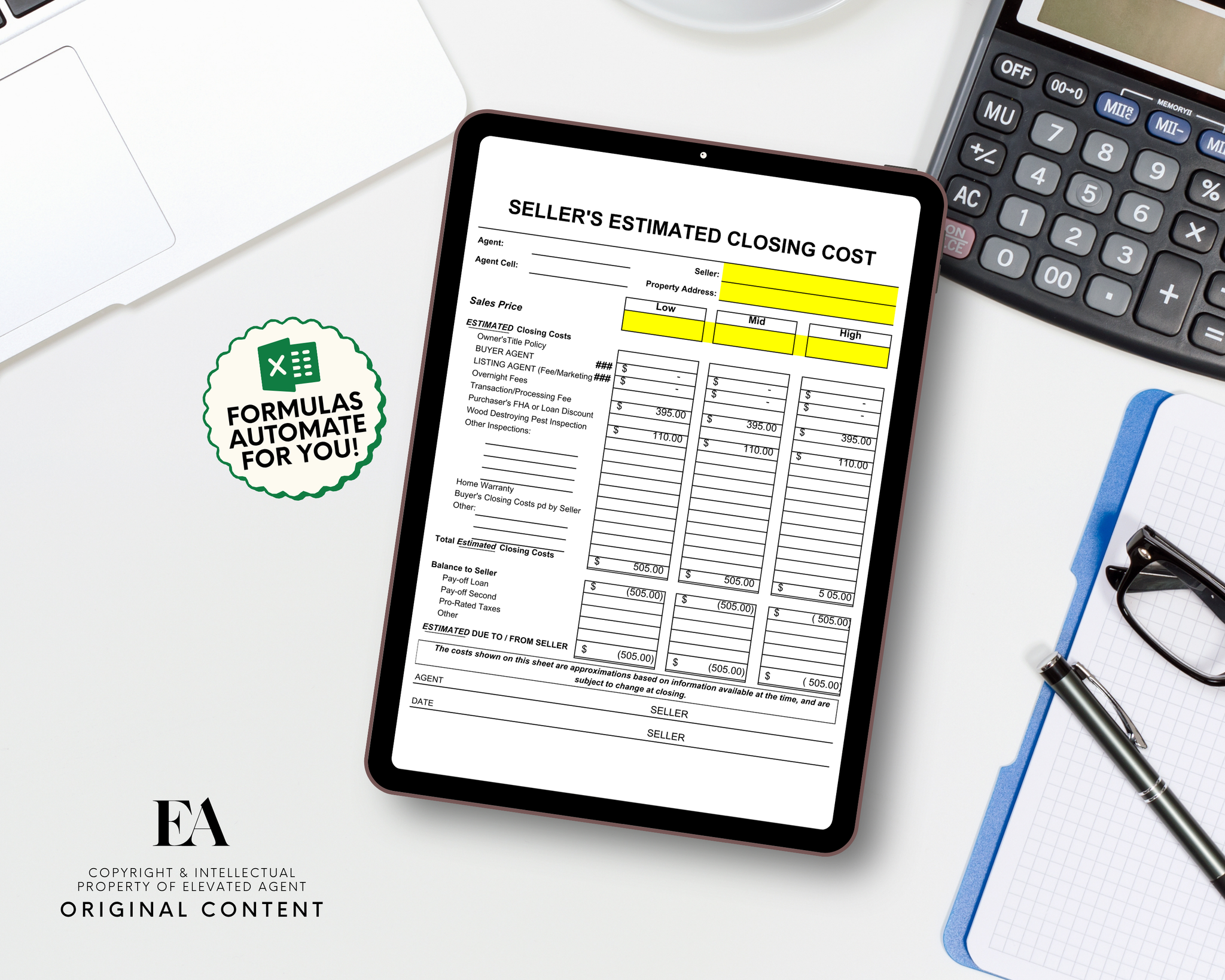 SELLER ESTIMATED CLOSING COST EXCEL SPREADSHEET