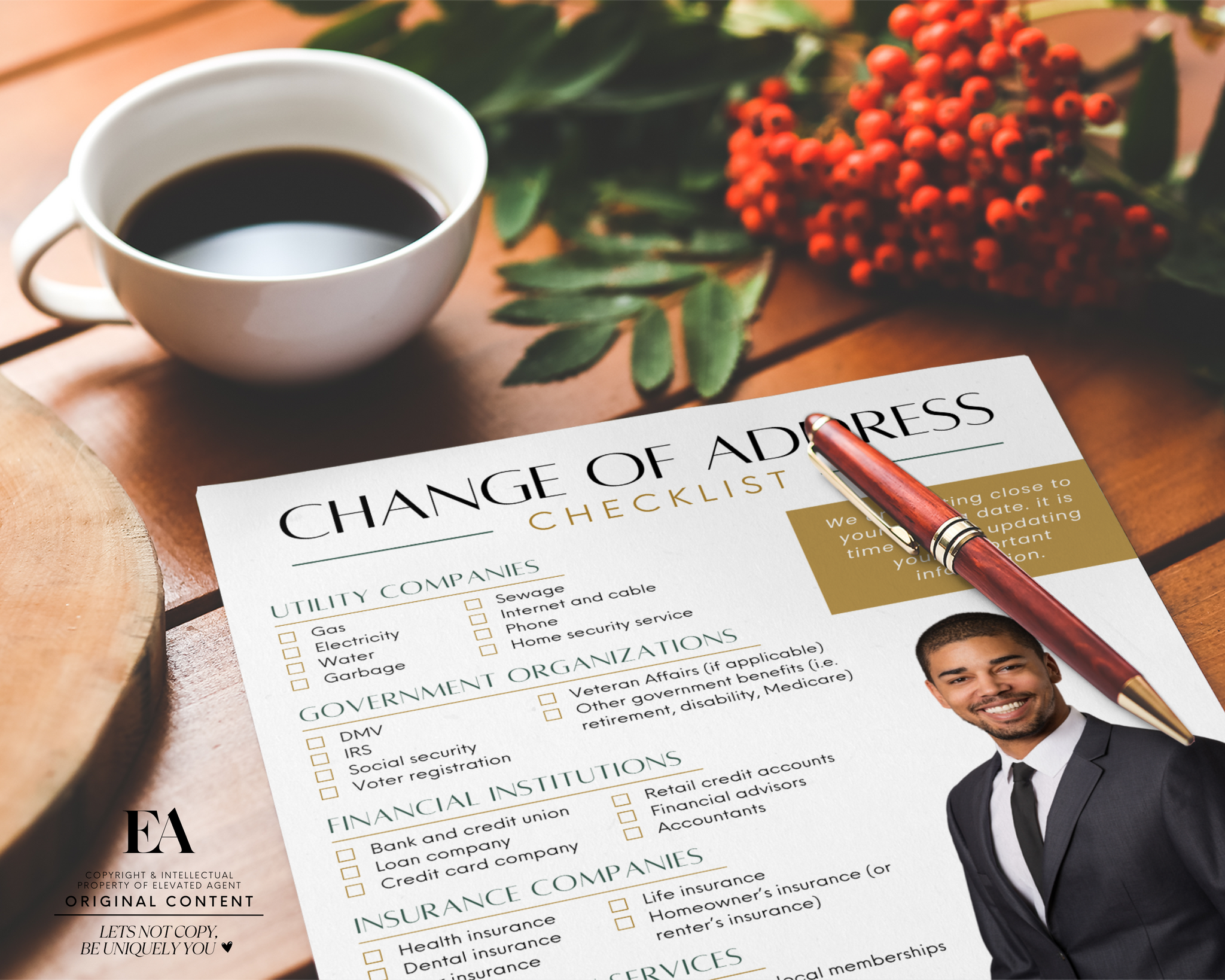 This checklist is more than a template; it’s a thoughtful touch that adds value to client interactions. By helping your clients easily navigate their address updates, you position yourself as a trusted and detail-oriented real estate professional.