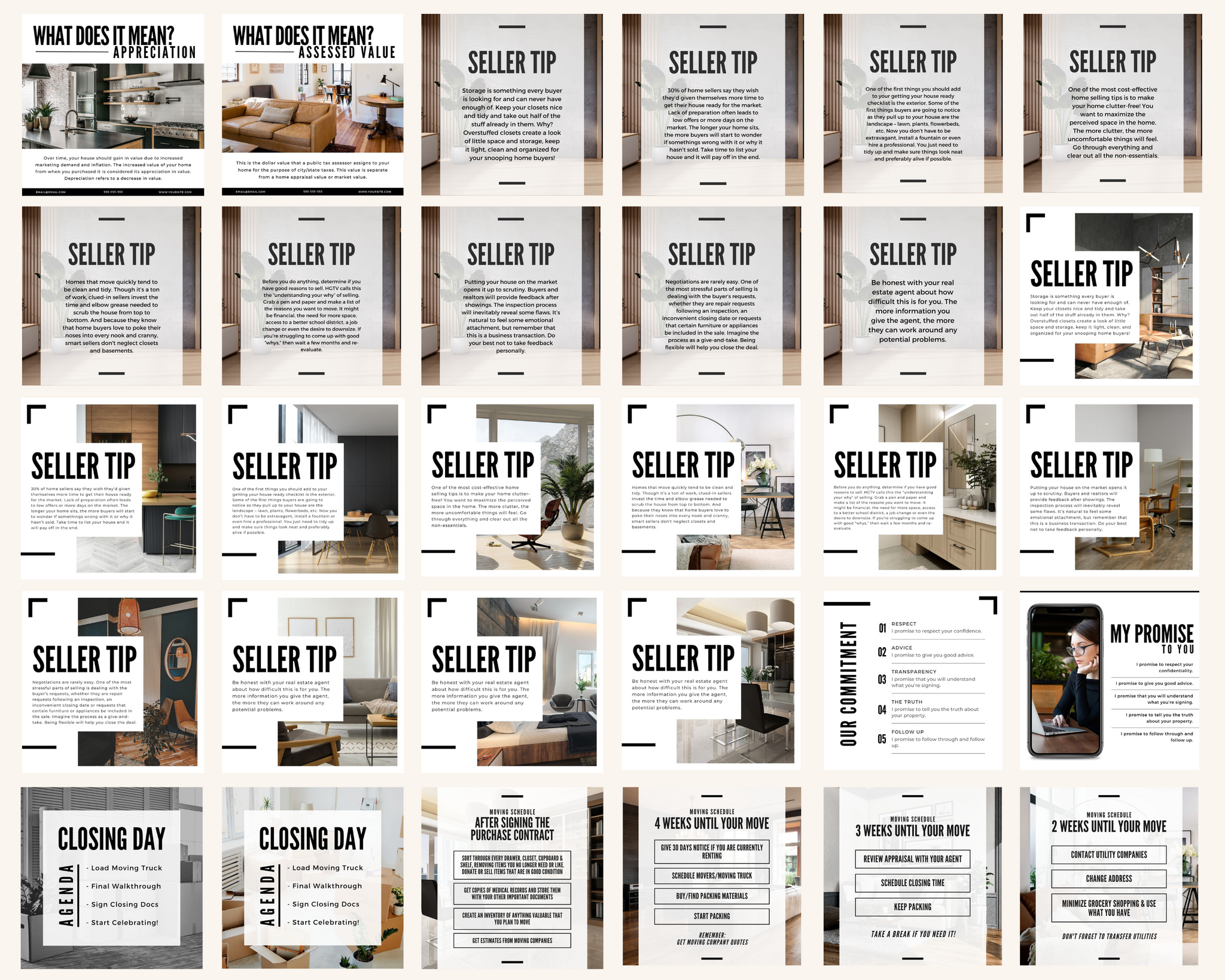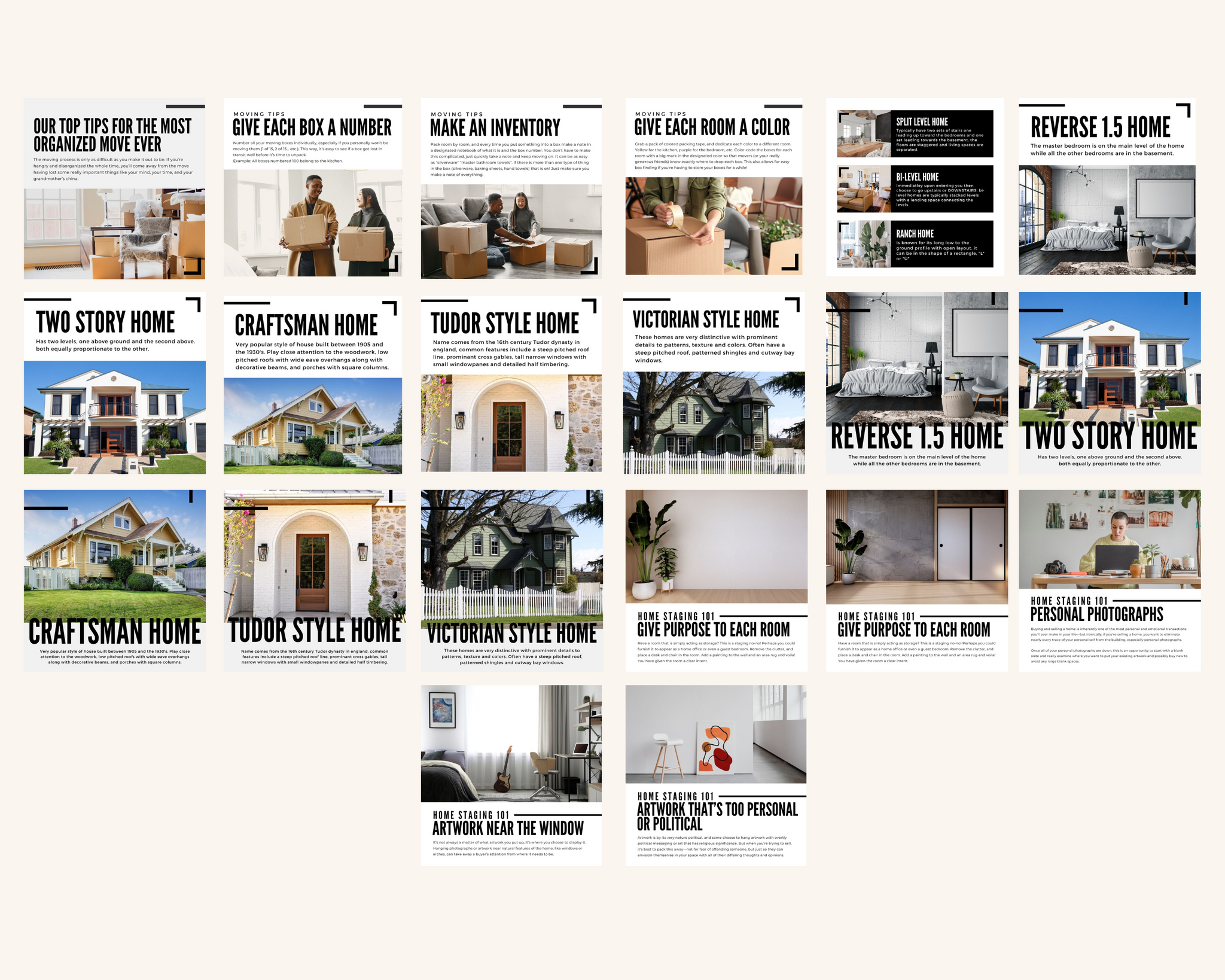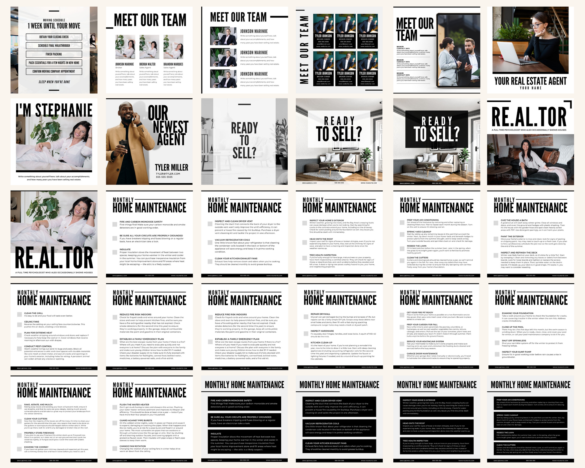 As professional real estate agents, we understand that consistency in your real estate marketing is crucial to your business. These easy-to-edit real estate social media templates all coordinate to make sharing to your social media channels a breeze.