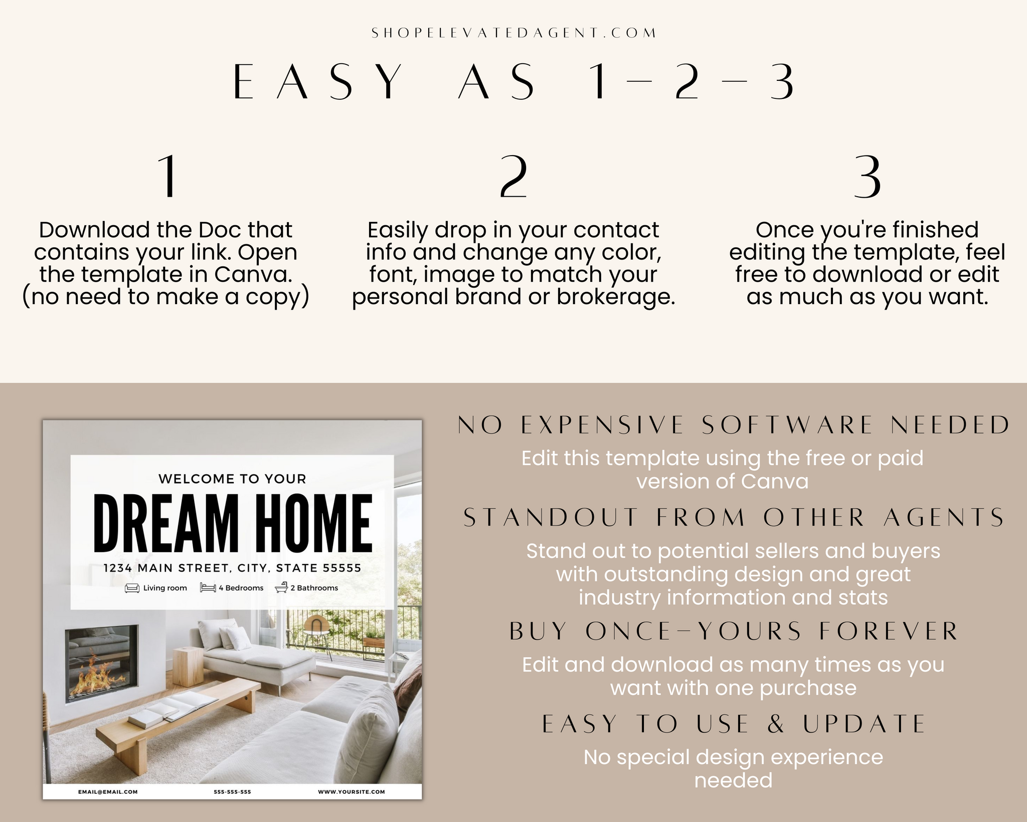 Be sure to check out the coordinating Minimal Brand Templates for more coordinating real estate templates.
