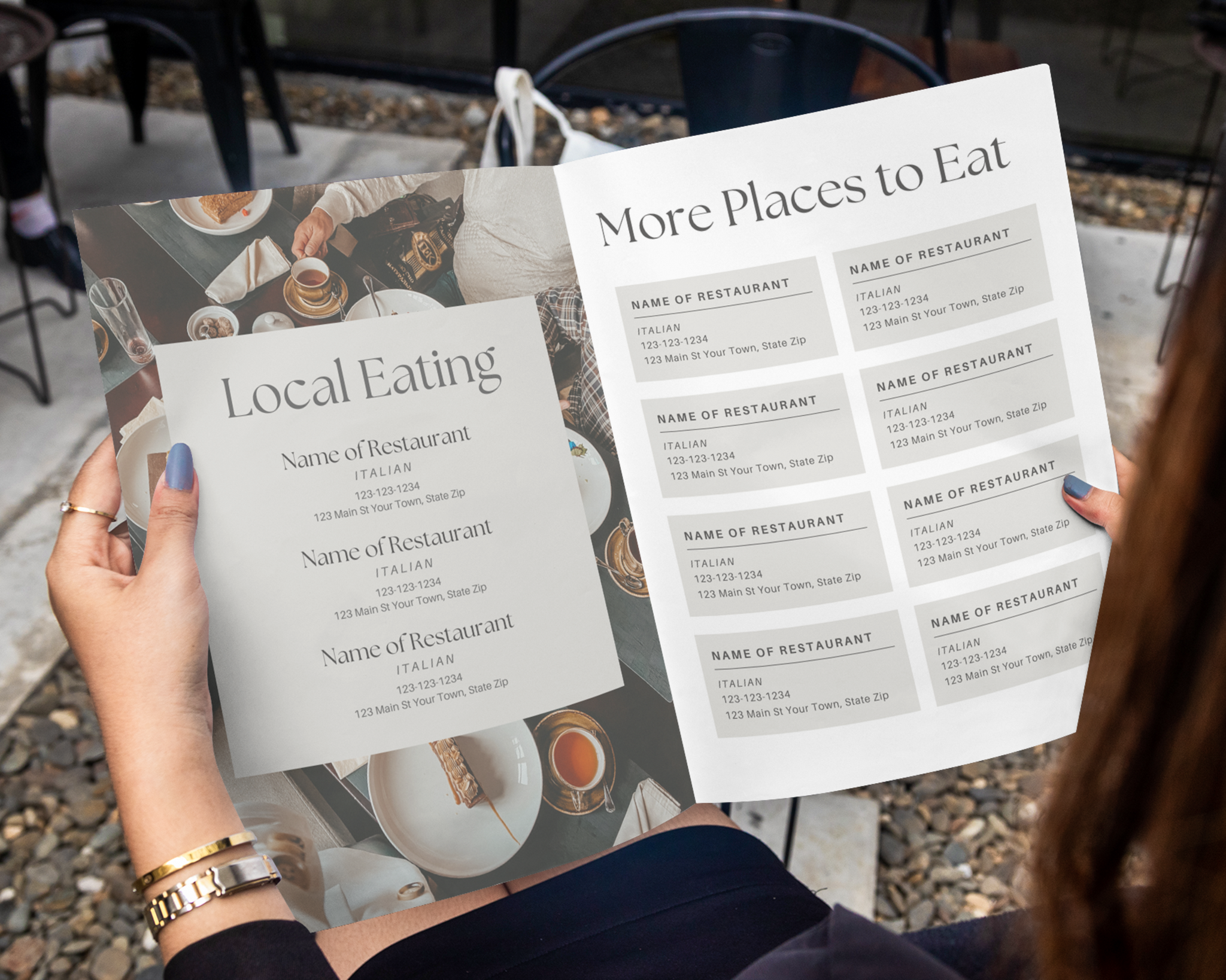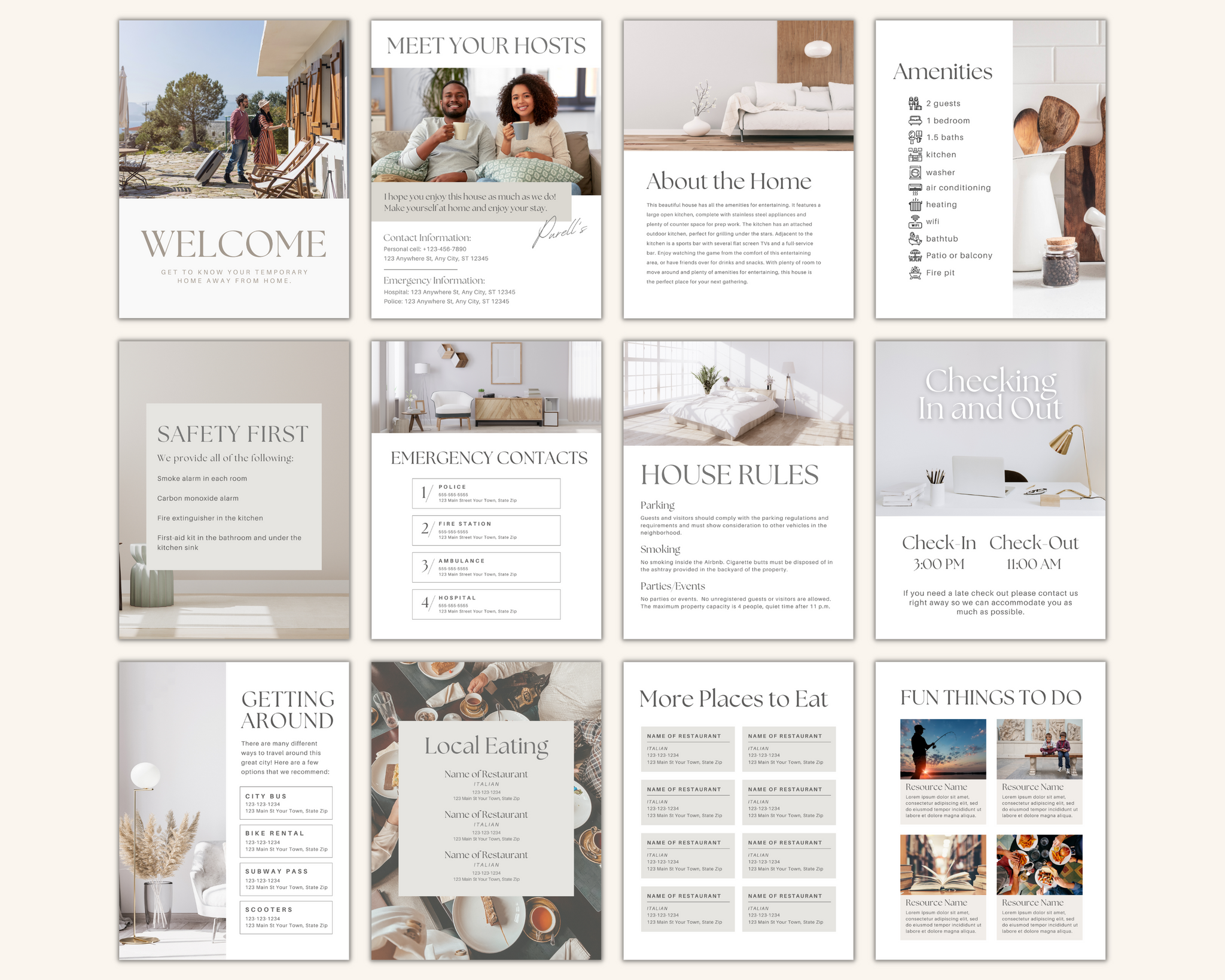 This Real Estate Template – Peaceful Airbnb Welcome Book can be printed at a local printer to leave at the property for the guests to enjoy. You can also email the digital file to your guests or have it as part of your listing.