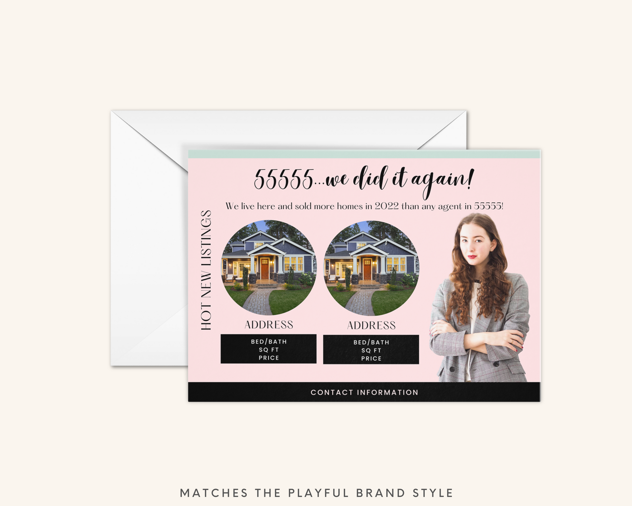 Elevate your Real Estate Marketing with this Market Update Postcard - Playful Brand today.