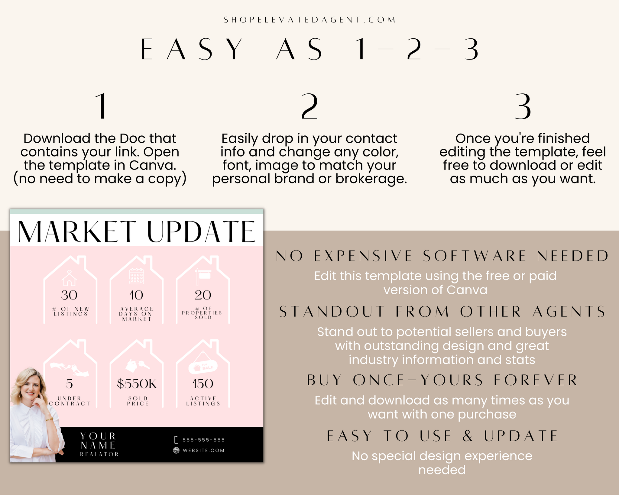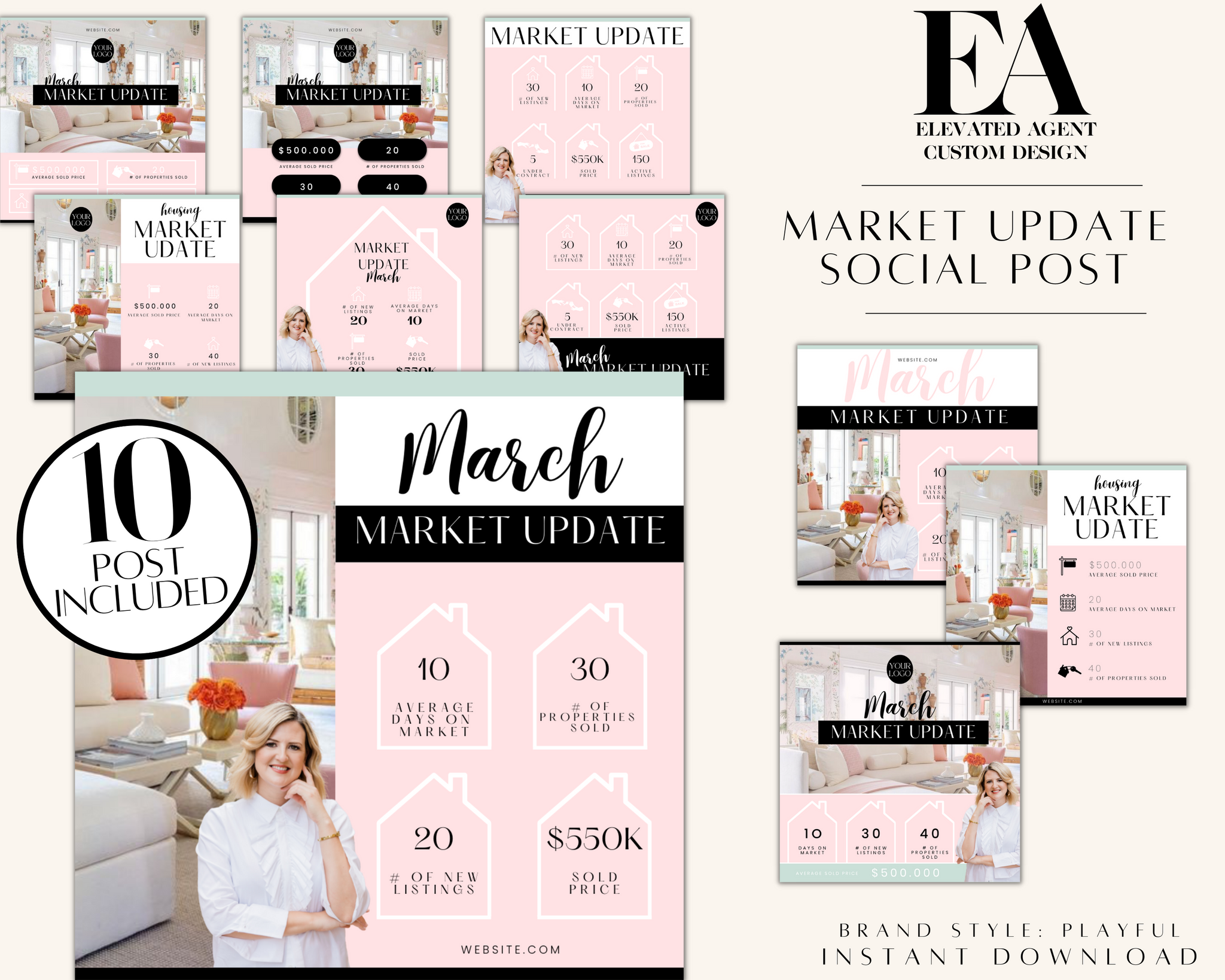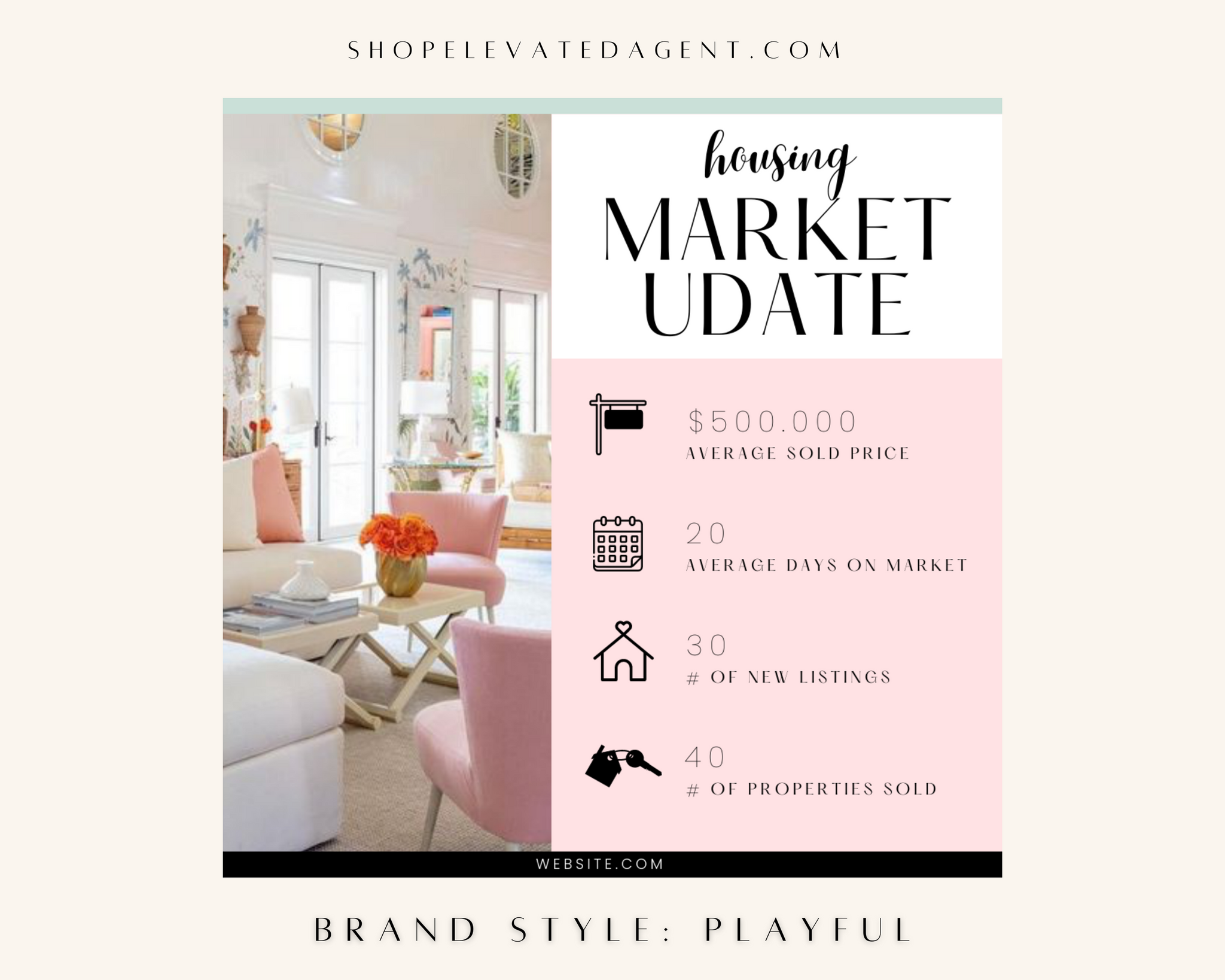 Social media posts that are made for real estate agents to update your audience with the current housing market statistics.