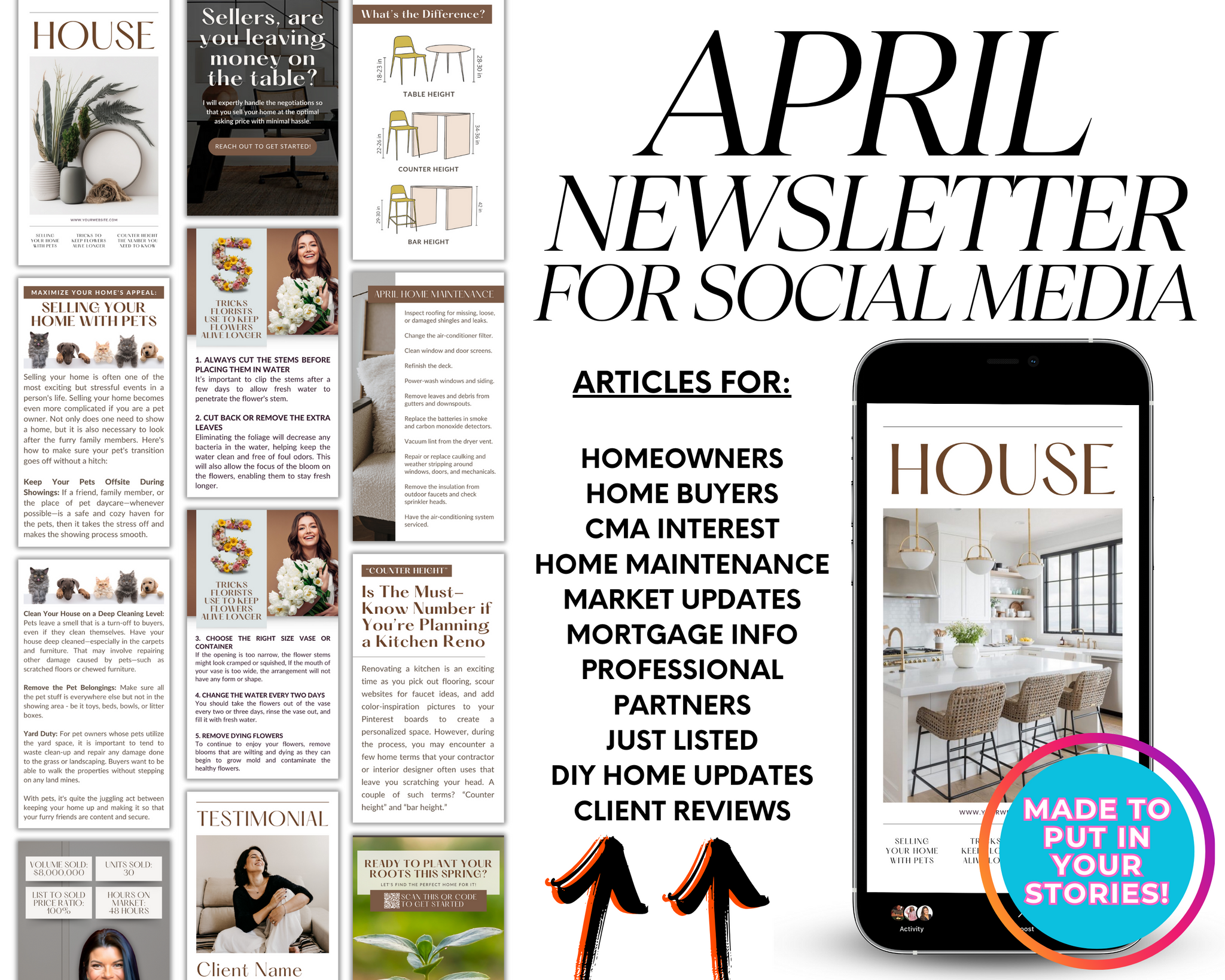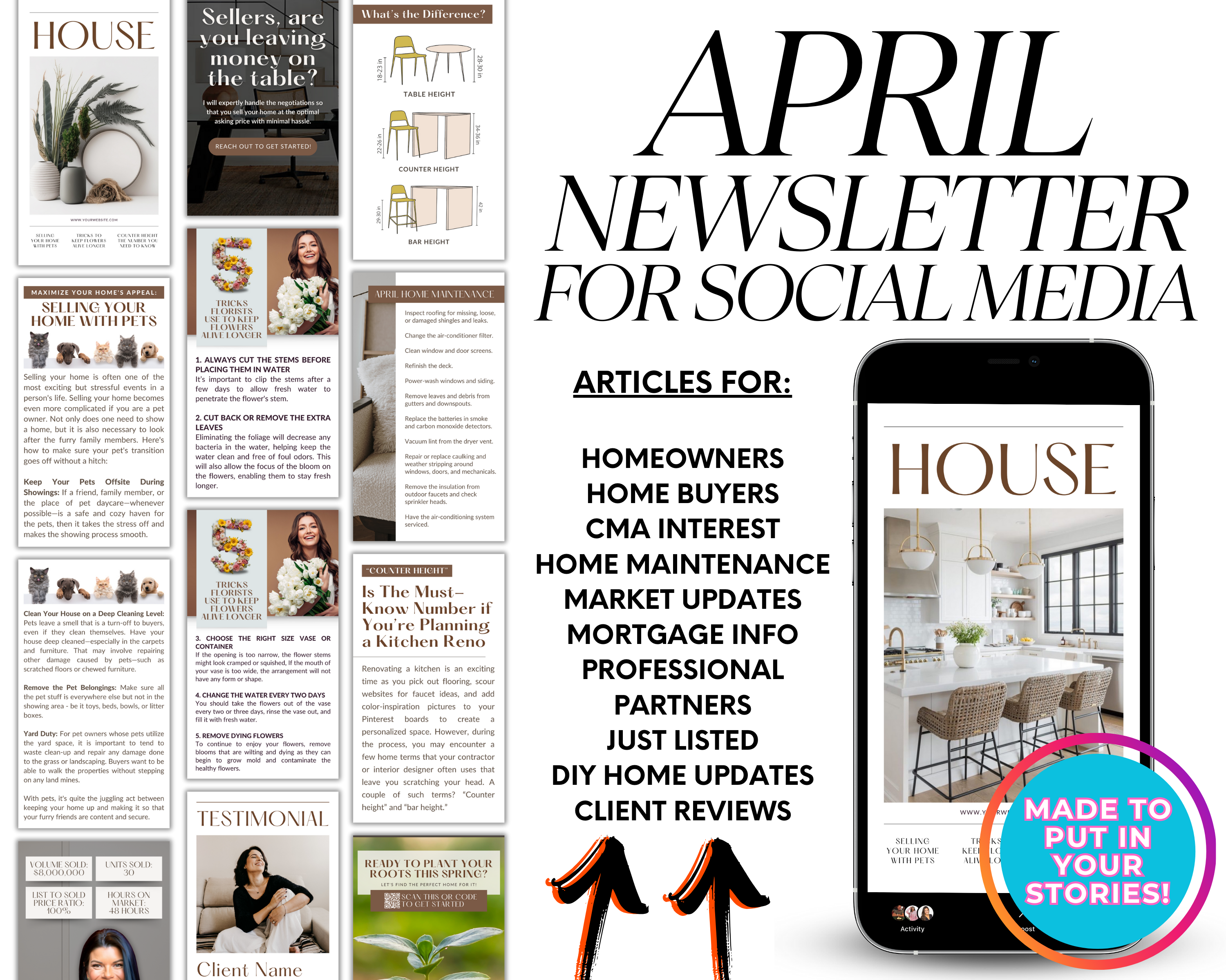 With our April Social Media Newsletter Template, you'll have the power to showcase your expertise, build trust with your audience, and drive results that exceed your expectations. Don't miss out on this opportunity to take your real estate marketing to the next level!