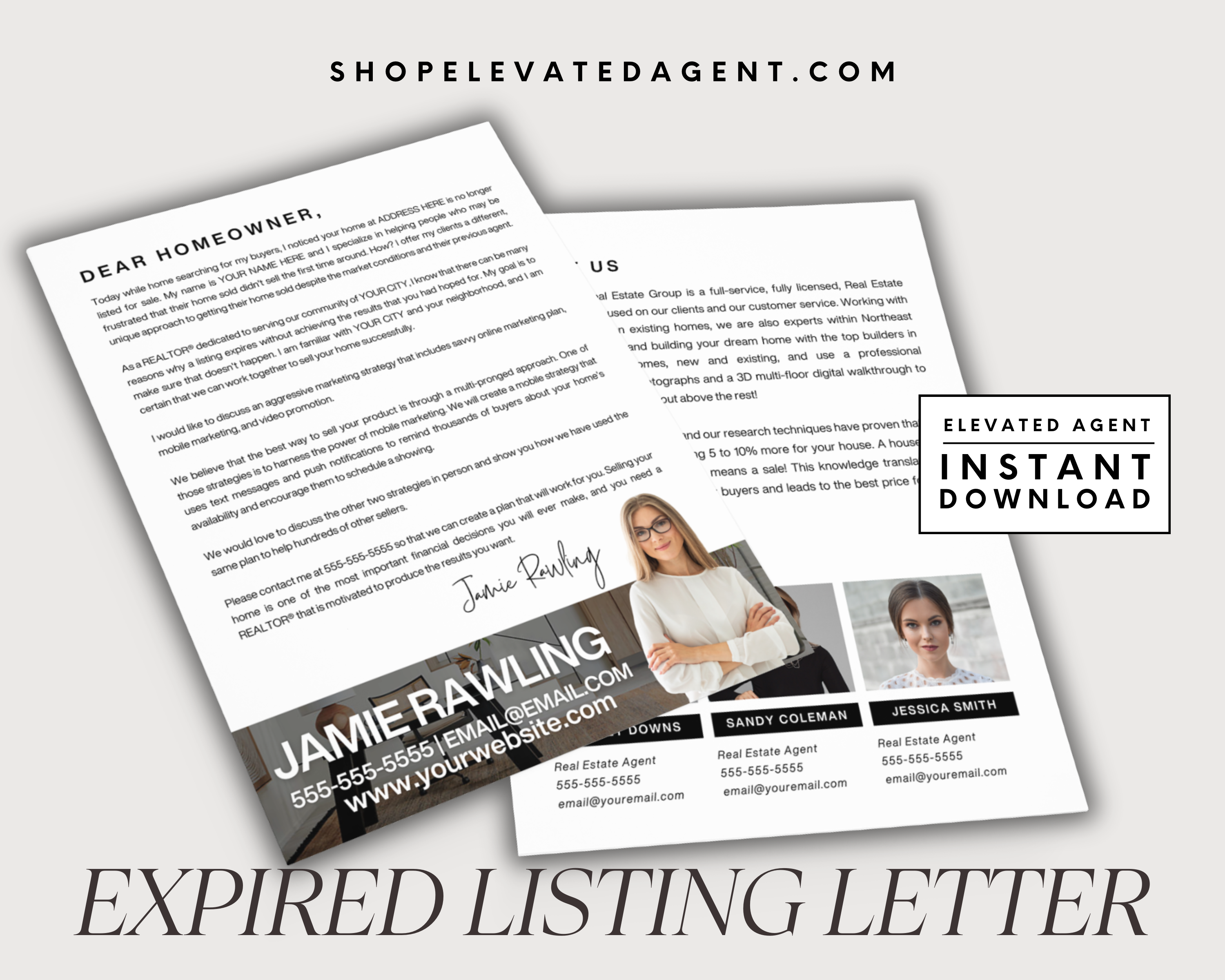 Invest in your success today and transform missed opportunities into thriving real estate transactions. Click “Add to Cart” and discover how our Expired Listing Letter template can enhance your business strategy and client relationships.