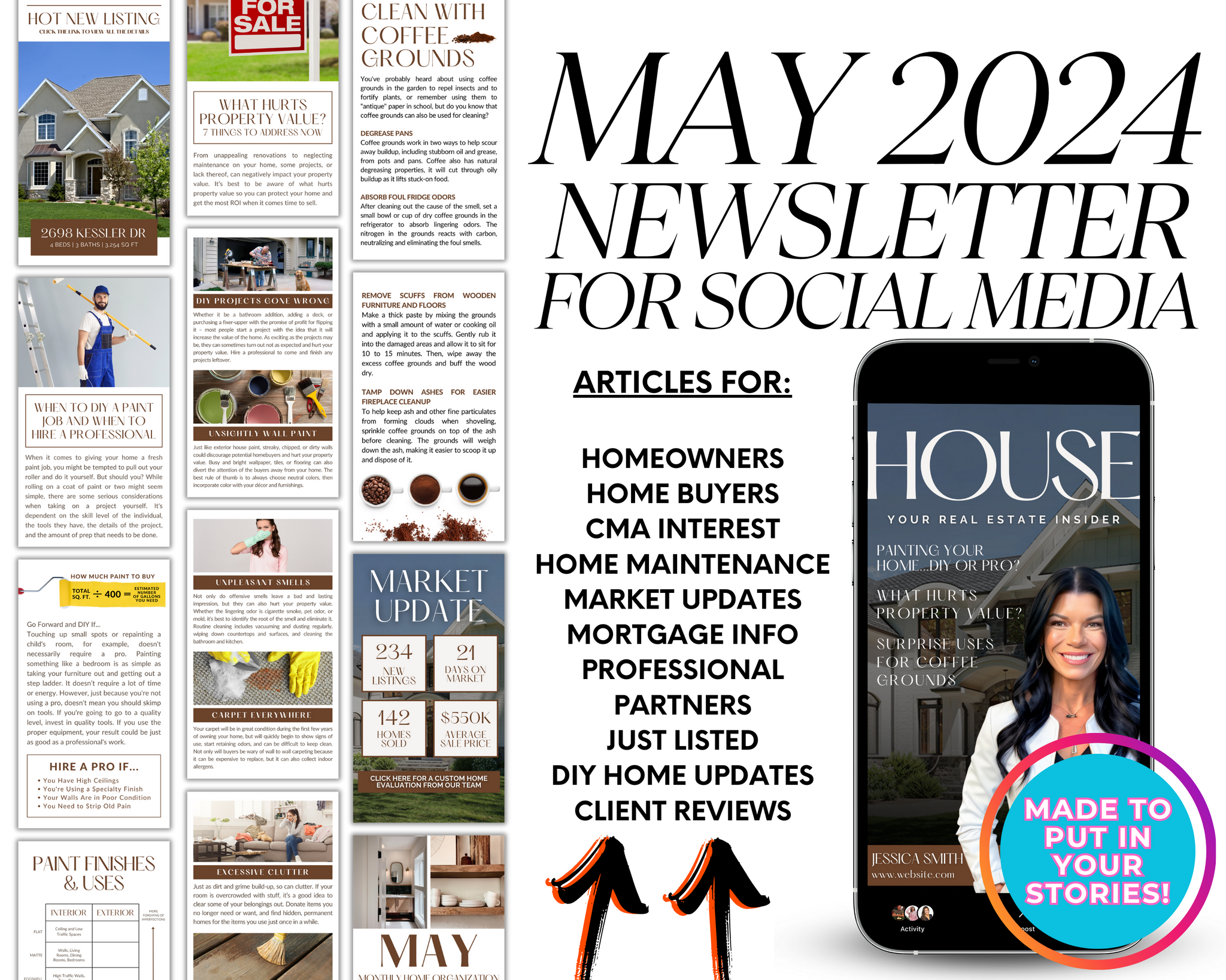 Looking to captivate your audience and showcase your listings in style? Our May 2024 Newsletter Story template is here to revolutionize your real estate marketing game! Crafted with finesse and designed for real estate agents like you, this stunning template is your ticket to crafting compelling narratives that resonate with your clients.