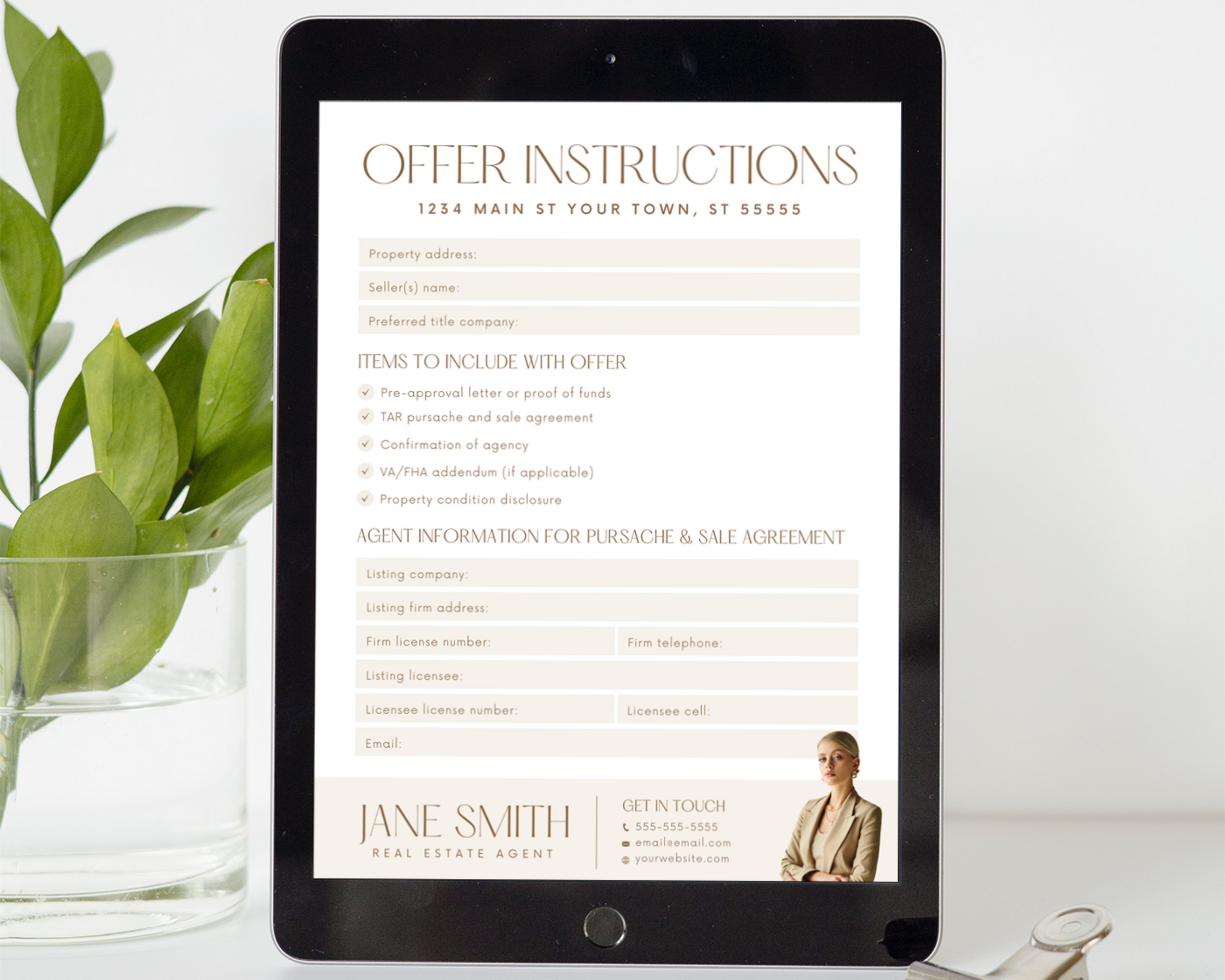 Why waste precious time reinventing the wheel when you can rely on our expertly designed template? Tailored to meet the unique needs of real estate professionals, this template provides a clear, concise framework to guide your clients through the offer process with confidence and ease.