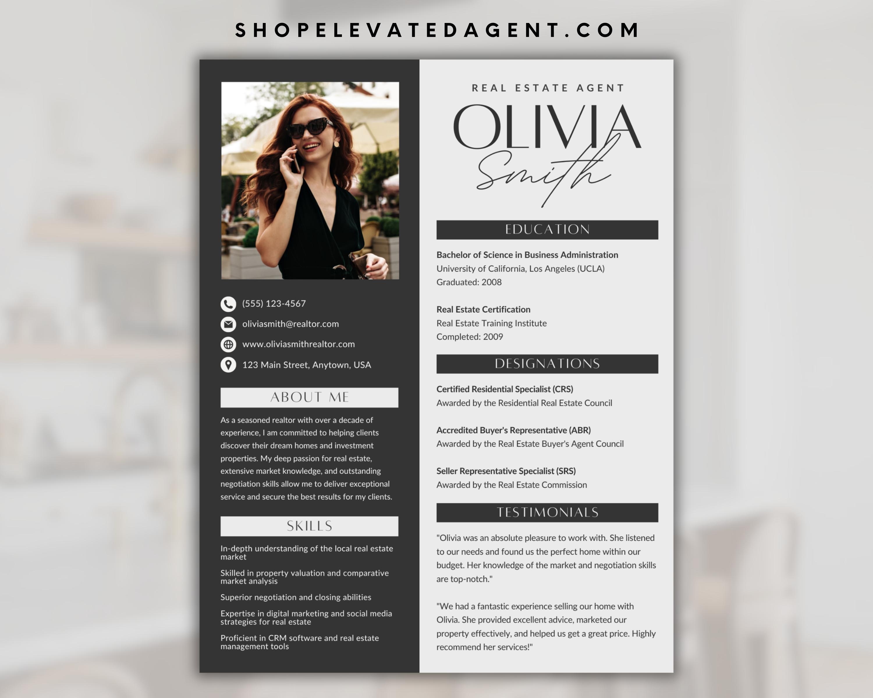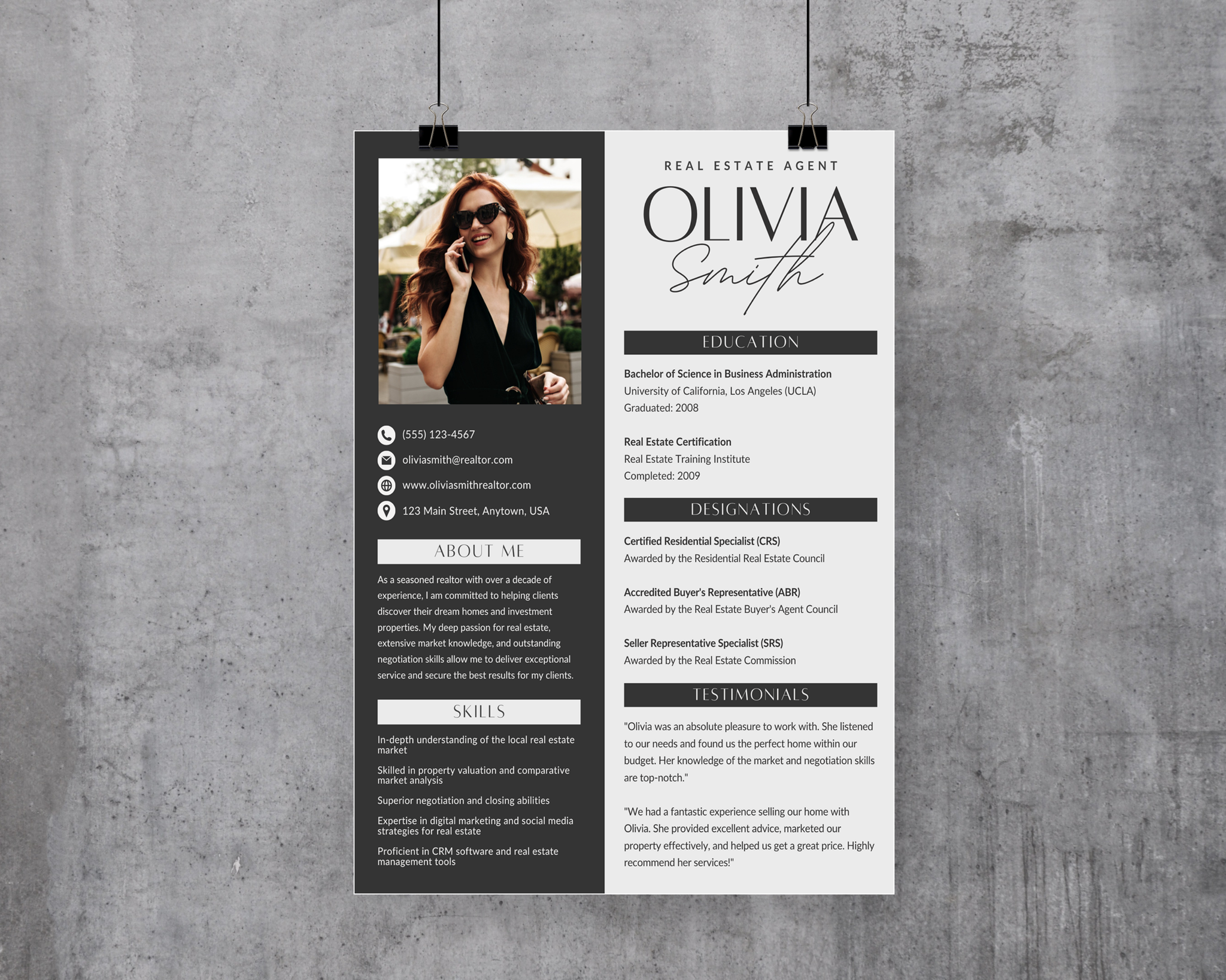 Tailored for Real Estate Agents: With sections dedicated to your professional summary, key skills, work experience, and certifications, this template is specifically designed to showcase your unique qualifications in the real estate industry.