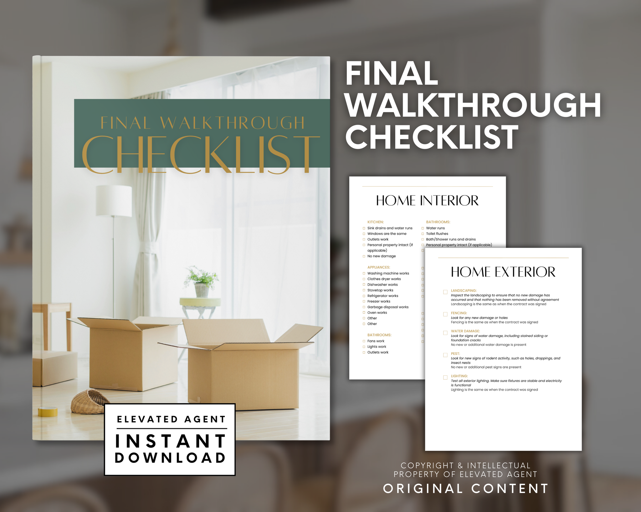 Ensure a smooth and stress-free closing process with our Real Estate Final Walkthrough Checklist Template! Designed with real estate agents in mind, this professionally crafted, fully editable template helps you cover every detail when conducting final walkthroughs with clients.