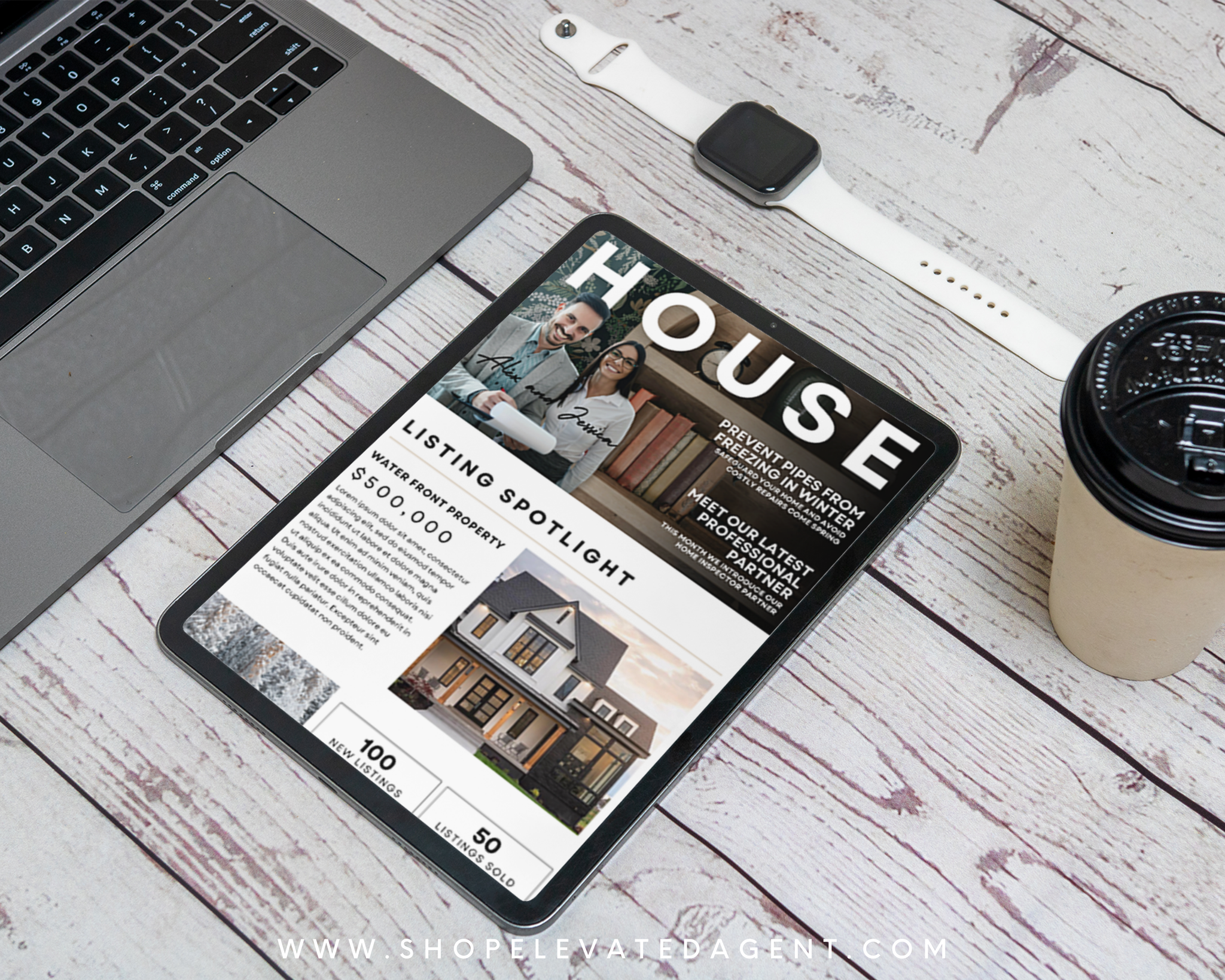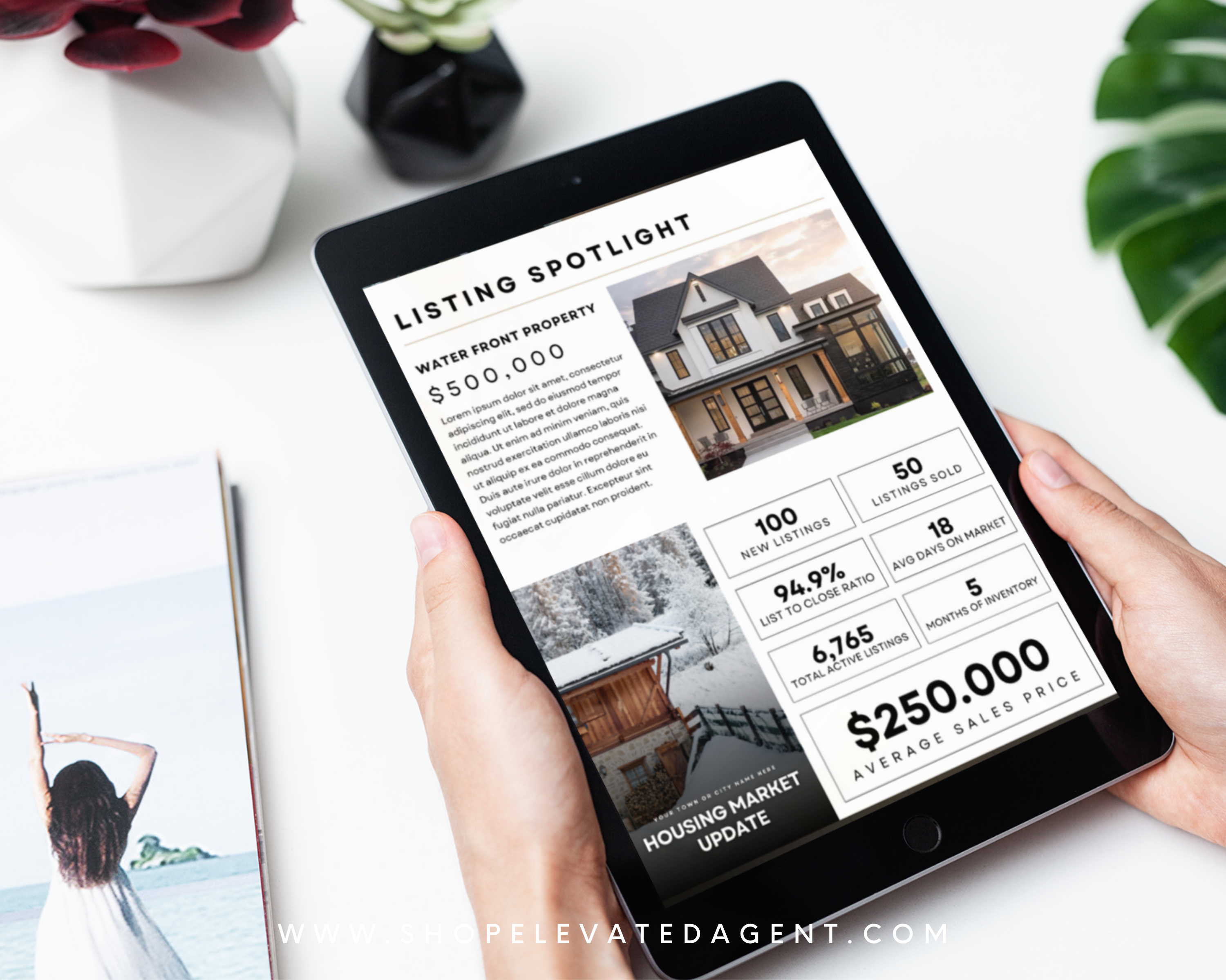 Engaging Layout – Pre-designed sections for market updates, featured listings, tips & more