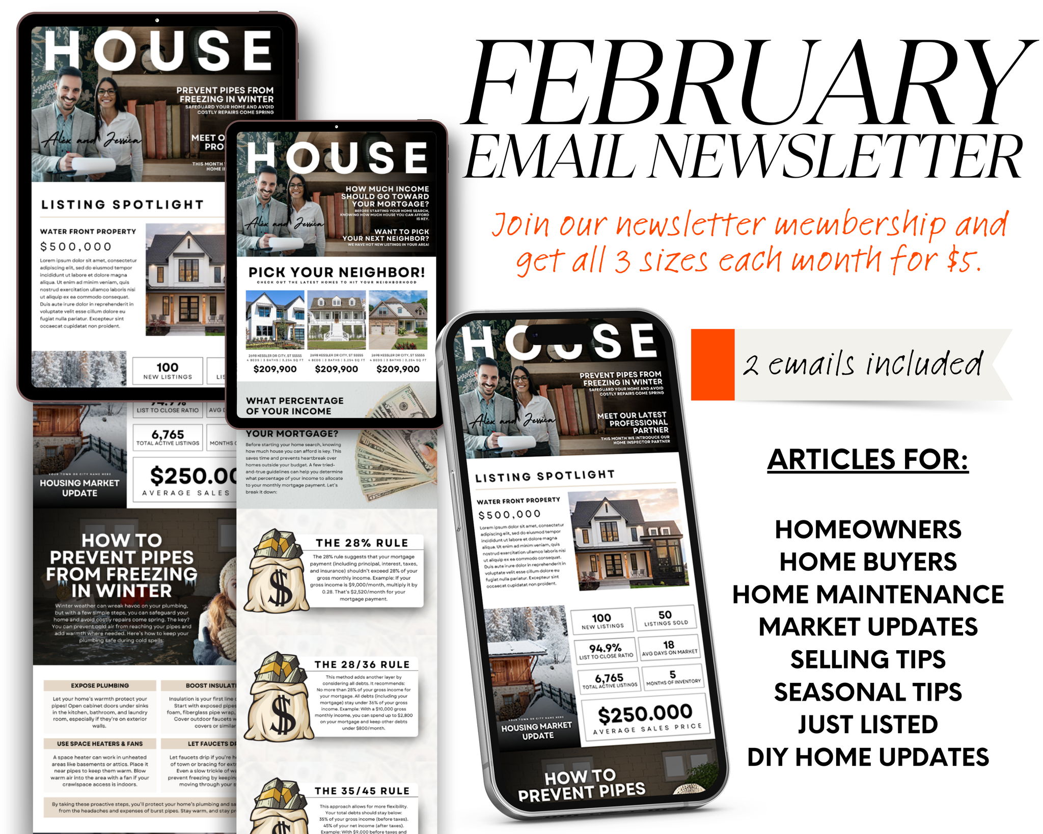 February is the perfect time to reconnect with your audience! A well-crafted newsletter is key to nurturing client relationships and establishing yourself as the go-to agent in your area. This February, deliver value-packed content straight to your audience’s inbox and keep them engaged all month long!
