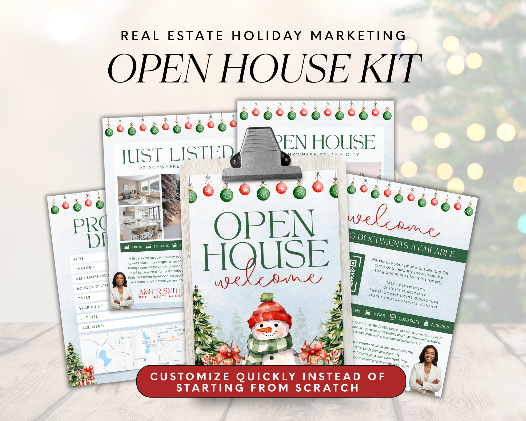 Make every guest feel welcome and turn your seasonal events into opportunities for connection and sales with this festive, ready-to-use Real Estate Holiday Open House Kit Template.