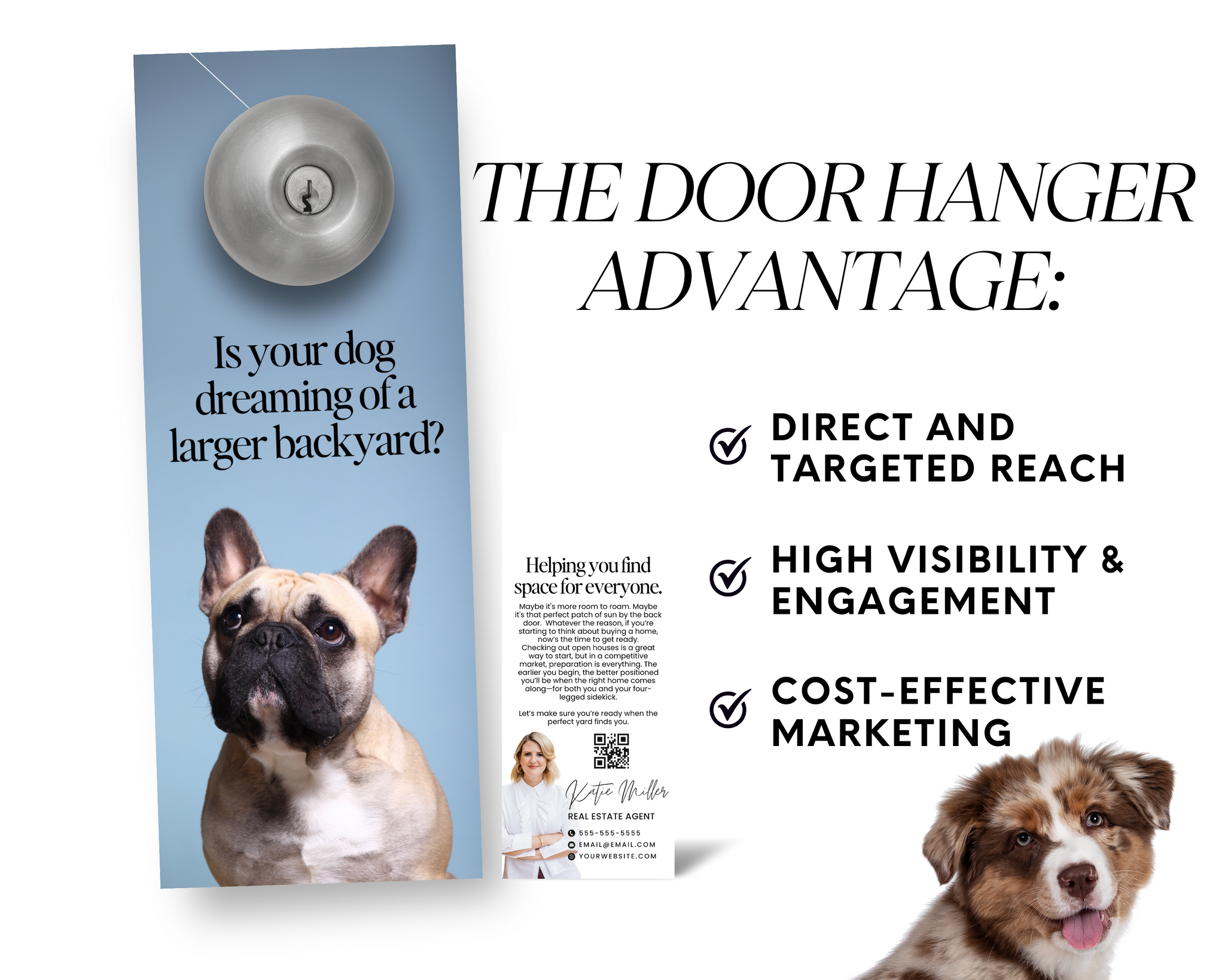 Stand out in your local market with this eye-catching Neighborhood Door Hanger, Pet Lover Edition. This printable Canva template is designed to help real estate agents connect with homeowners in a warm, approachable, and memorable way. Featuring a fun pet-friendly theme, it’s perfect for sparking conversations and building relationships with potential clients.