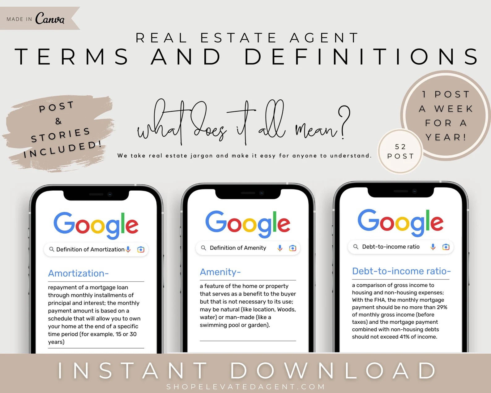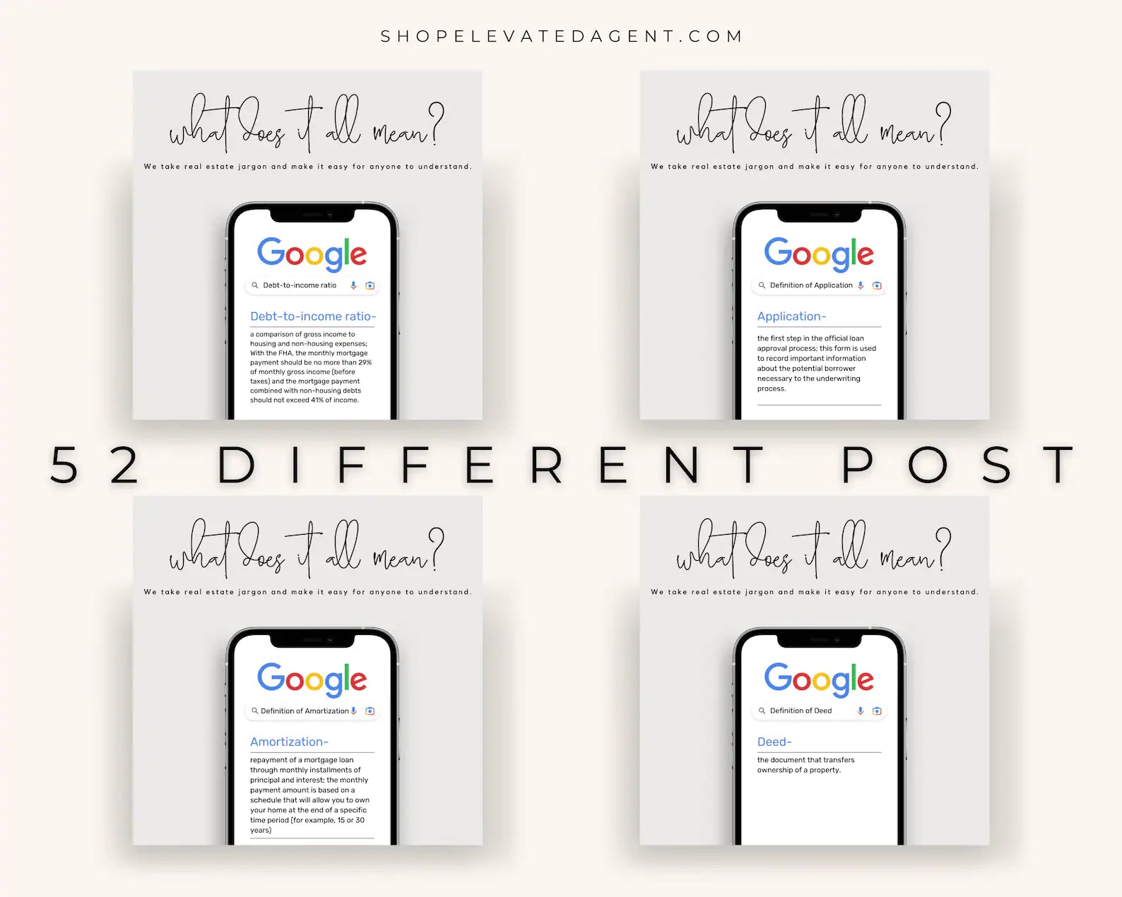 Attention Real Estate Agents! Use these Real Estate Templates – 52 Real Estate Instagram Posts to promote you and your real estate business. Your potential clients will like seeing that you’re an agent that can get a property across the finish line for your buyers and sellers and everything in between.