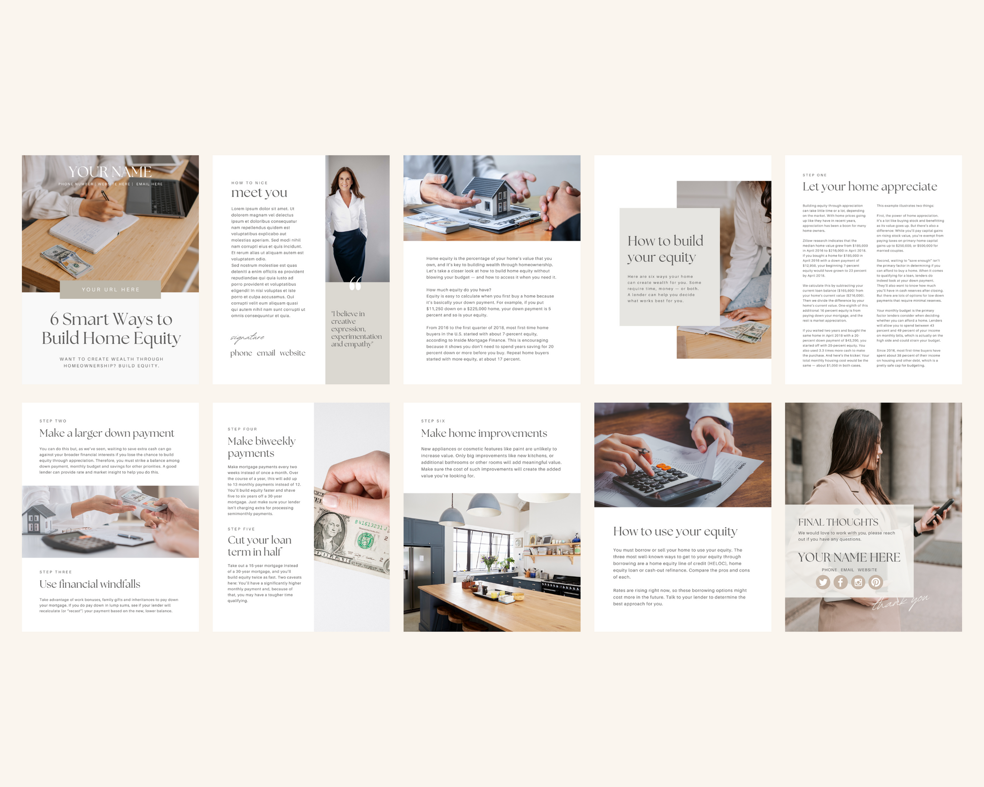 Are you a real estate agent looking to up your marketing game? Well, look no further because our real estate templates have you covered with this 6 Smart Ways to Build Home Equity Seller Guide! Say goodbye to boring real estate marketing and hello to eye-catching graphics that are sure to grab the attention of potential seller clients.