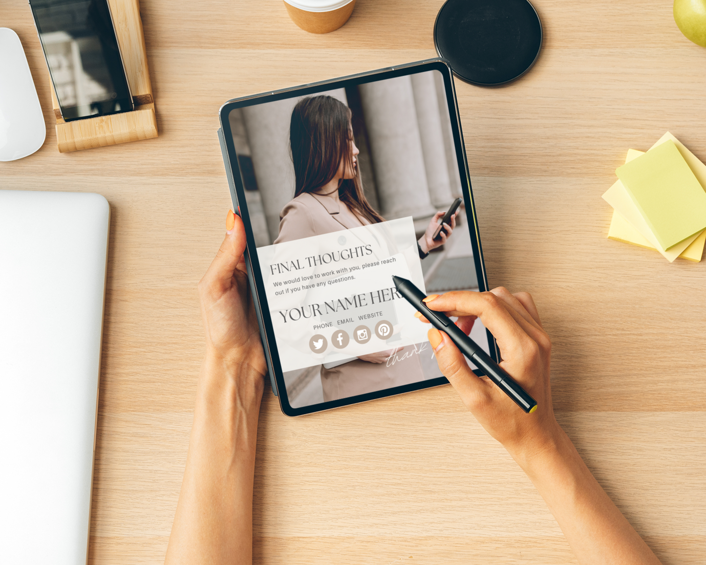 - Change the colors to your company's branding standards, add any additional images or logos you want in Canva