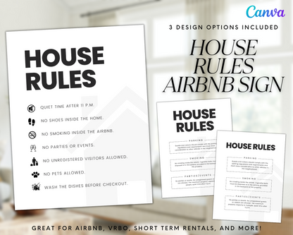 Attention professional Airbnb or VRBO hosts! Use this Real Estate Template – Airbnb House Rules Sign to provide your guest with clear communication about the house rules during their stay. Customize your sign with your own rules and enjoy a smooth and stress-free hosting experience with happy guests who are aware of your expectations.