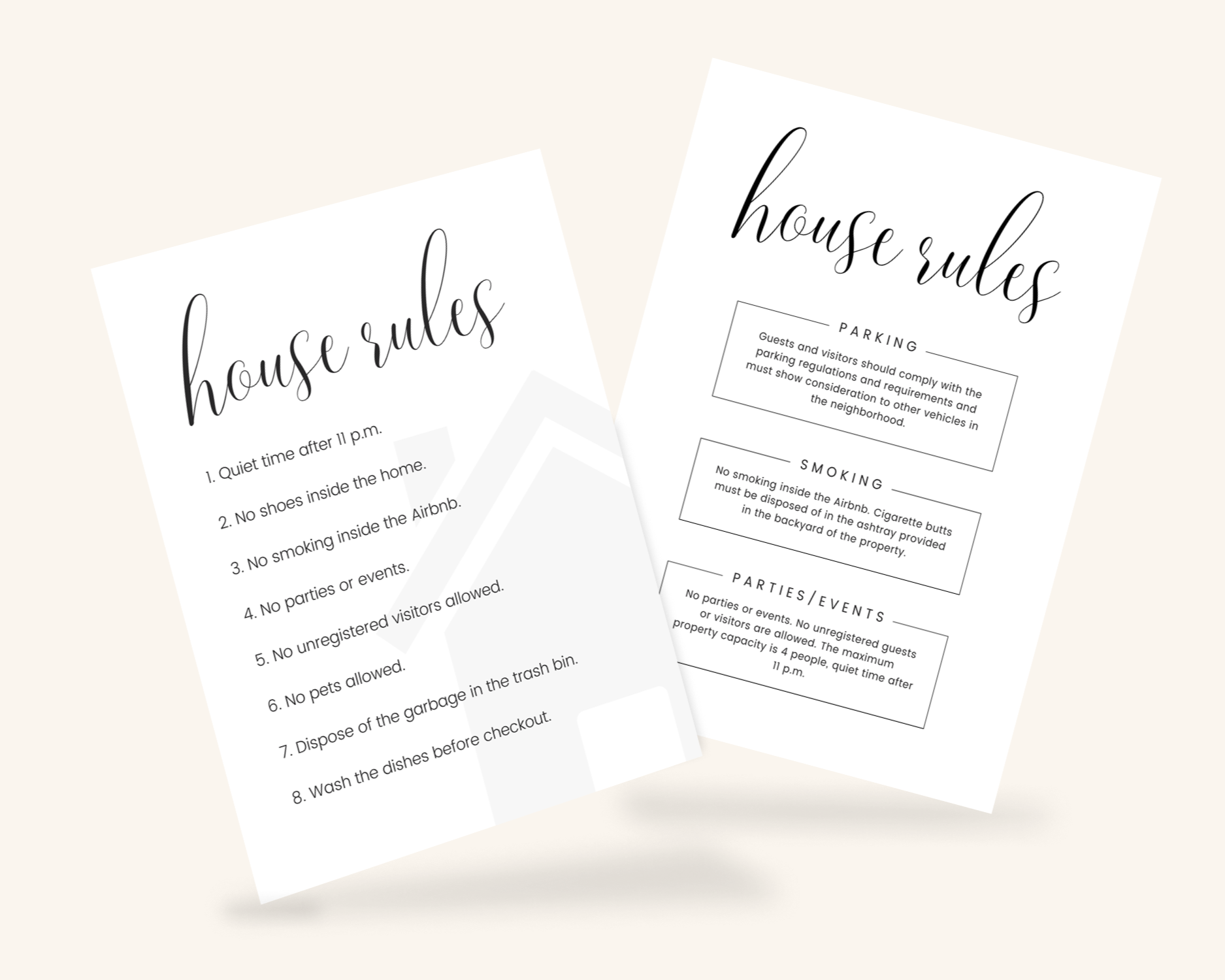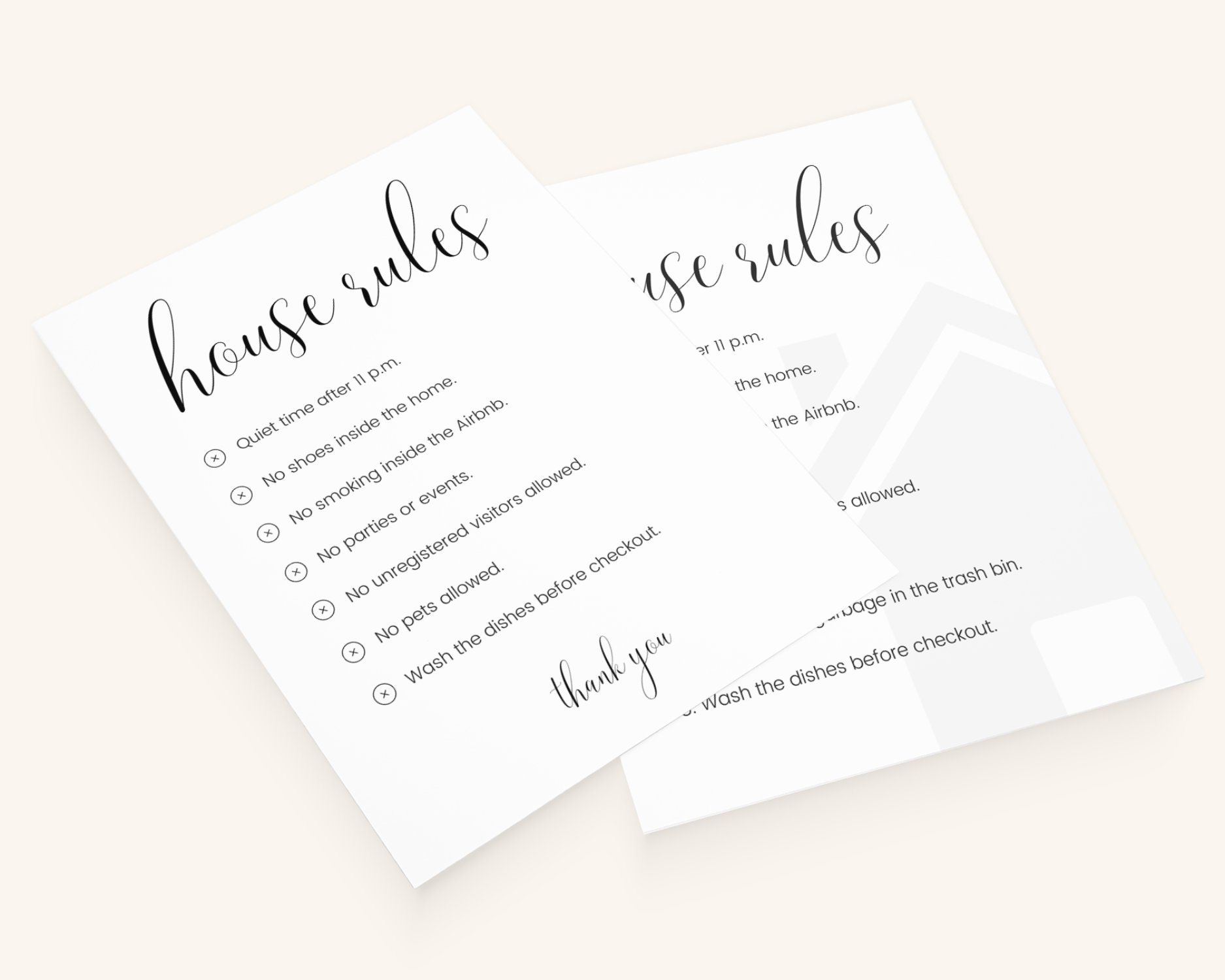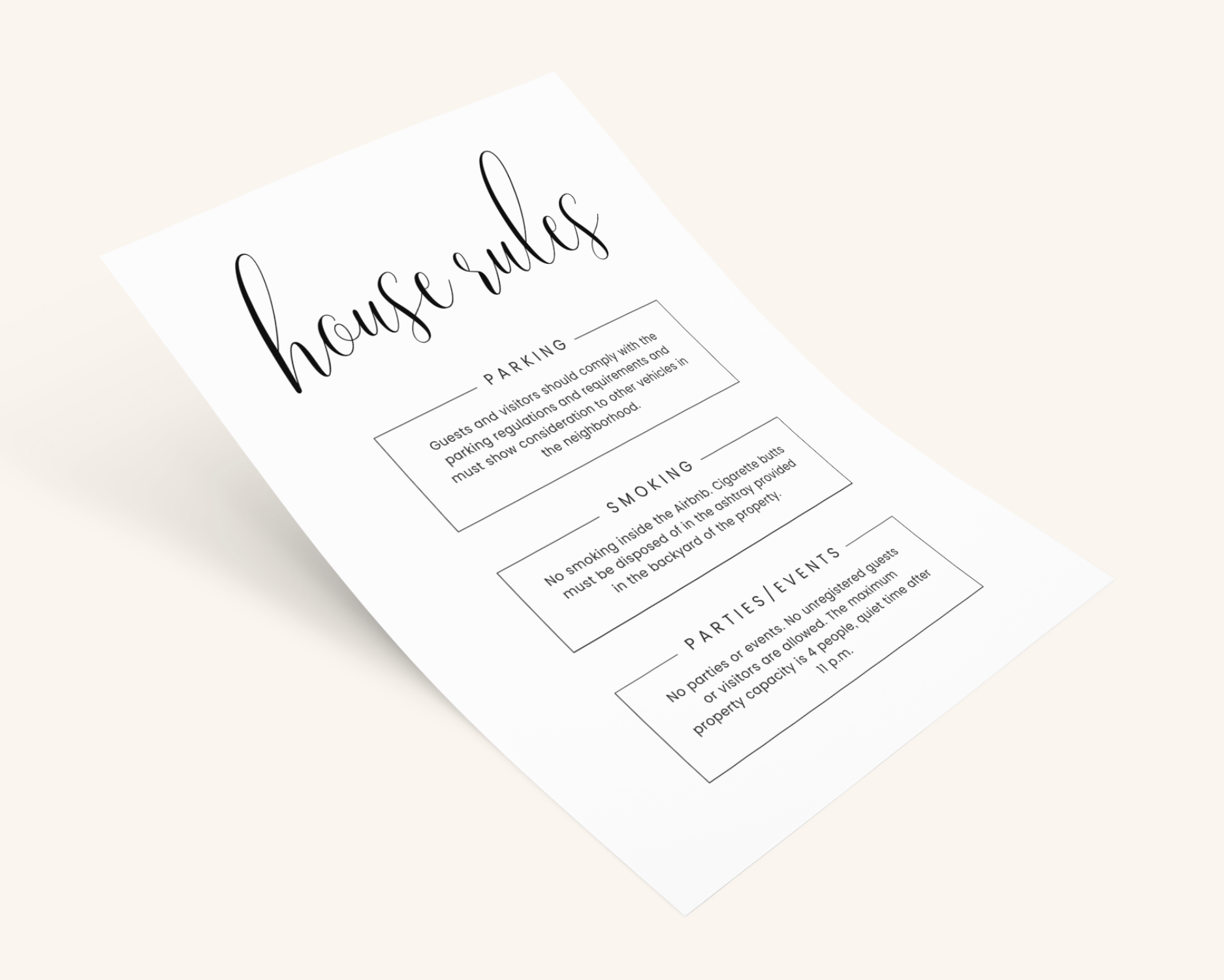 As a proud Airbnb host, you know that the key to a successful stay for both you and your guests is clear communication. This is where your Airbnb House Rules Sign comes in - a simple, yet effective way to relay important information to your guests without having to repeat yourself over and over.