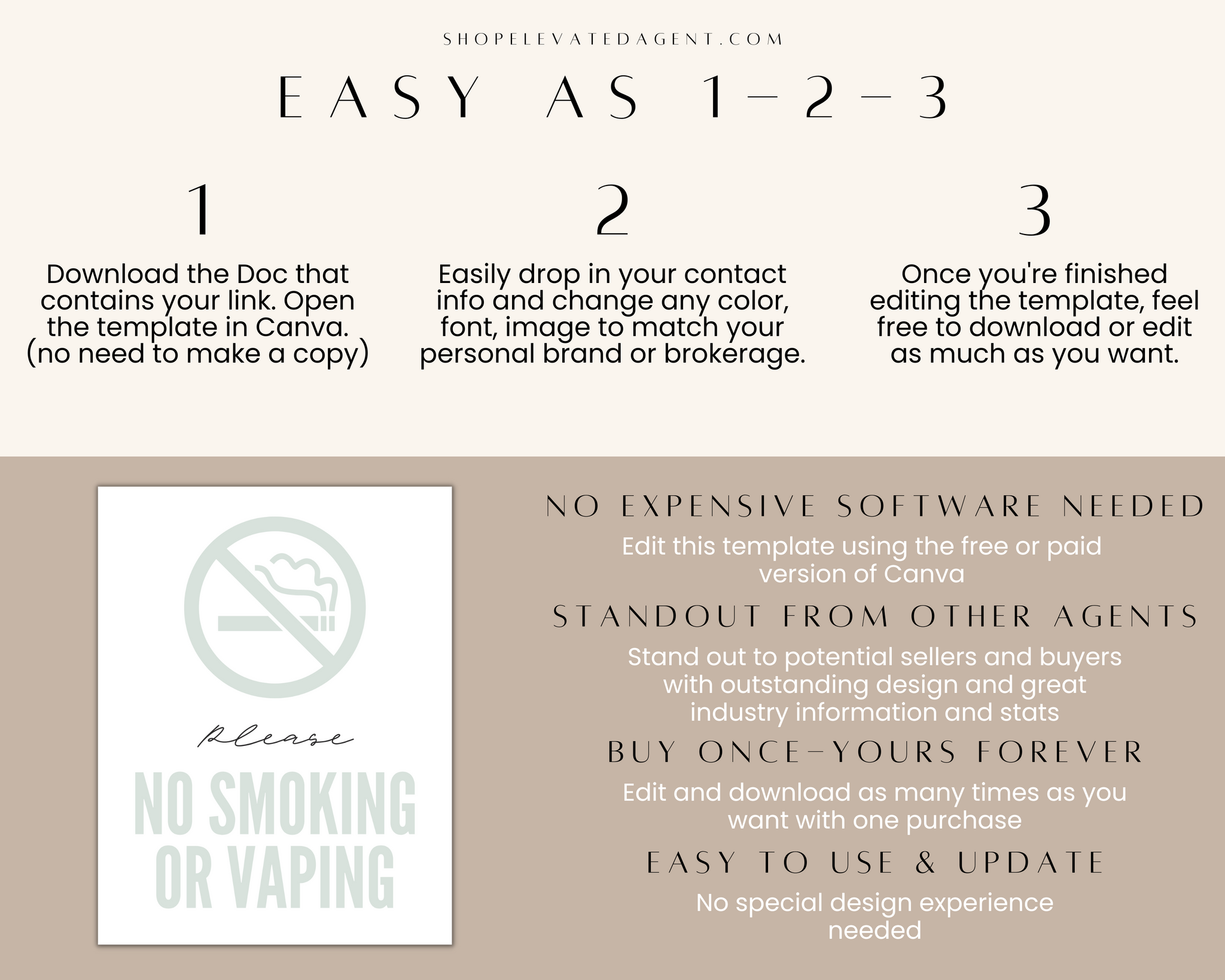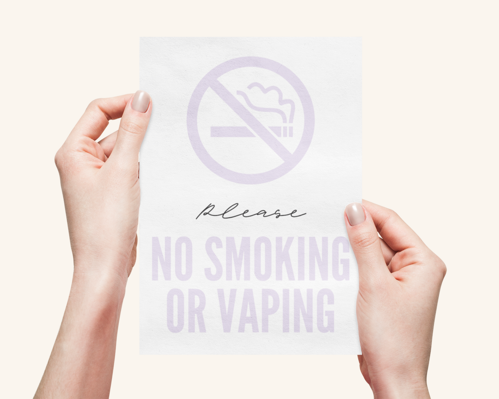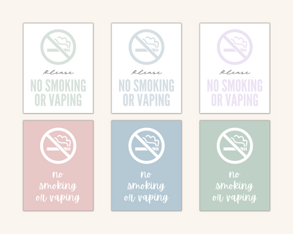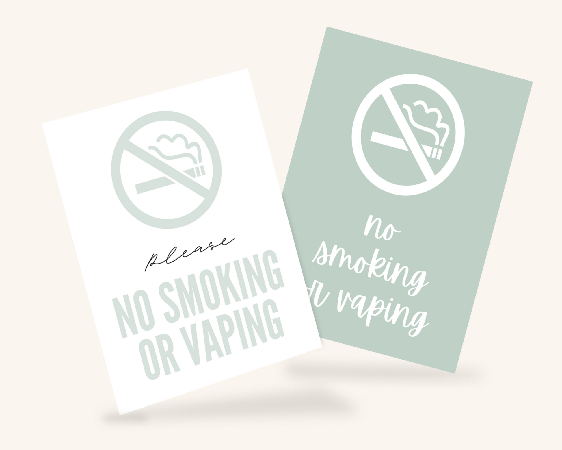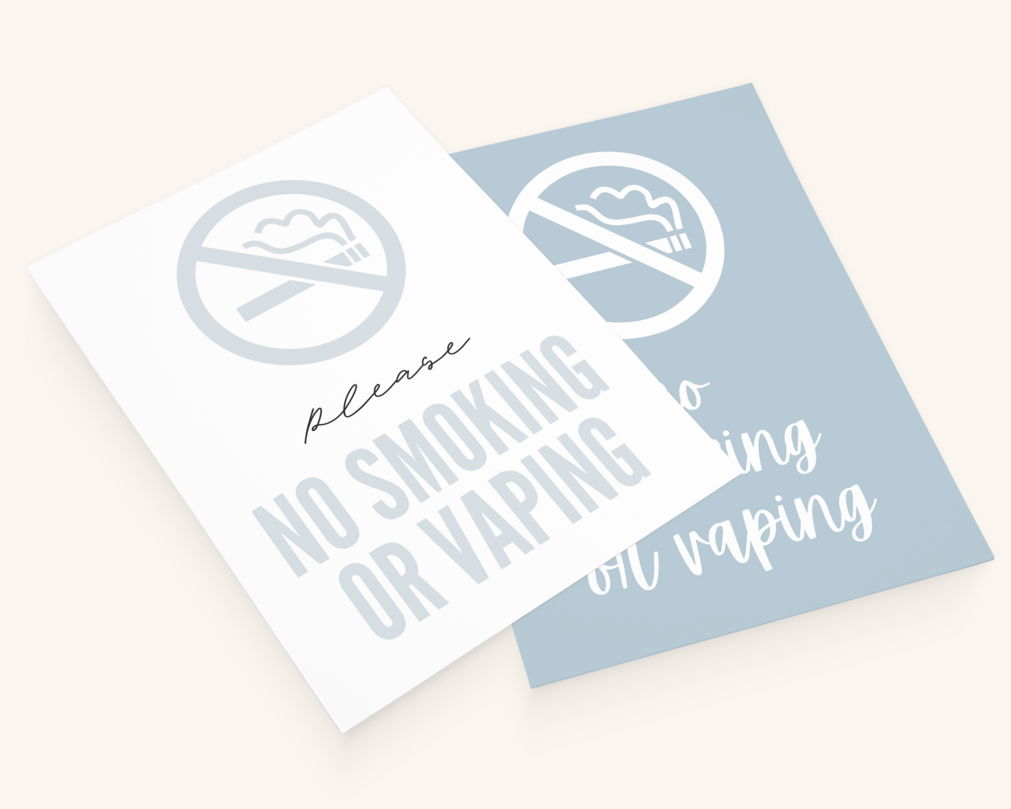 This Real Estate Template – Airbnb No Smoking or Vaping Sign 2 can be printed at a local printer to be displayed in your property or emailed as a digital file to your guests.