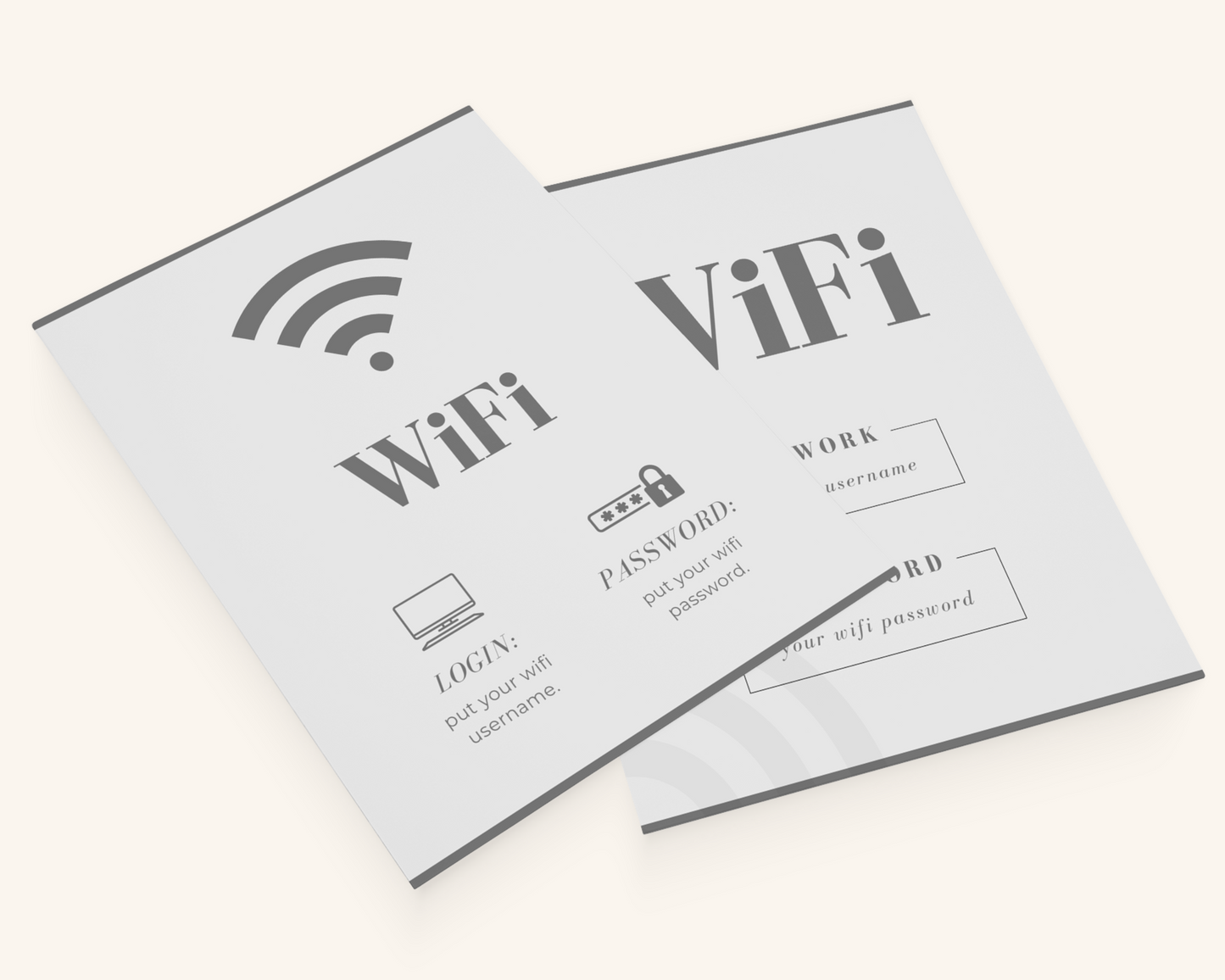 This Airbnb Wifi Sign is a practical piece of information for your guests but it can also add a touch of style to your vacation rental décor. Printing out and displaying signs with your WIFI network name and password can save your guests the frustration of guessing and re-entering incorrect codes. It’s a small detail that can greatly enhance your guests’ overall experience and make them feel more at home. So, invest in printable WIFI signs today and enhance your guests’ stay with ease.