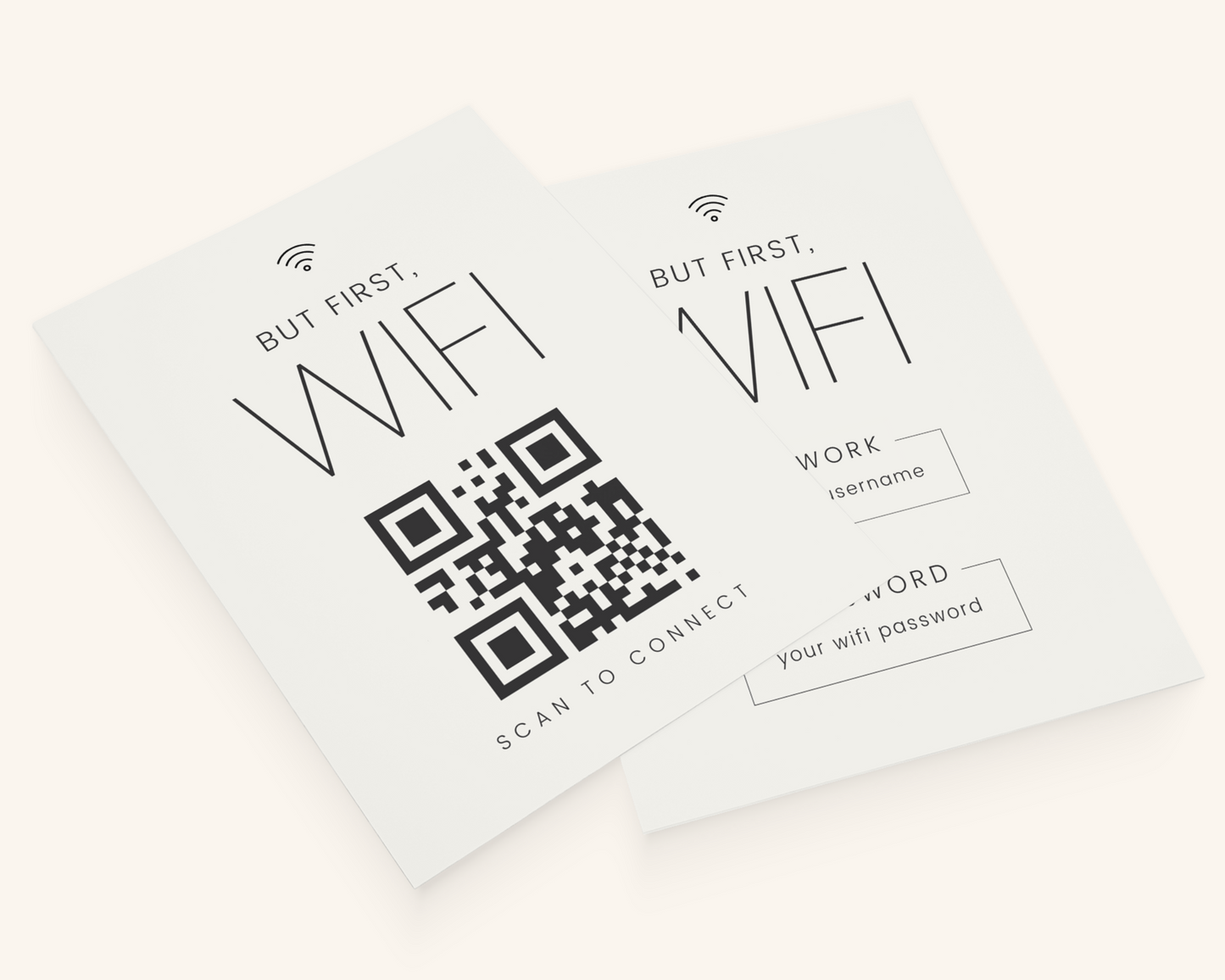 This Airbnb Wifi Sign is a practical piece of information for your guests but it can also add a touch of style to your vacation rental décor. Printing out and displaying signs with your WIFI network name and password can save your guests the frustration of guessing and re-entering incorrect codes. It’s a small detail that can greatly enhance your guests’ overall experience and make them feel more at home. So, invest in printable WIFI signs today and enhance your guests’ stay with ease.