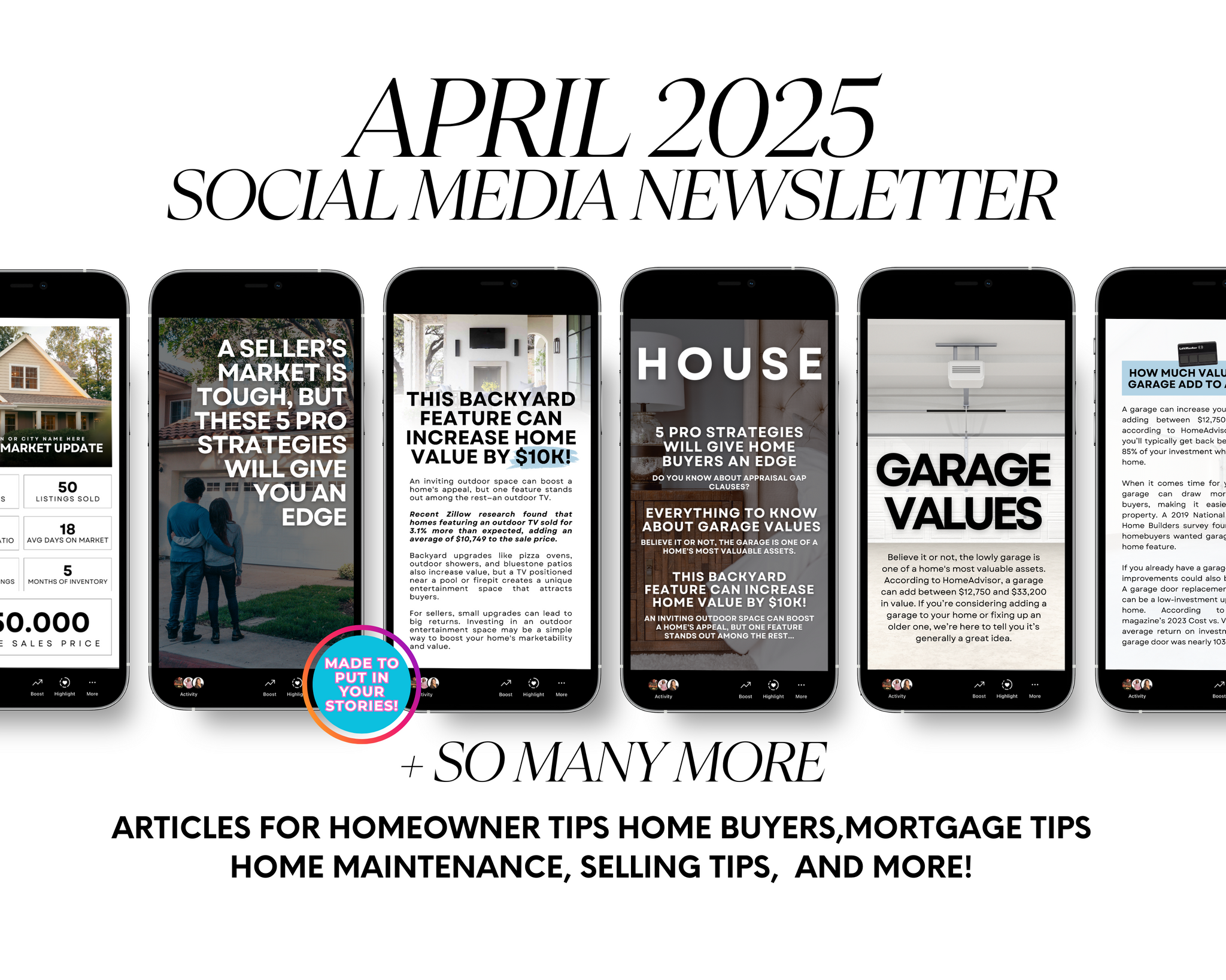 Monthly Focus: Tailored specifically for the month of April, this template includes sections perfect for spring market updates, seasonal tips, home buying and selling advice, and more.