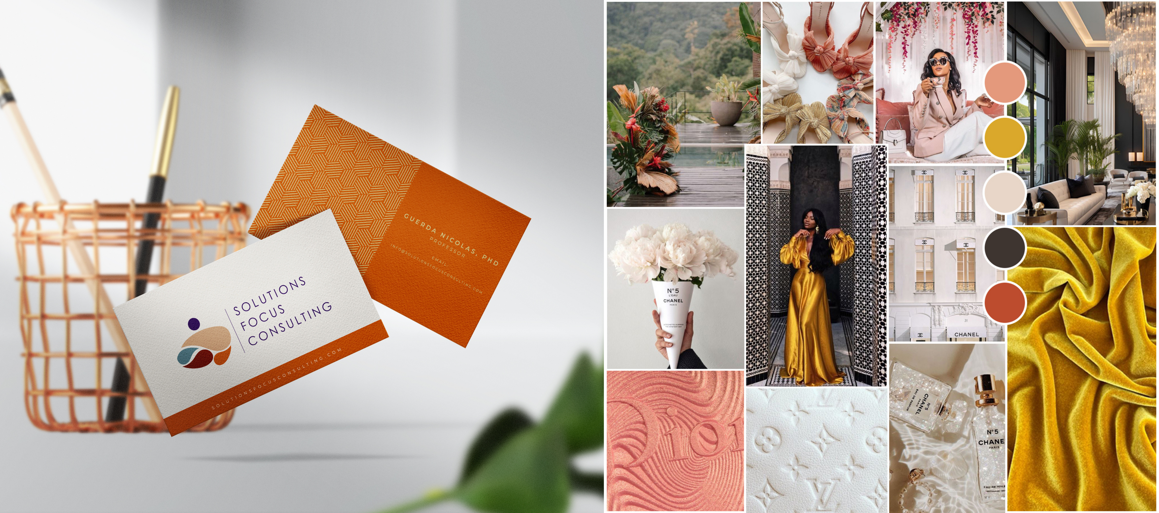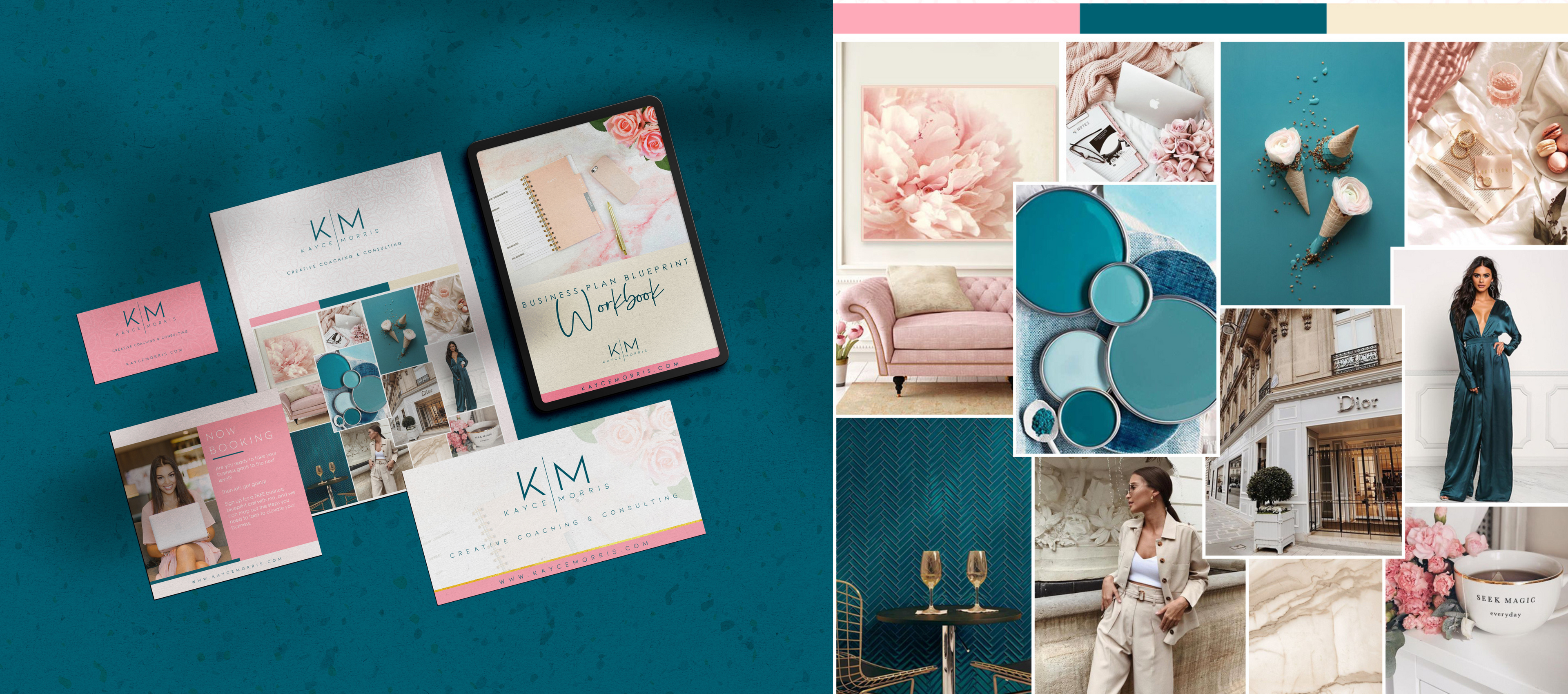 The Brand Elements: If the brand includes custom lettering, a monogram, styled tagline, etc we'll swap them out for your business.