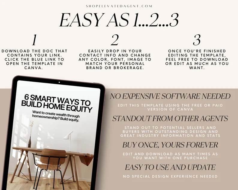 Are you a real estate agent looking to up your marketing game? Well, look no further because our real estate templates have you covered with this 6 Smart Ways to Build Home Equity Seller Guide! Say goodbye to boring real estate marketing and hello to eye-catching graphics that are sure to grab the attention of potential seller clients. Whether you're promoting an open house or showcasing a stunning property, these templates are easy to customize and will make your brand stand out from the crowd. Don't let your marketing fall flat - give our real estate templates a try and watch those seller clients come rolling in!