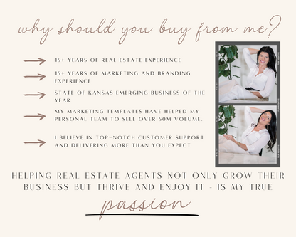 Using my 15+ years experience as a Marketing Manager AND real estate agent coupled with my passion (and talent!) for branding, my mission is to help and support as many real estate agents as possible in building and growing their brands and businesses.