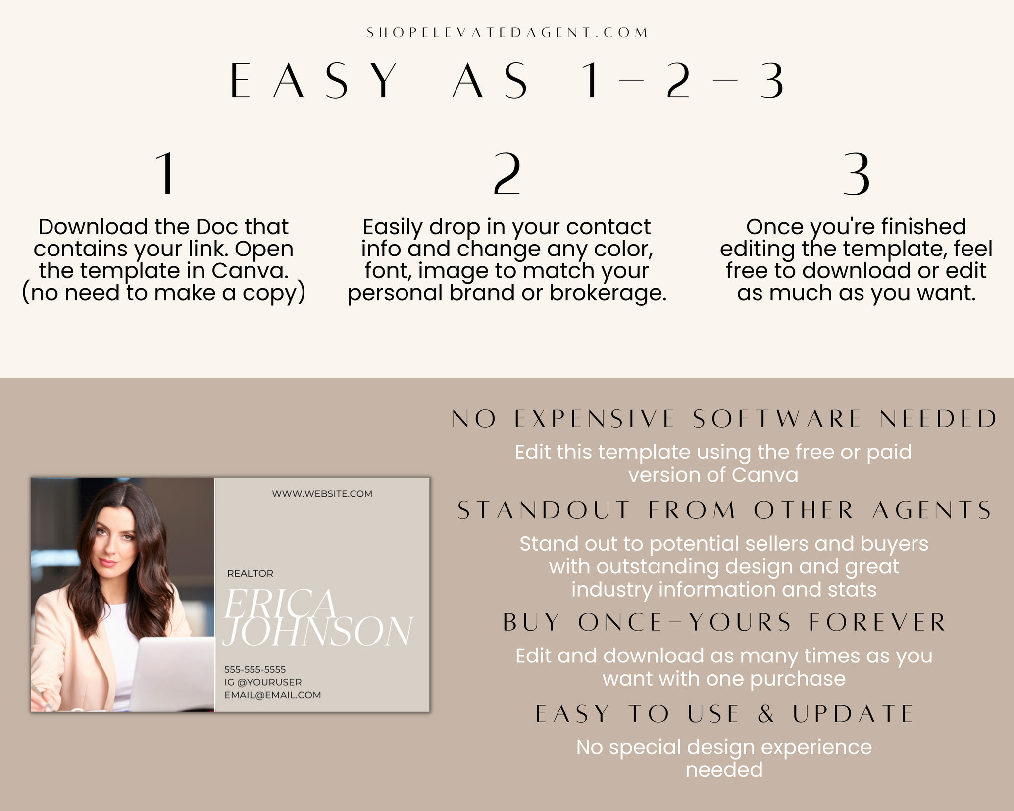 This Real Estate Template – Business Cards can be printed at your favorite local printer then handed out at in-person events and open houses. You can also email the digital file to your farm or use it on social media.
