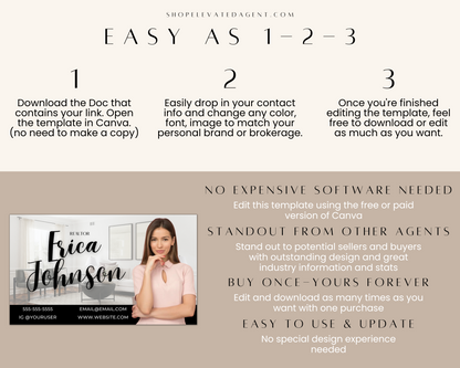 This Real Estate Template – Business Cards can be printed at your favorite local printer then handed out at in-person events and open houses. You can also email the digital file to your farm or use it on social media.