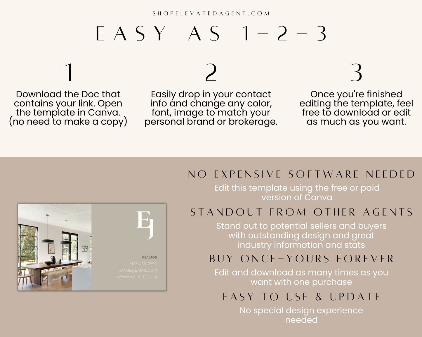 This Real Estate Template – Business Cards can be printed at your favorite local printer then handed out at in-person events and open houses. You can also email the digital file to your farm or use it on social media.
