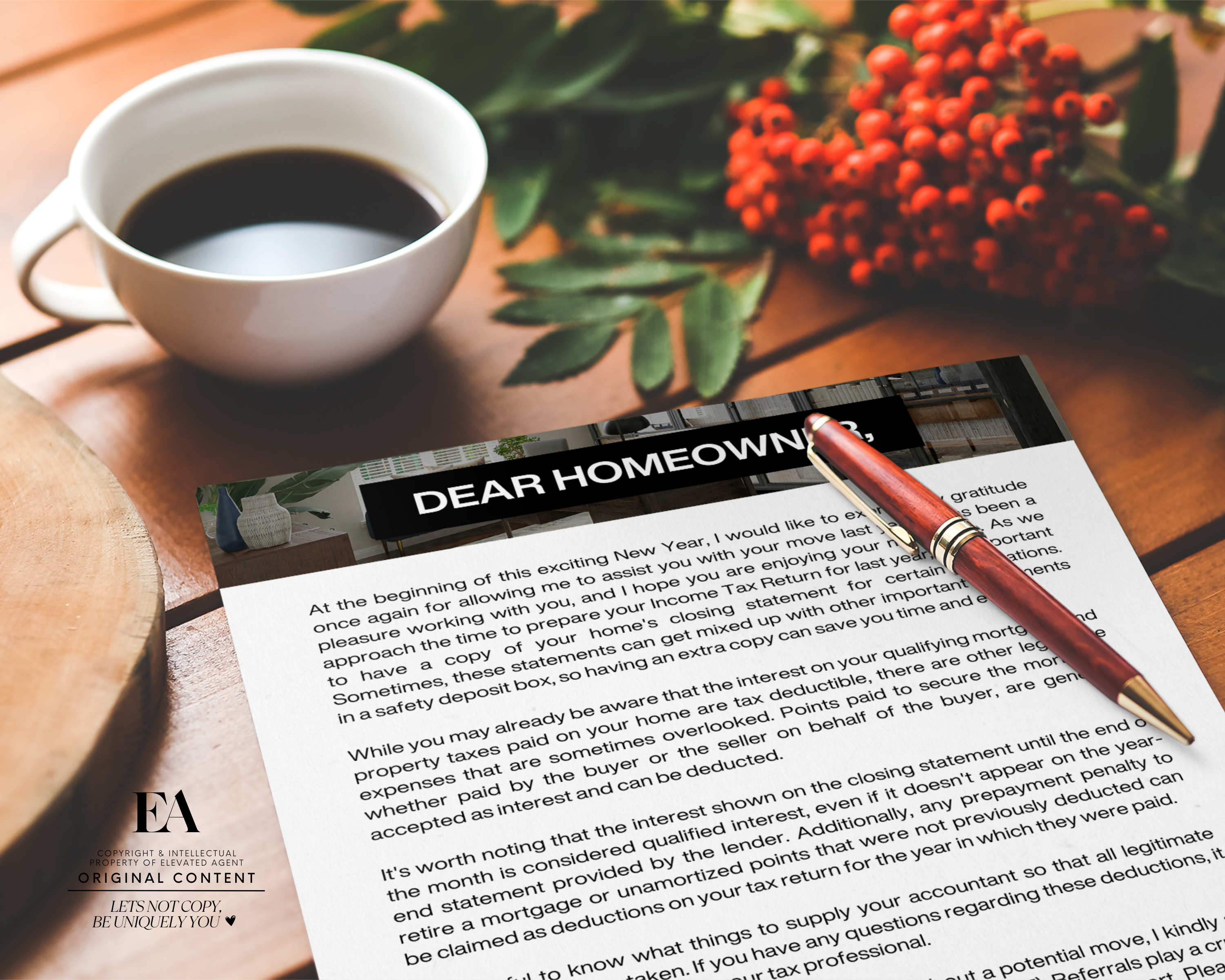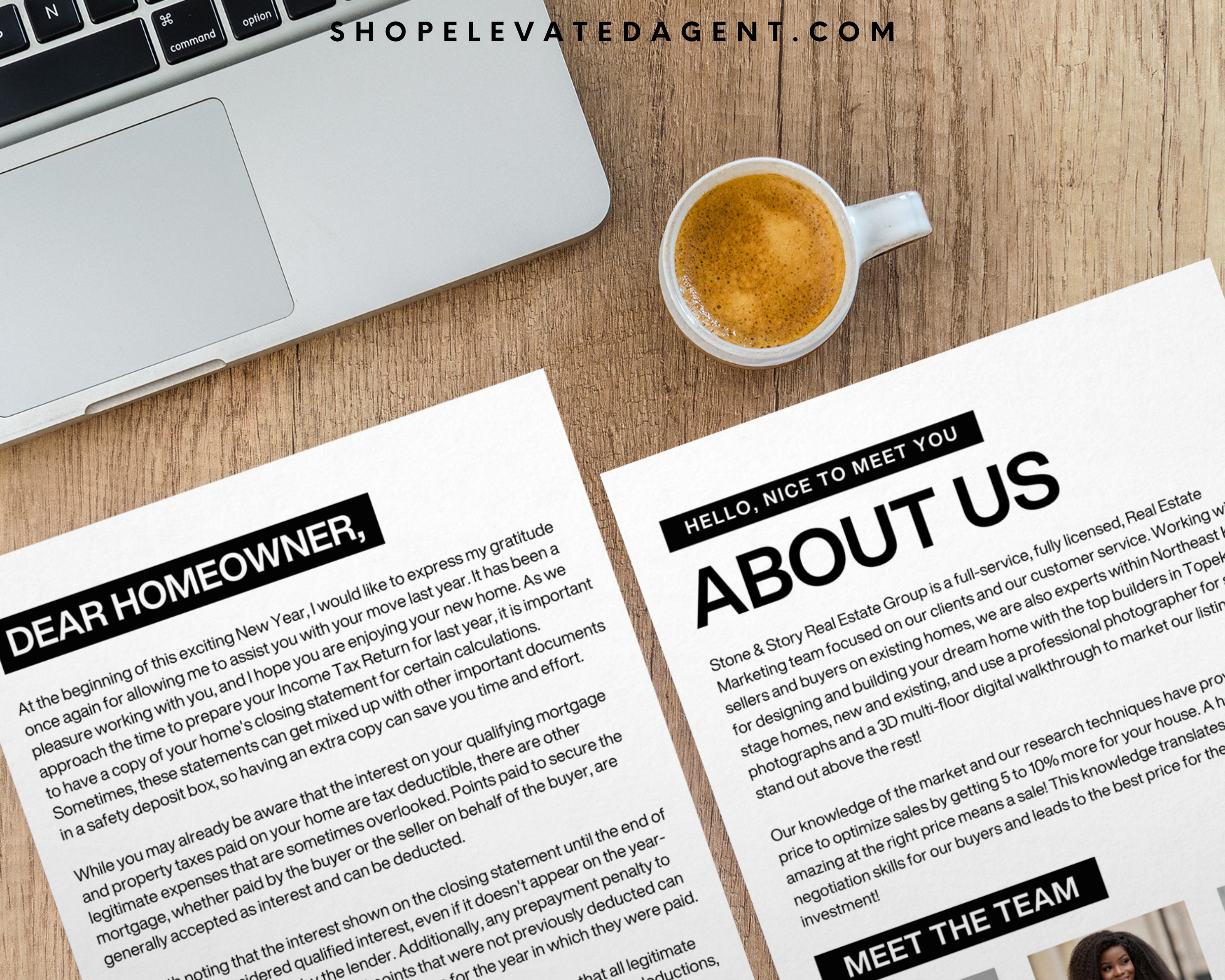 Help your clients stay organized and informed with this professionally designed Buyer Closing Statement Tax Letter Template. Perfect for real estate agents looking to maintain strong client relationships, this template provides a polished and thoughtful way to guide homeowners through their tax preparation.