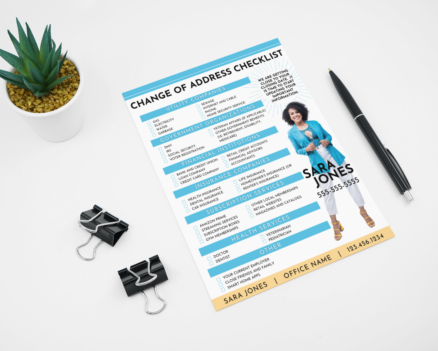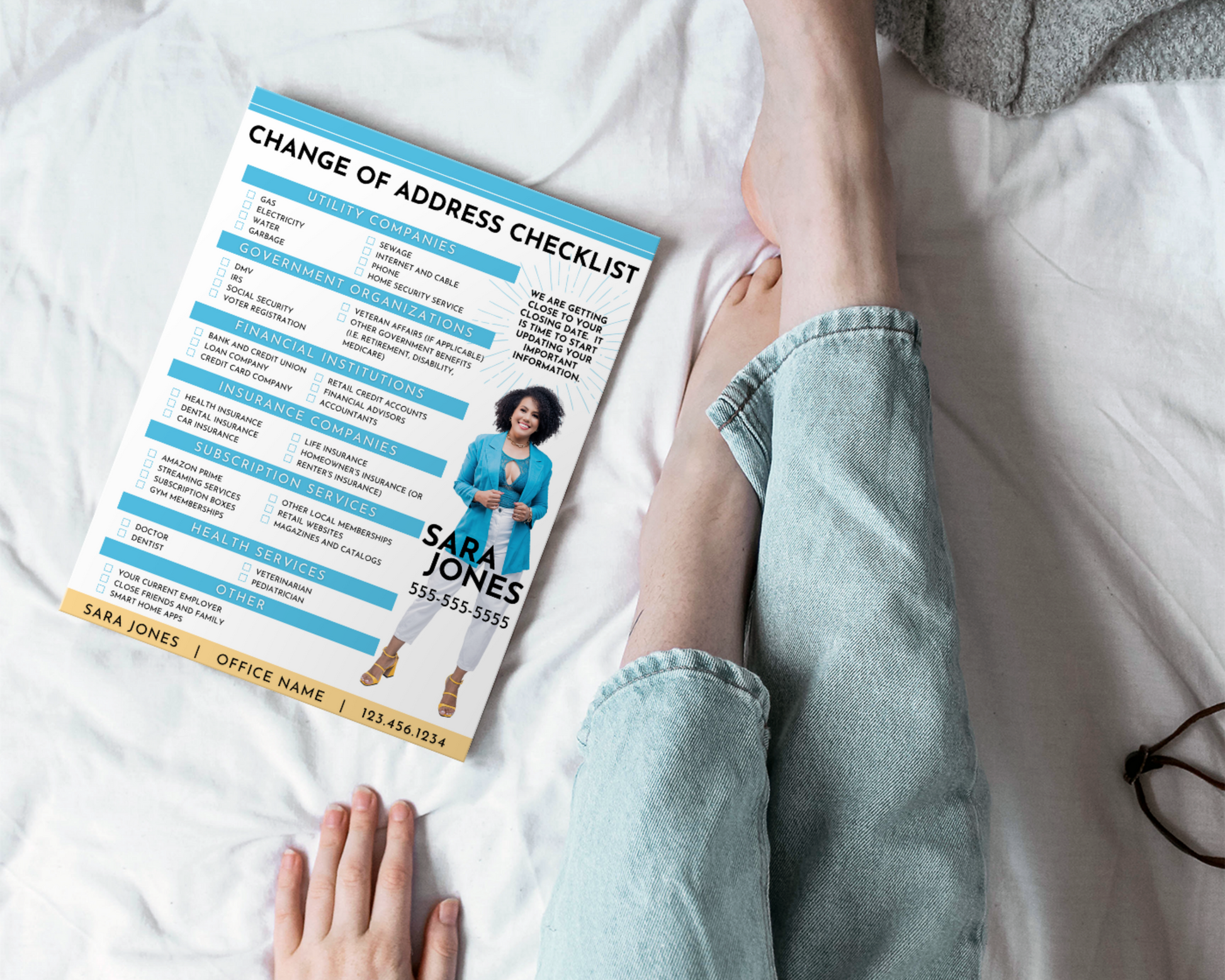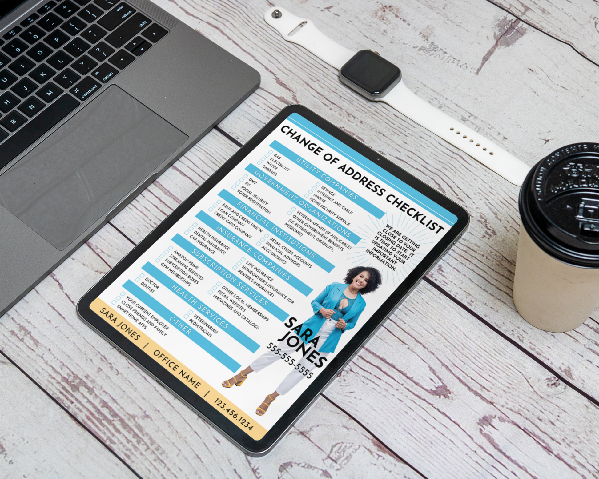 Effortless Moves with the Change of Address Checklist Real Estate Flyer - Moving homes can be a whirlwind, but it doesn't have to be! With our Change of Address Checklist Real Estate Flyer, you can help your clients navigate their relocation journey with ease and efficiency. This Checklist for Real Estate is more than just a list; it's a great companion to a comprehensive Home Buyer Guide designed to simplify the moving process for your clients. It's an integral component of your Home Buyer Packet and an essential tool in your Realtor Checklist.