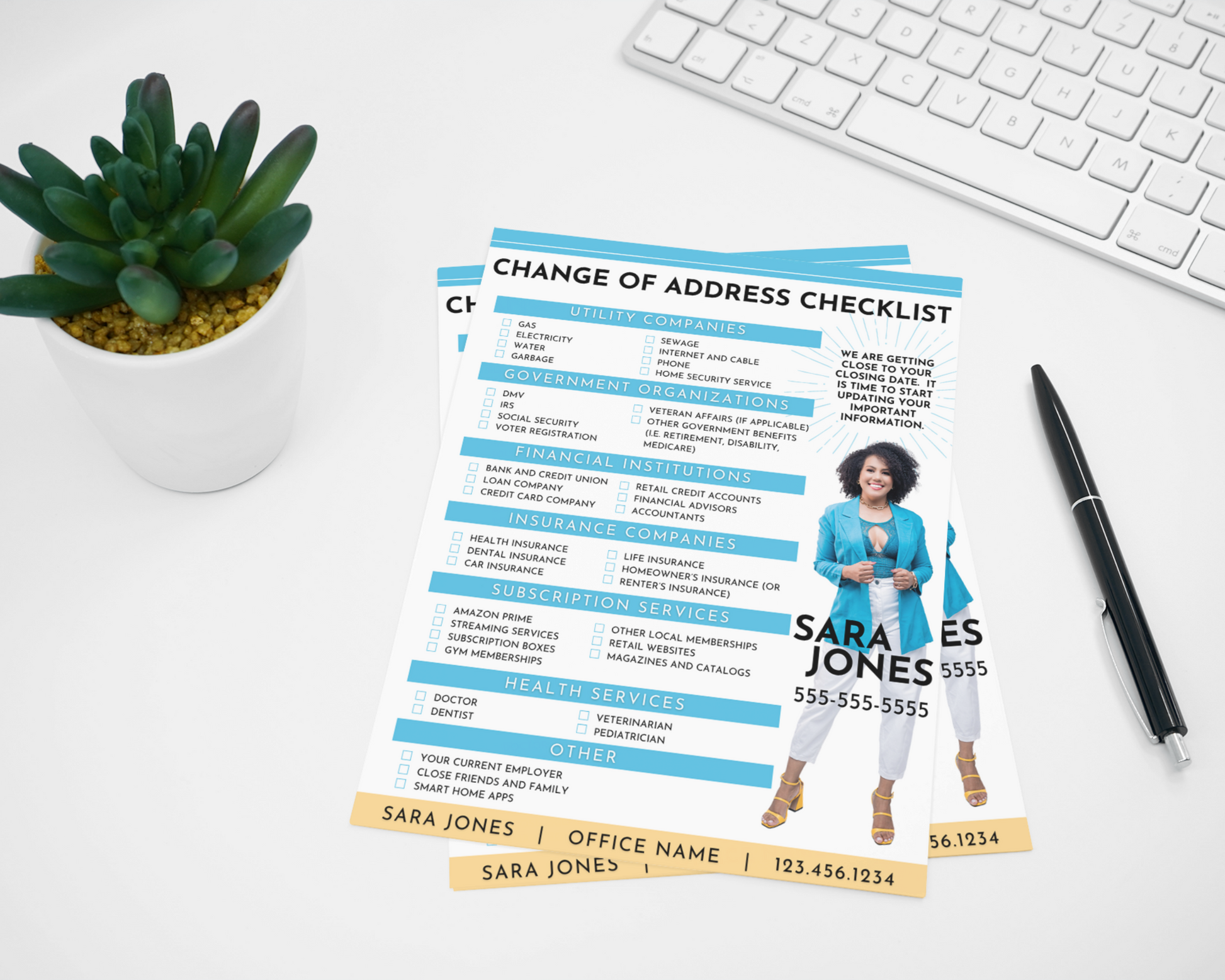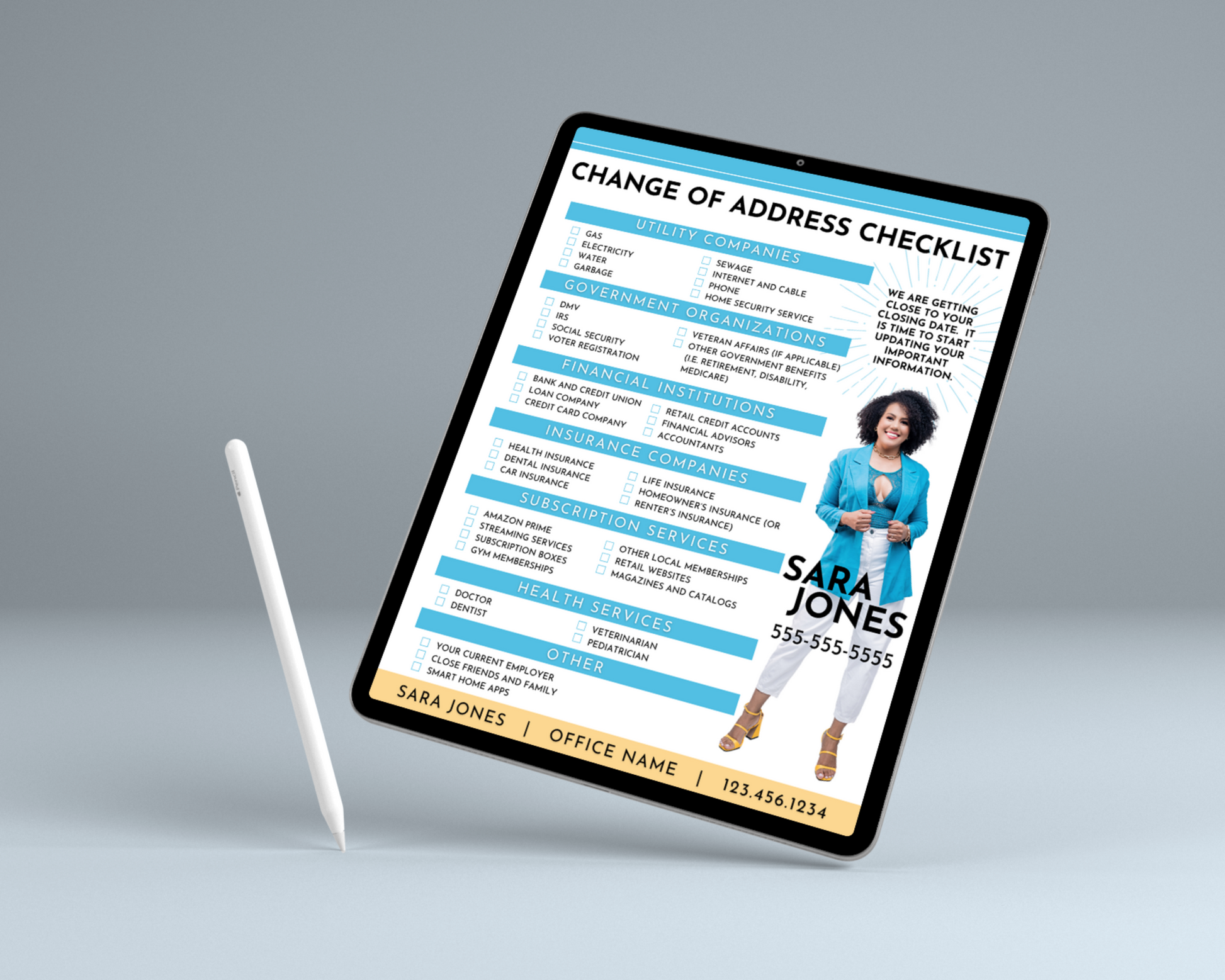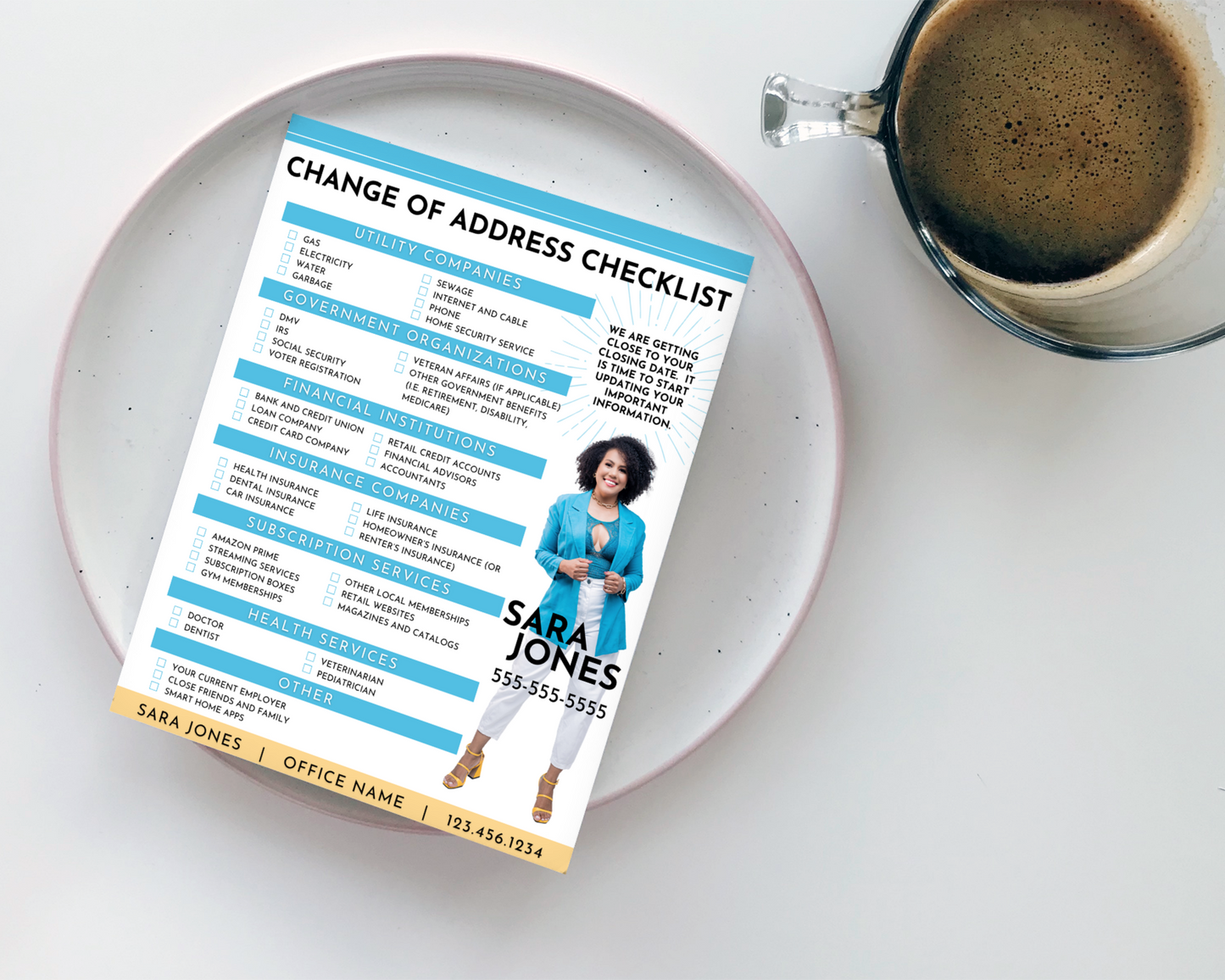 Effortless Moves with the Change of Address Checklist Real Estate Flyer - Moving homes can be a whirlwind, but it doesn't have to be! With our Change of Address Checklist Real Estate Flyer, you can help your clients navigate their relocation journey with ease and efficiency. This Checklist for Real Estate is more than just a list; it's a great companion to a comprehensive Home Buyer Guide designed to simplify the moving process for your clients. It's an integral component of your Home Buyer Packet and an essential tool in your Realtor Checklist.