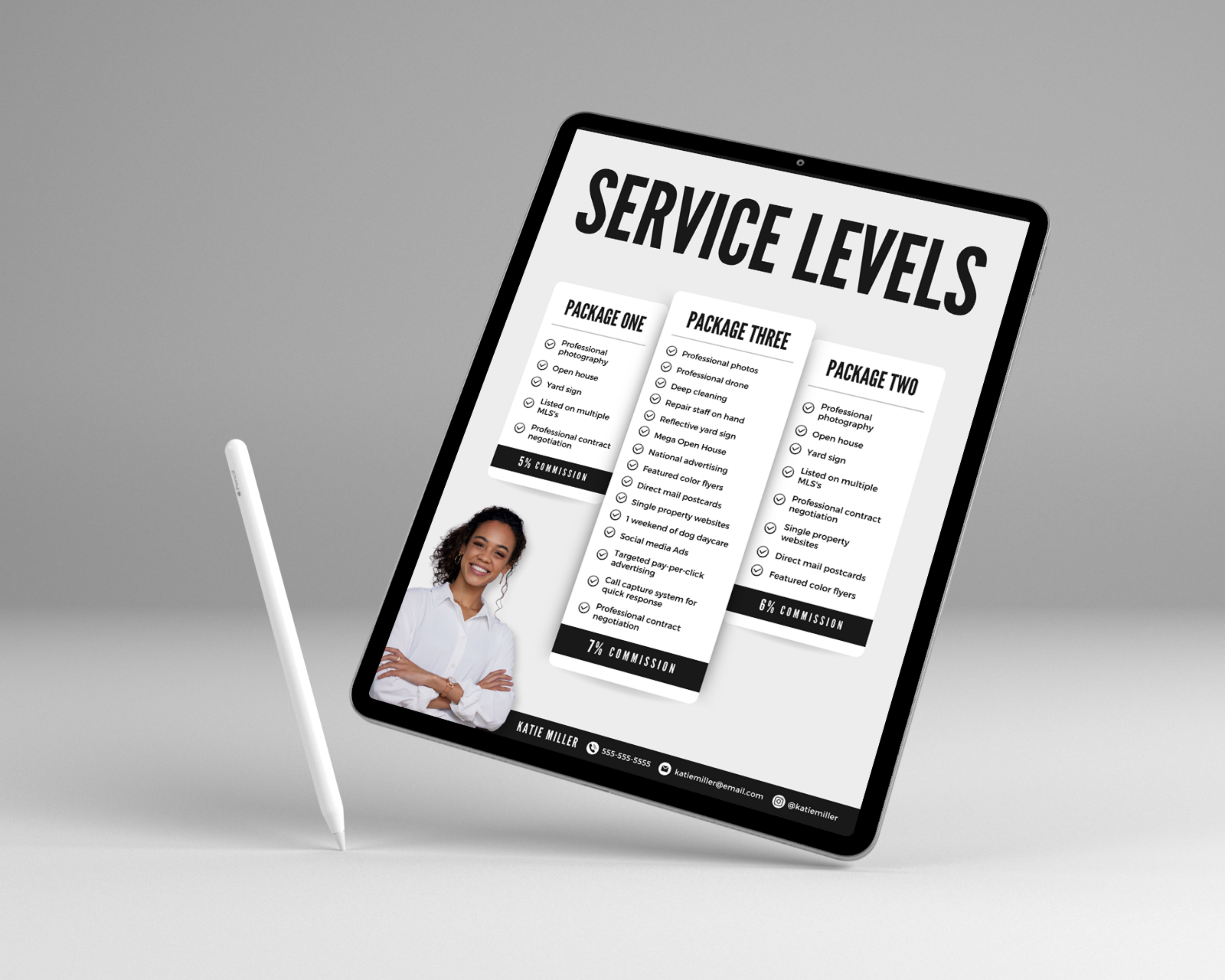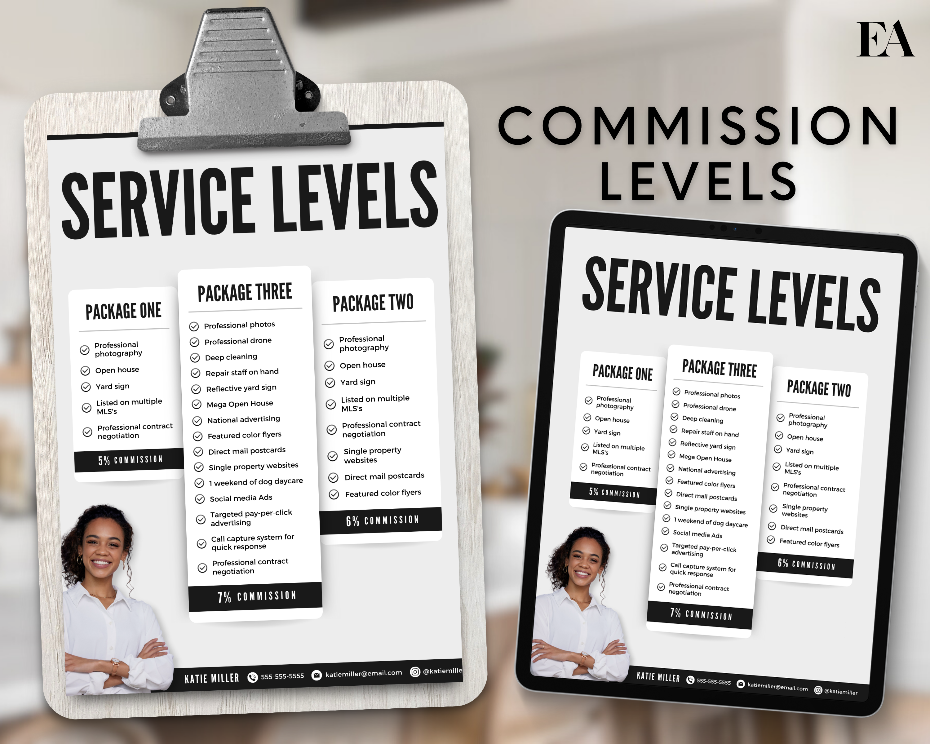 Designed with your convenience in mind, these Canva templates make it a breeze for real estate agents to create standout marketing materials. No design experience is necessary! With easy editing features, you can customize these templates to perfectly fit your needs. Introducing our Real Estate Commission Sheet template - the perfect addition to your listing presentation toolkit. It provides a clear and informative overview of the commission options available to you, helping you make confident decisions throughout the selling process.