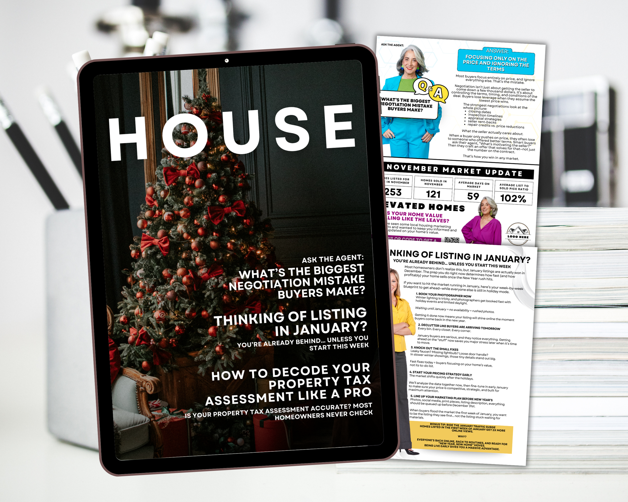 Professional & Modern Layout: Clean design to highlight your market update and tips.