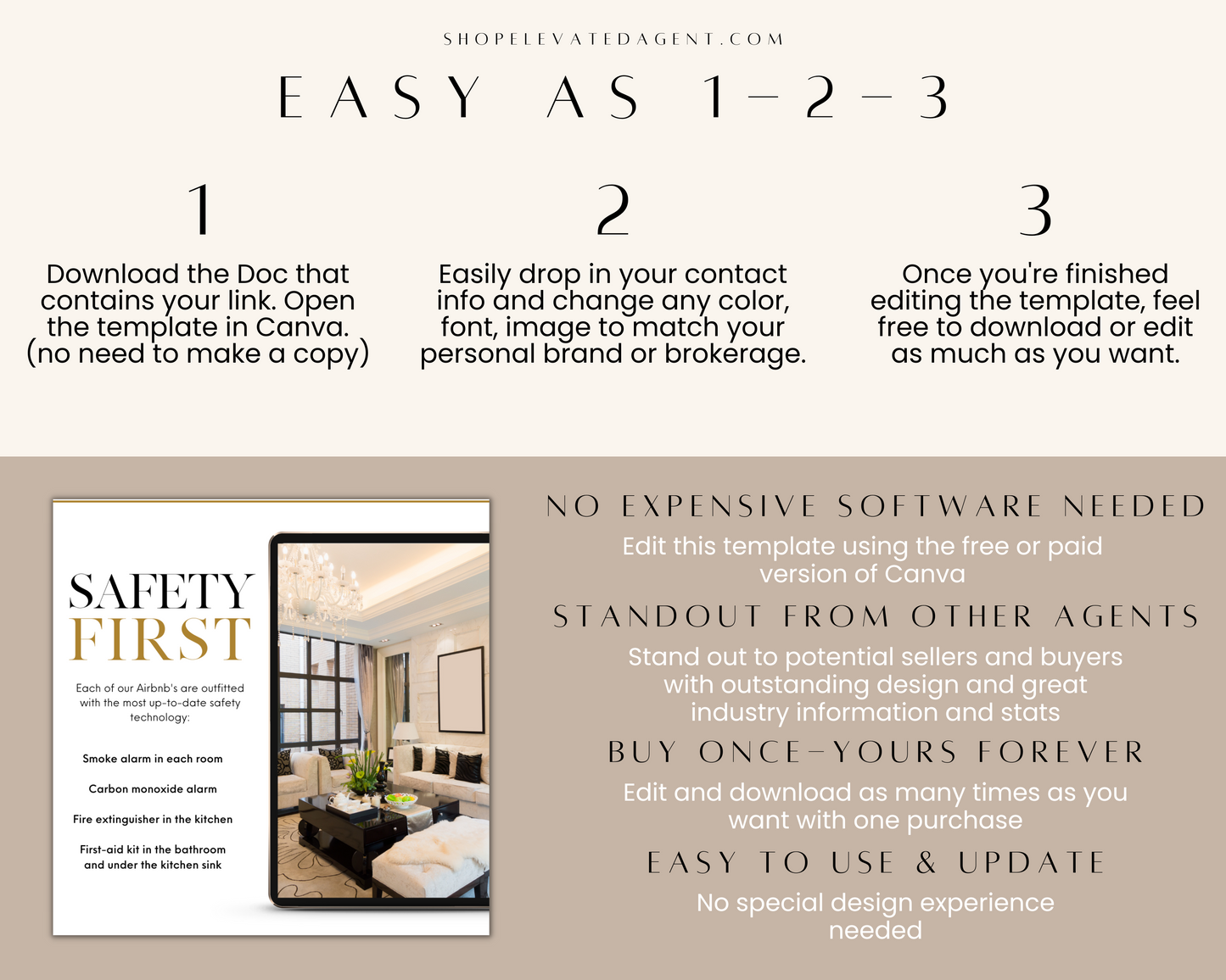 This Real Estate Template – Exclusive Airbnb Social Media Posts 5 can be edited to include the image of your Airbnb property and property-specific details. You can also share the graphics on social media, add them to text messages, email the digital file to your guests, or have it as part of your listing.