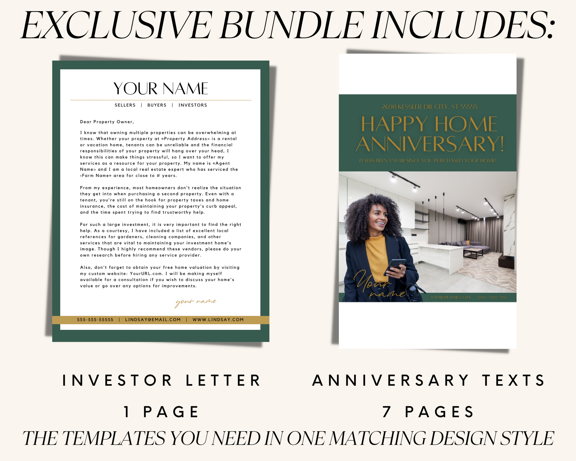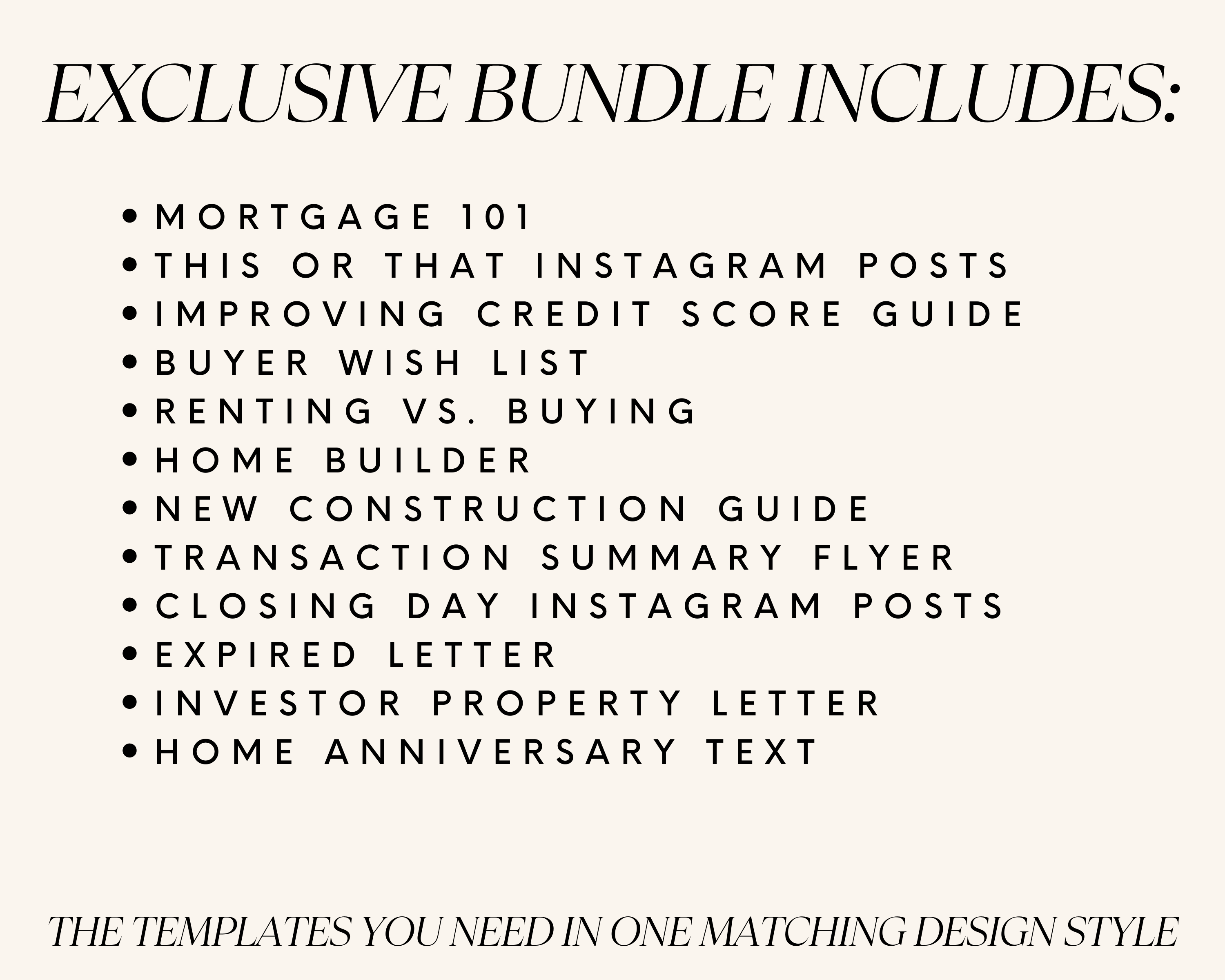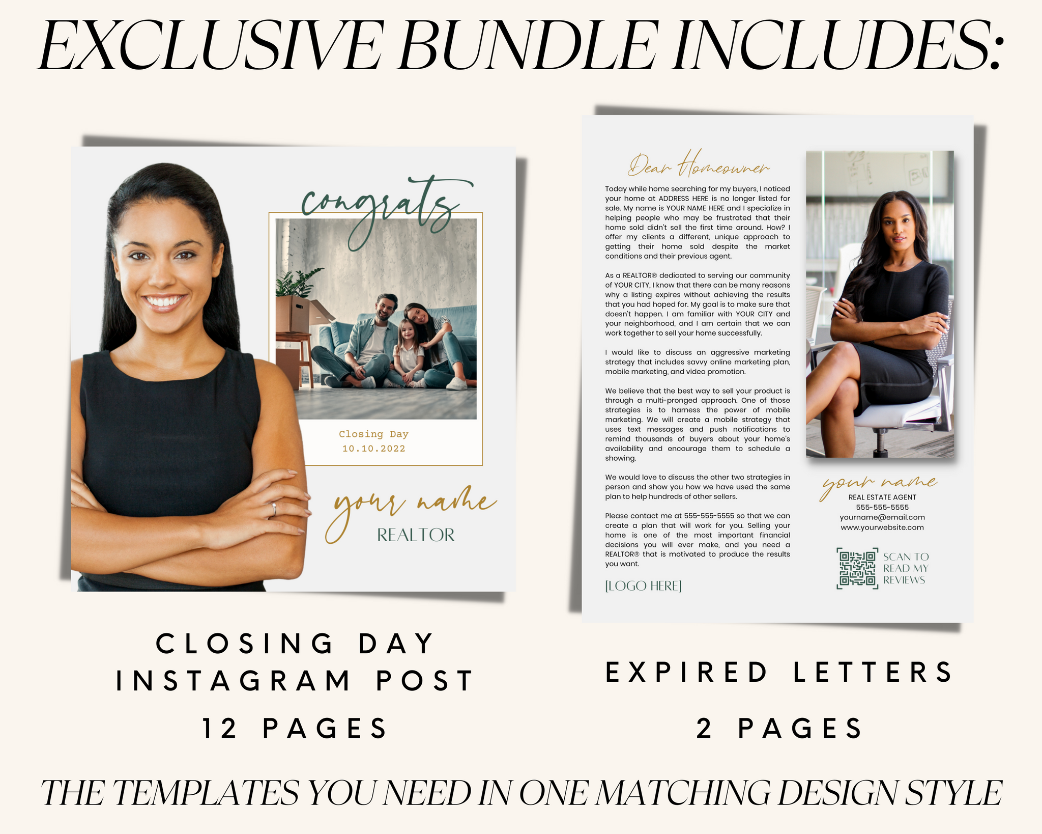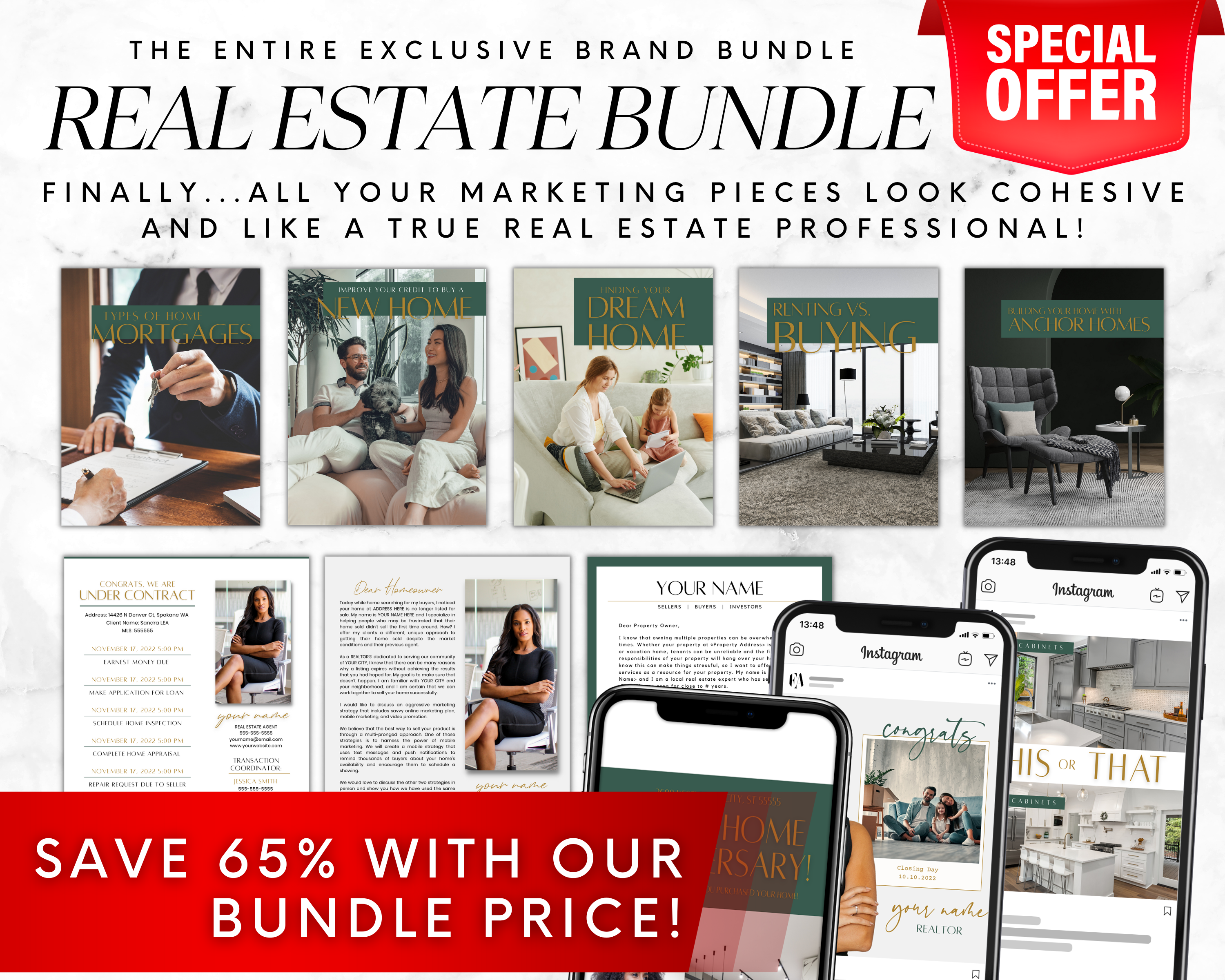 Whether it's real estate social media content or tailored real estate letters, this bundle has everything you need to impress your clientele and grow your business!