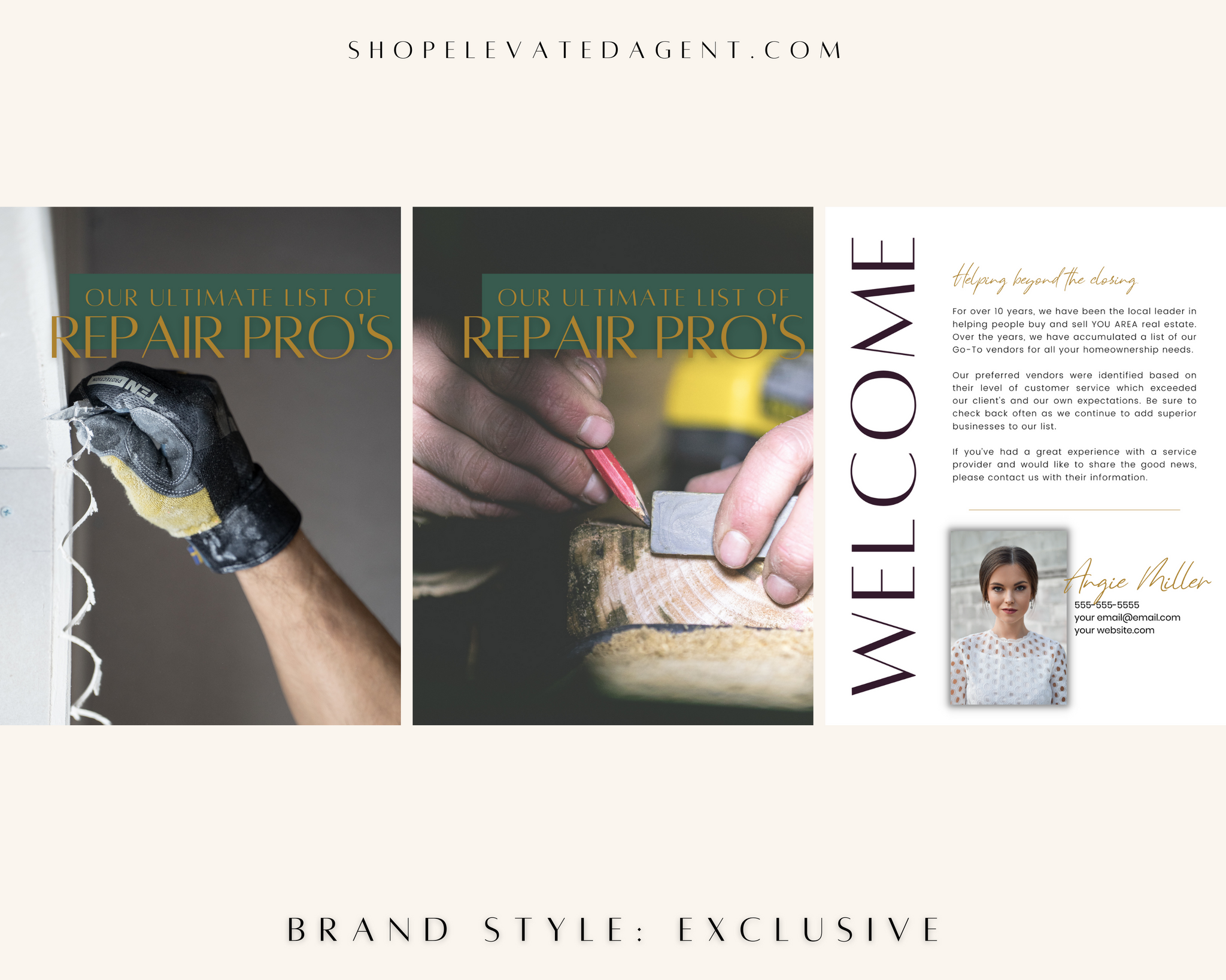 This is a great list to give any client that is wanting to update their home (maybe before selling...yay!) or needing a professional that you recommend. This makes you look like a professional and a creditable source!