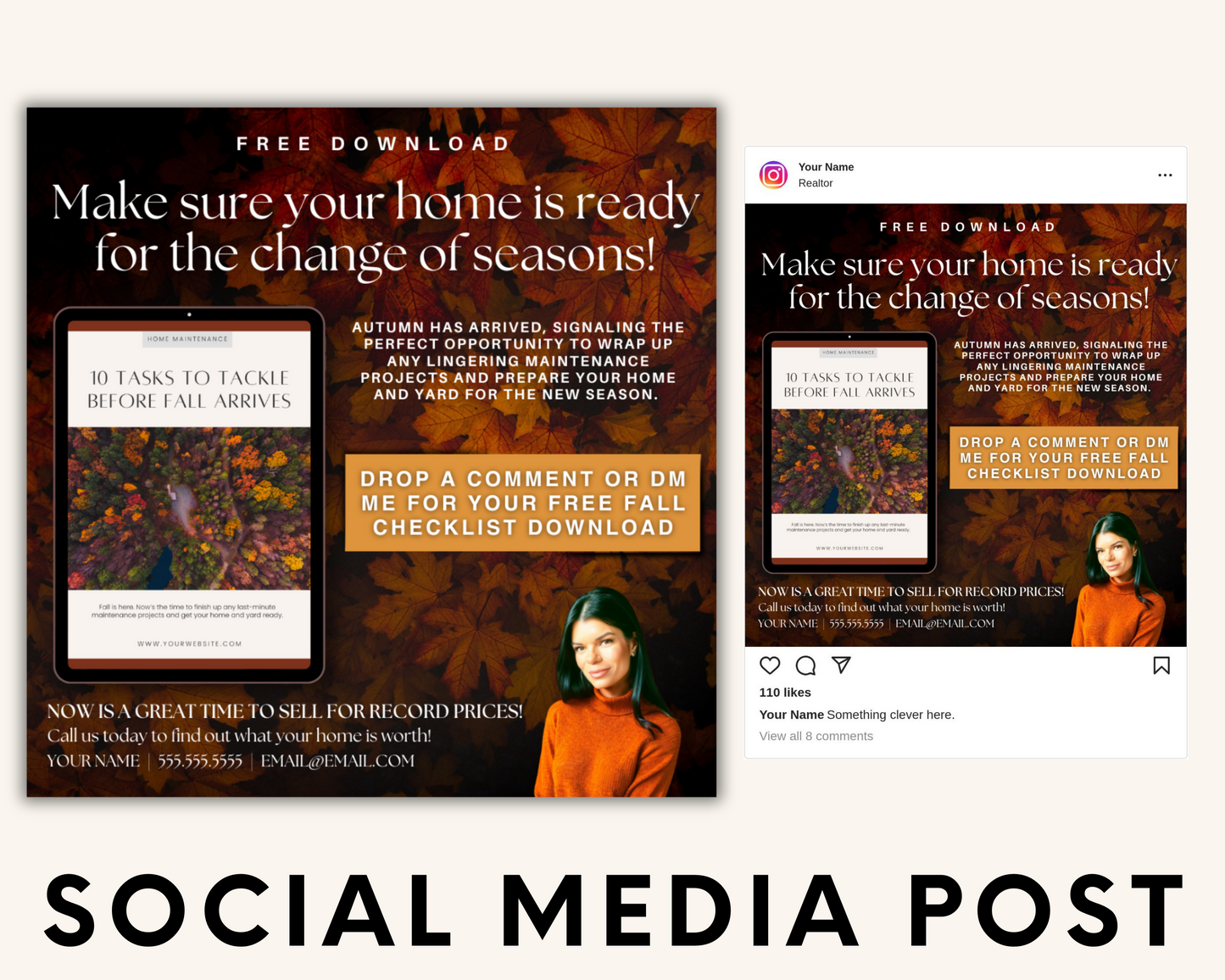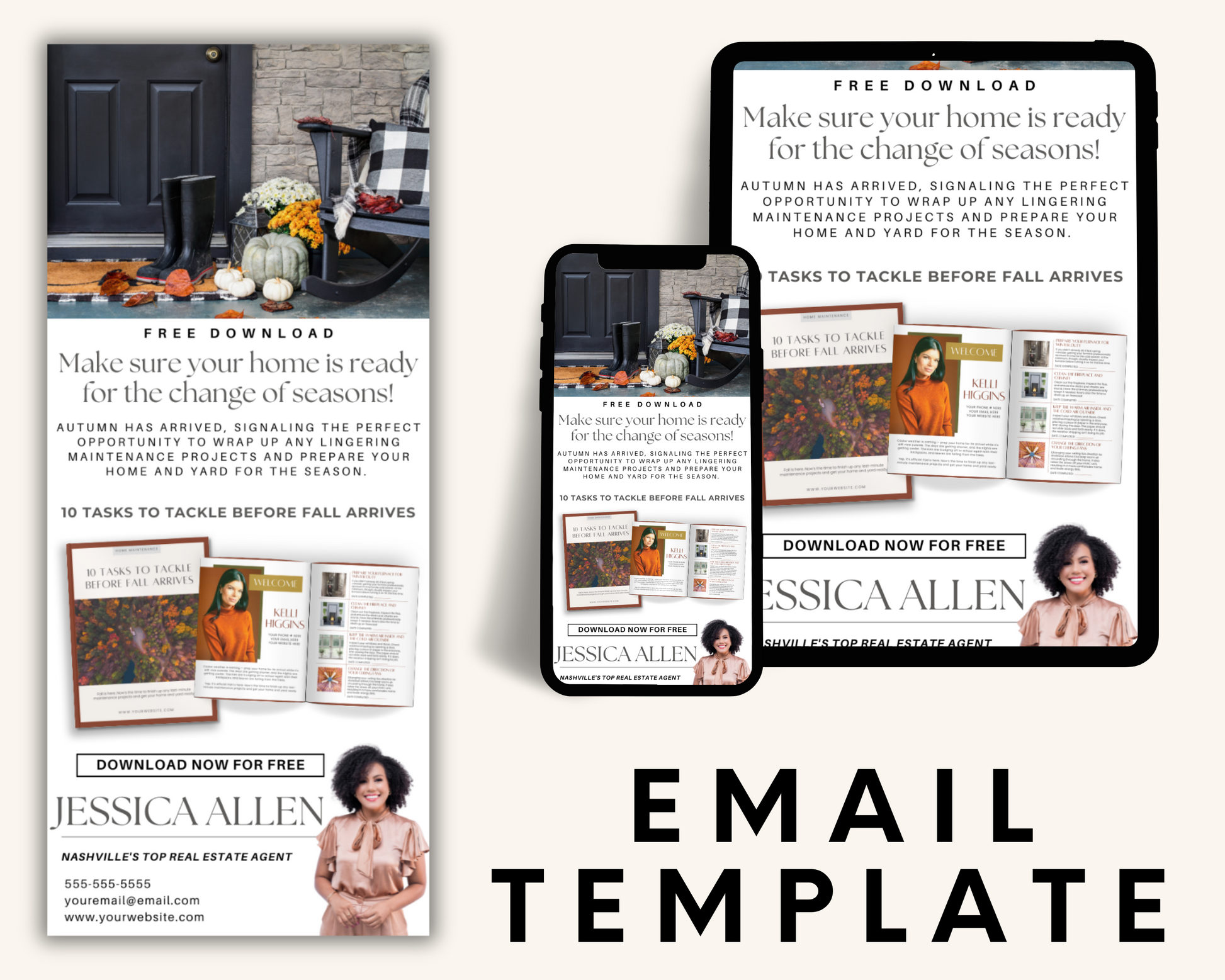 The bundle is full of beautifully designed Fall Real Estate Templates. These aren't just templates - they're your new secret weapon in connecting with potential clients in a warm, approachable way.