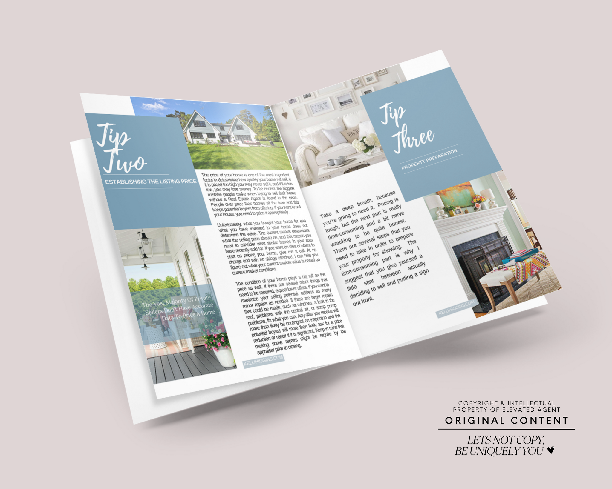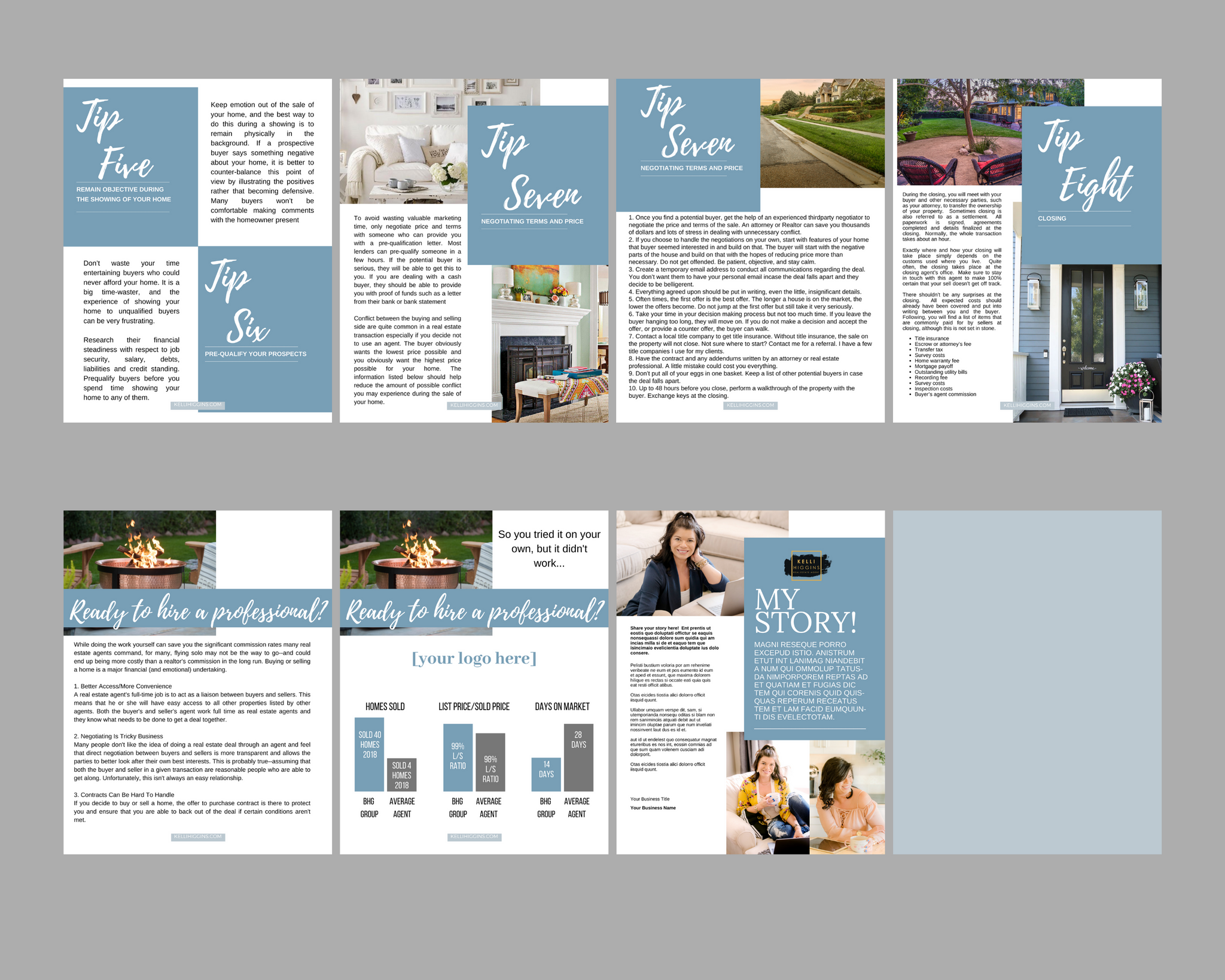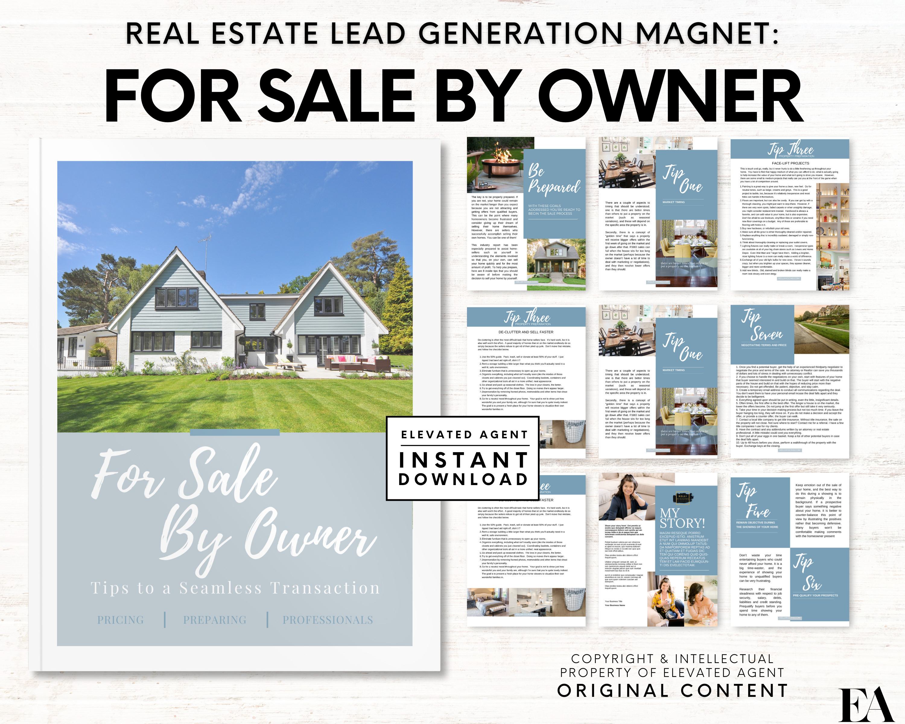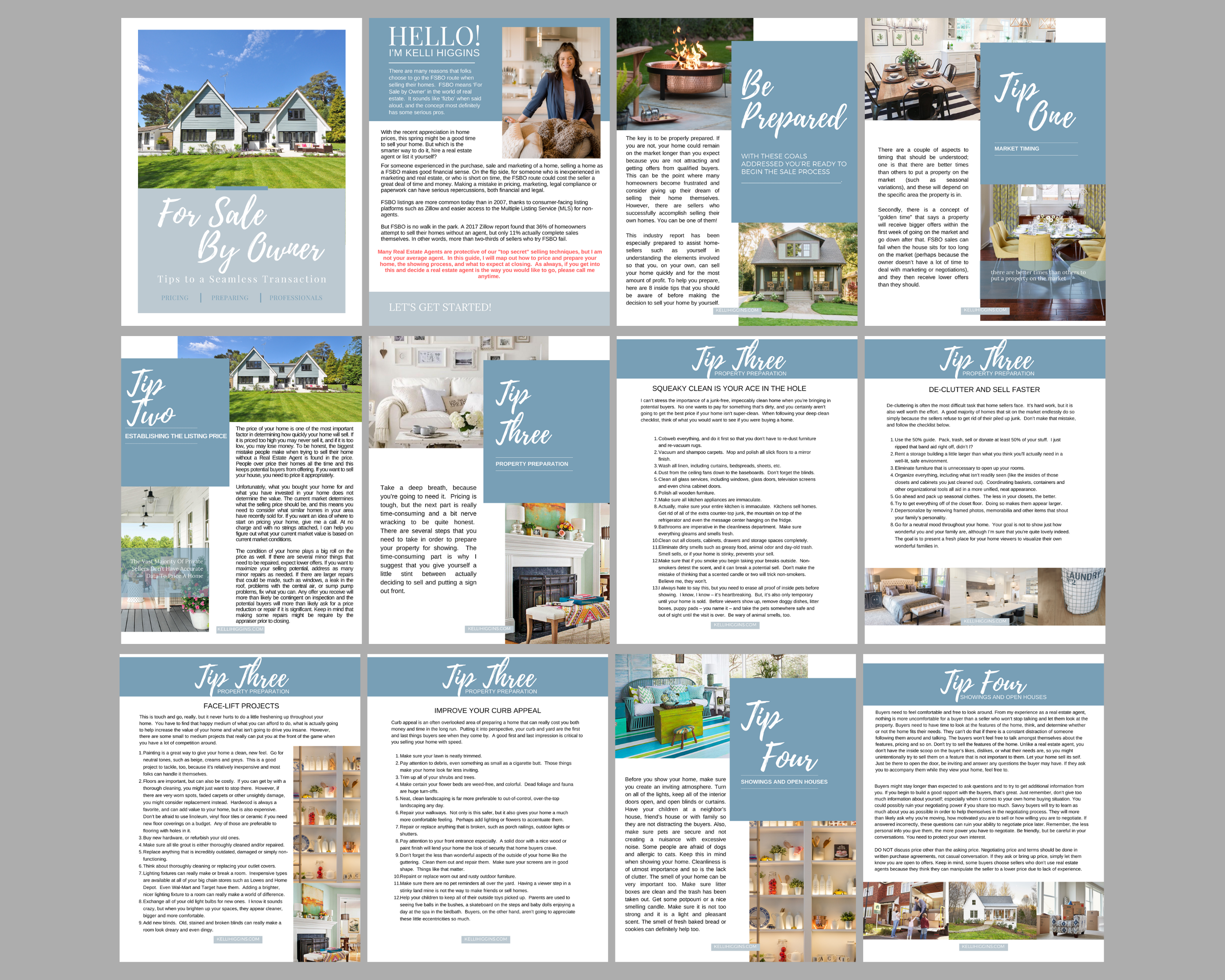 Take this real estate marketing template with you on your for sale by owner appointments to stand out from the dozen other real estate agents calling. This guide doesn't not make the homeowner feel like your being pushy or only want the commission, but that you are sharing because you truly care. This guide will help your home seller walk through the steps of selling, but also educated them on everything a real estate agent does!