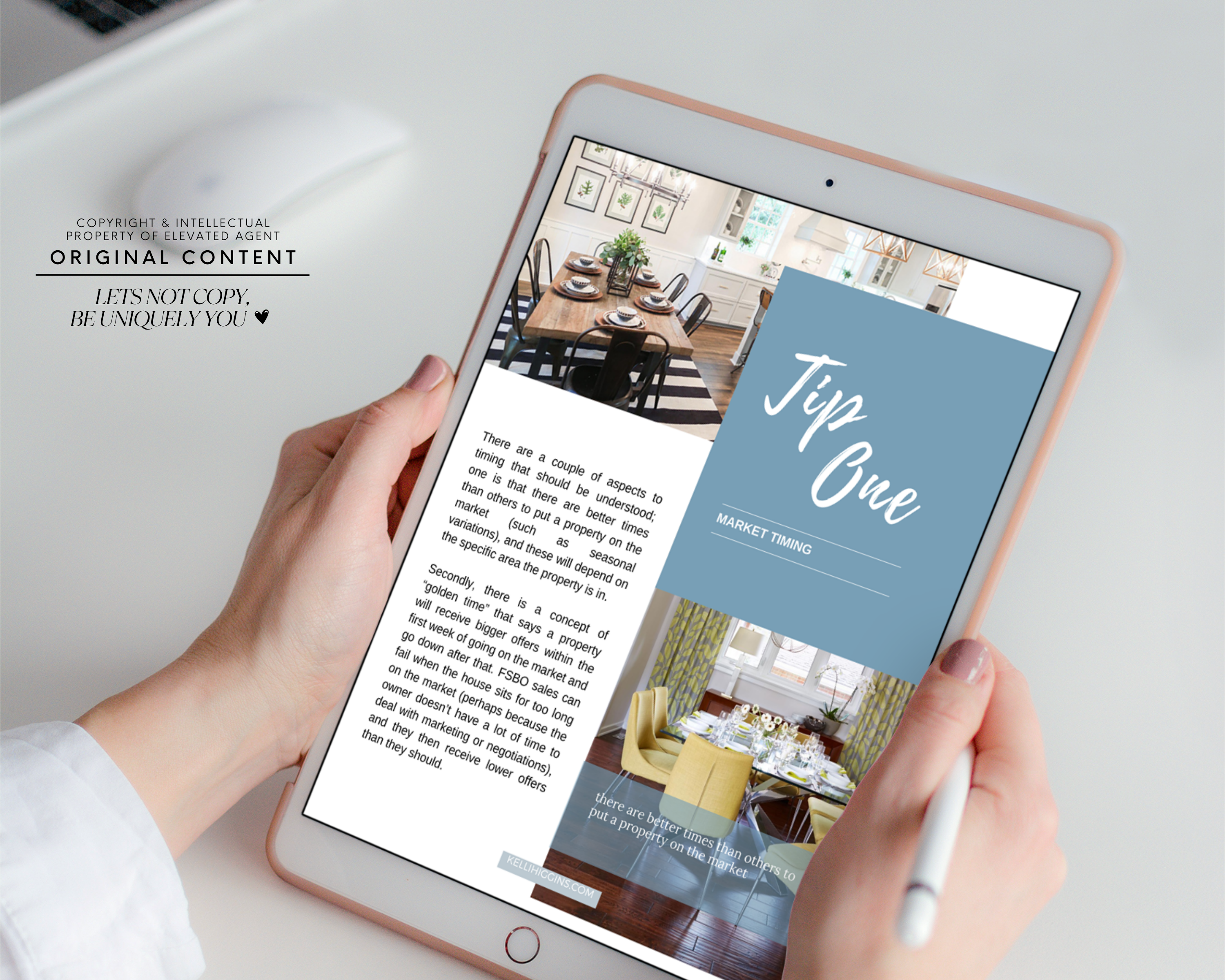 In all Elevated Agent marketing, you will find completed guides. Each guide and workbook is filled with the information your buyers and sellers are looking for, giving you warm leads to follow up with!