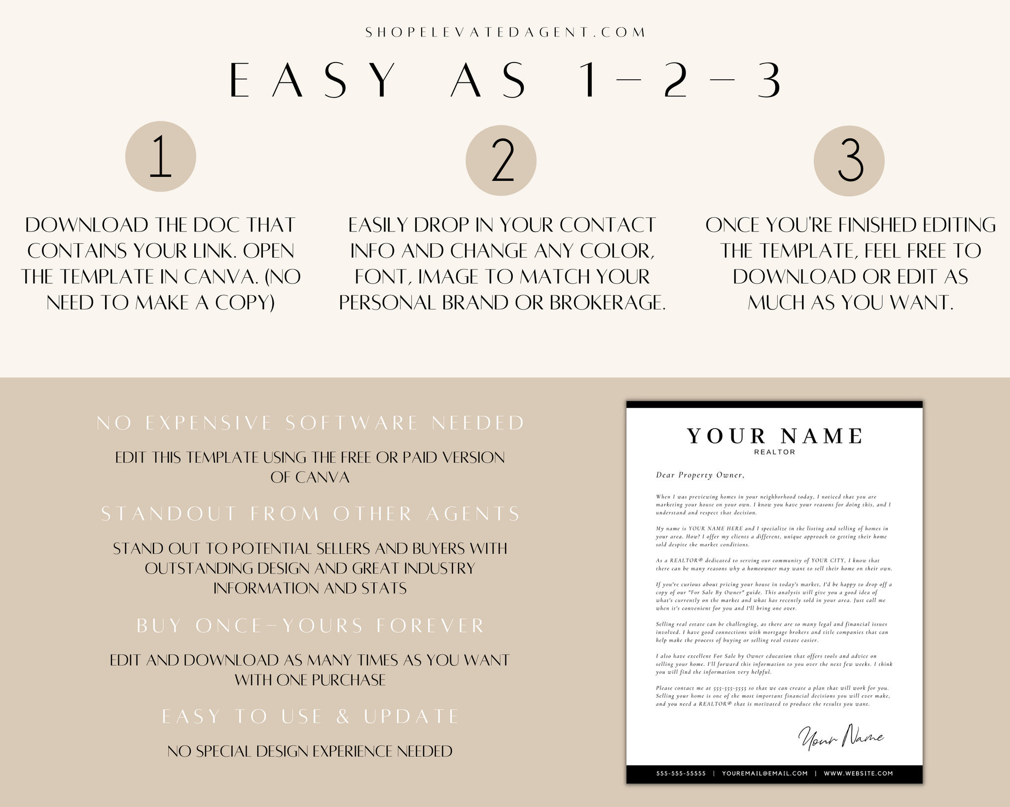Attention Real Estate Agents! Keep your real estate marketing fresh and updated with this easy-to-use Realtor Canva Template designed by Elevated Agent. We stay on top of real estate marketing trends and produce new content daily.