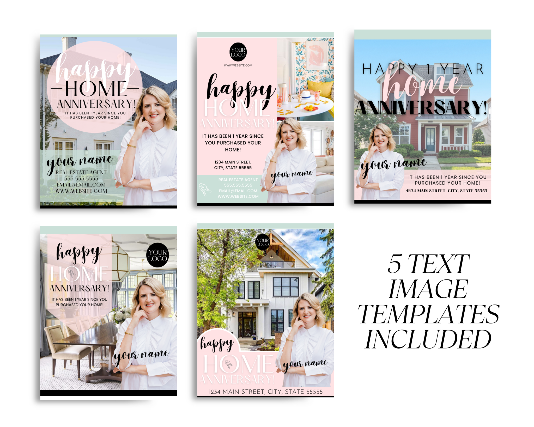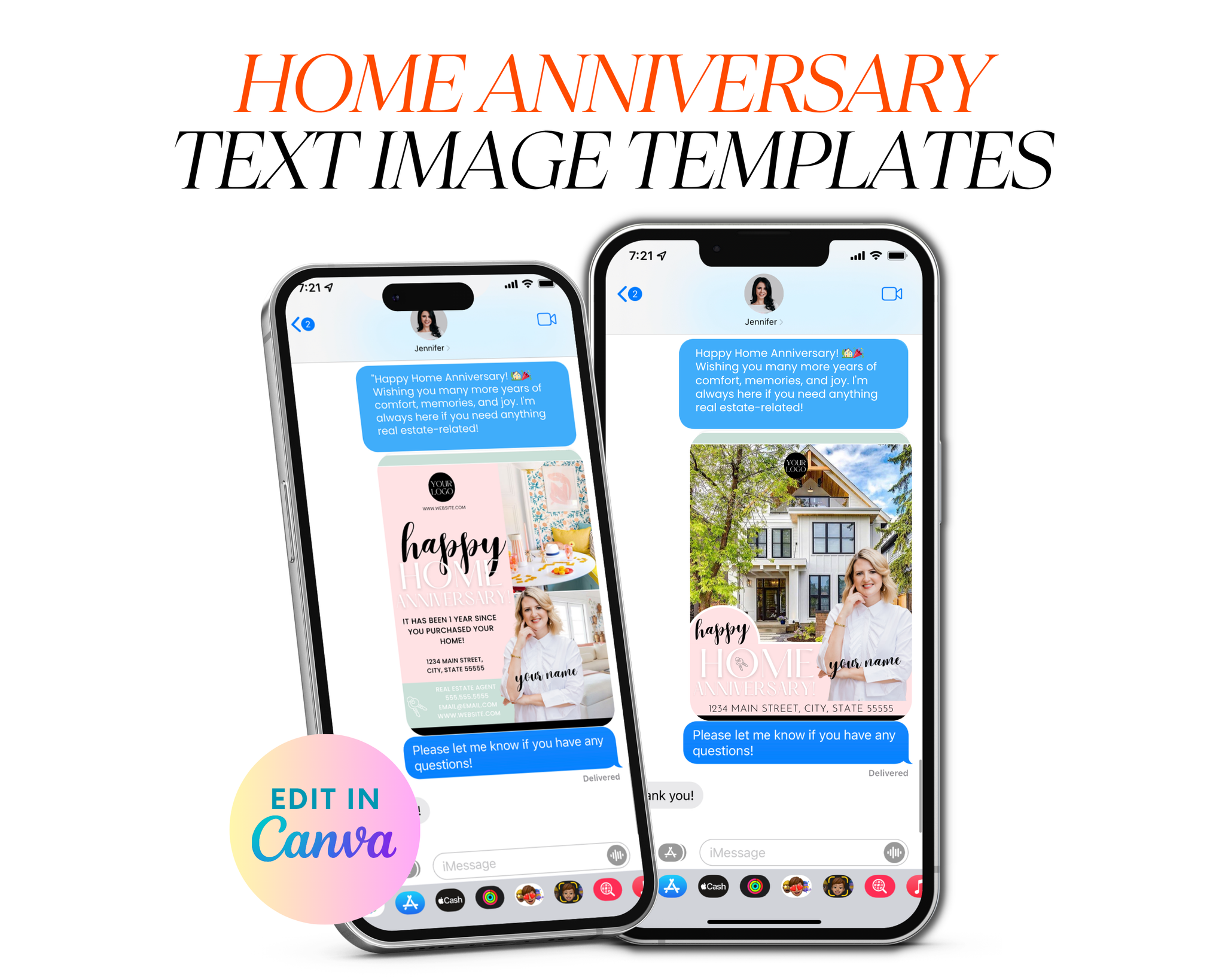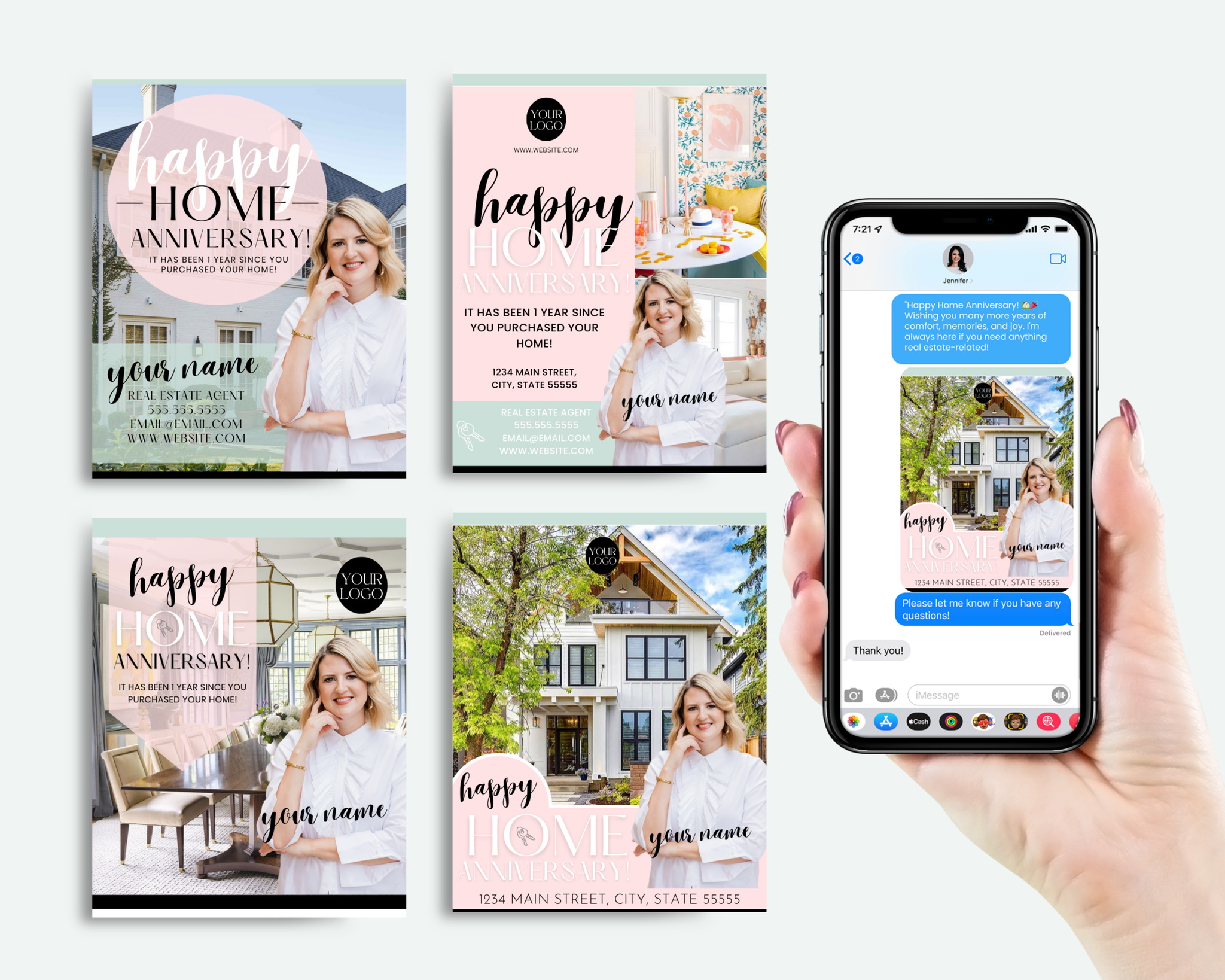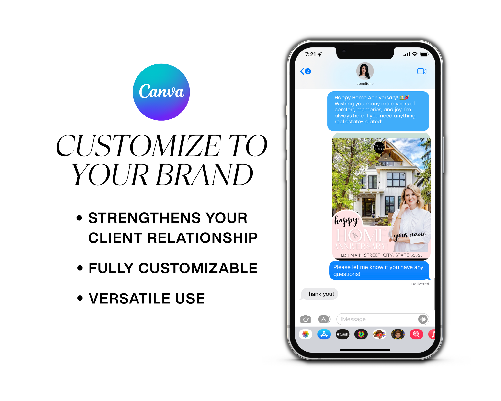 Real Estate Agents can delight their home buyer clients with these playful real estate marketing text message templates. Pop in your contact information and their home information in Canva and BOOM you look like you are on top of your business! They will be WOW'd you remembered!