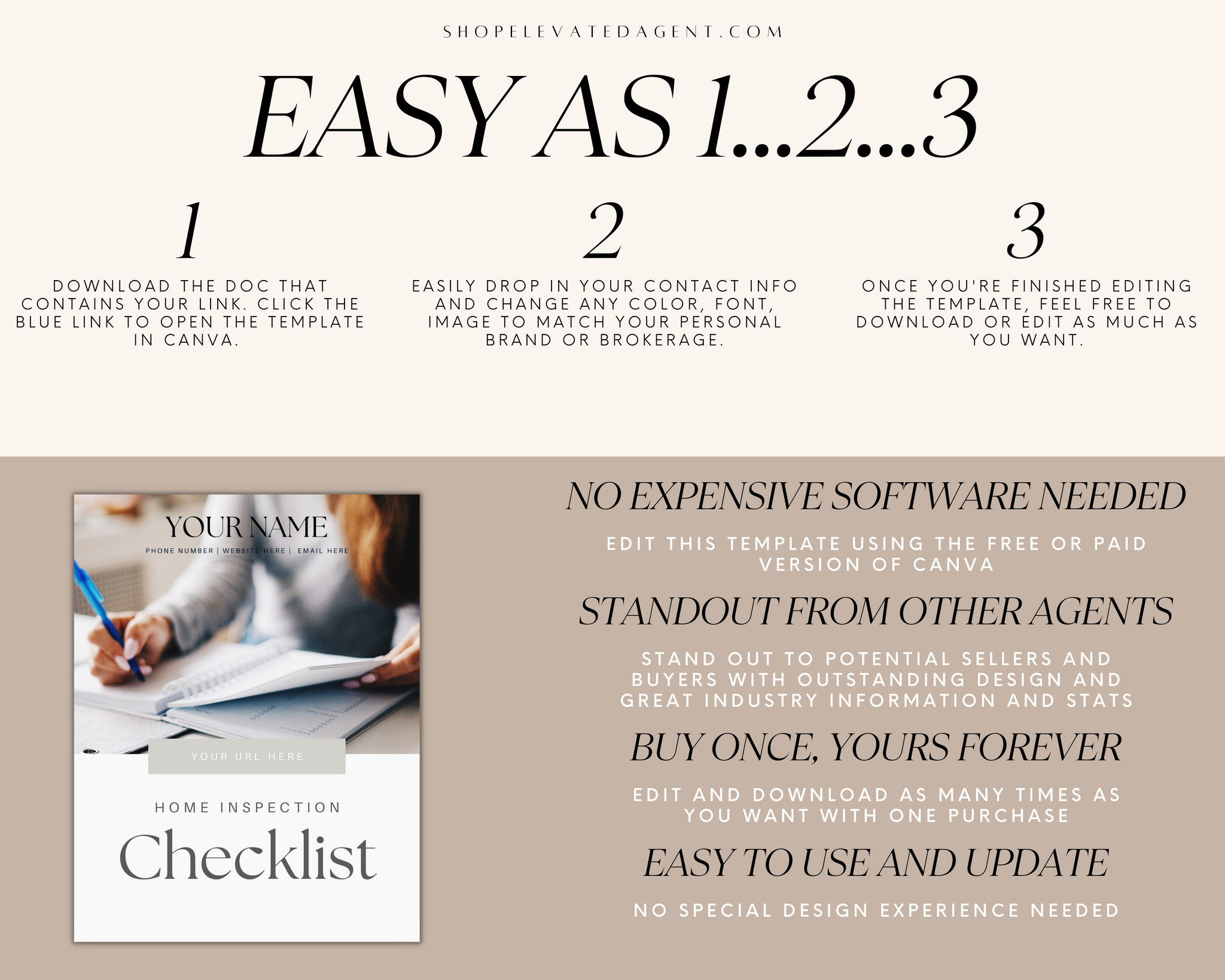 Attention Real Estate Agents! Keep your real estate marketing fresh and updated with this easy-to-use Realtor Canva Template designed by Elevated Agent. We stay on top of real estate marketing trends and produce new content daily.