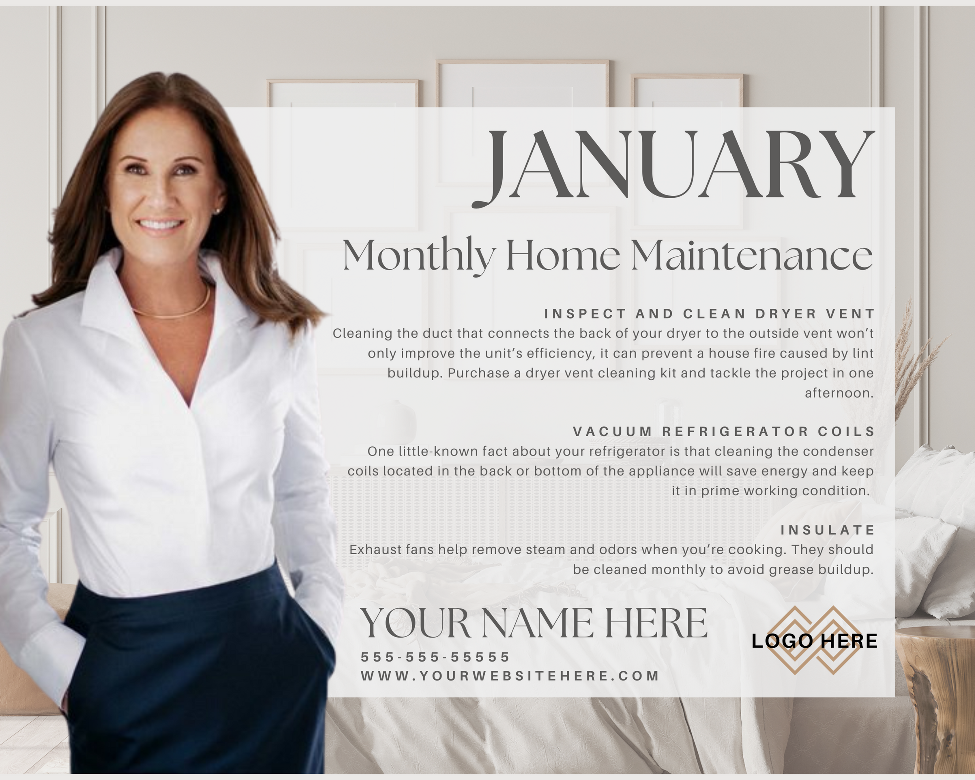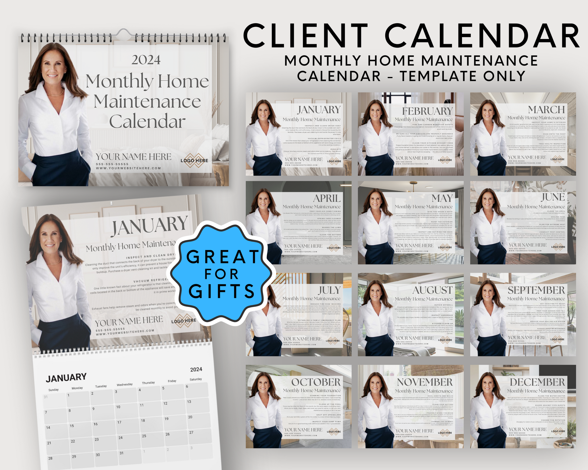1. A Gift of Peace of Mind: Your clients have made one of the most significant investments of their lives. Show them you care by giving them the tools they need to protect and maintain their new home. Our Home Maintenance Calendar is their key to a well-cared-for and stress-free living space.